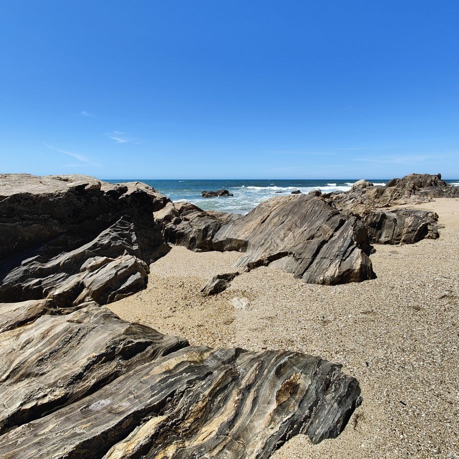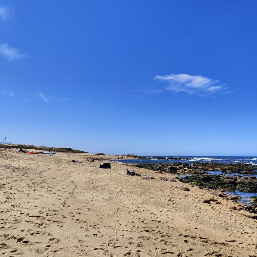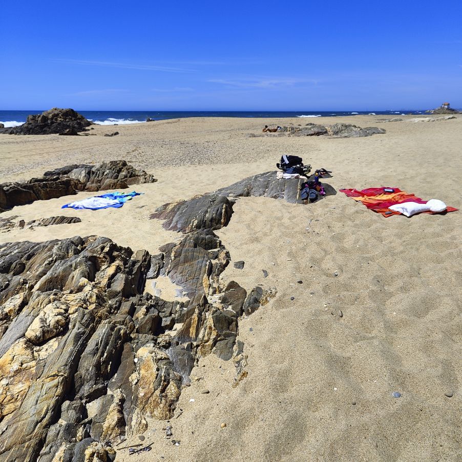 Es ist viel los, wir suchen uns einen etwas abgelegenen Platz und verbringen die nächsten Stunden mit schlafen und lesen. Der Atlantik ist frisch, die Wassertemperatur erreicht selbst an den heißesten Tagen maximal 18 Grad – unsere Füße sagen, dass das Wasser nicht mehr als 14 Grad hat, das Bad im Meer lassen wir ausfallen.