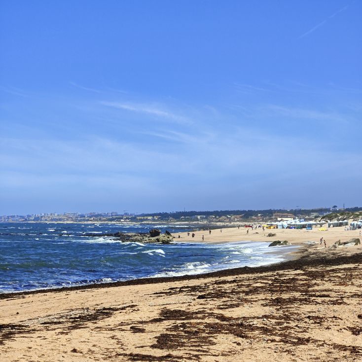 Wir fahren mit dem Zug der CP Urbanos do Porto nach Miramar, das etwas südlich von Porto direkt am Meer liegt. Nach einer halben Stunde sind wir da.