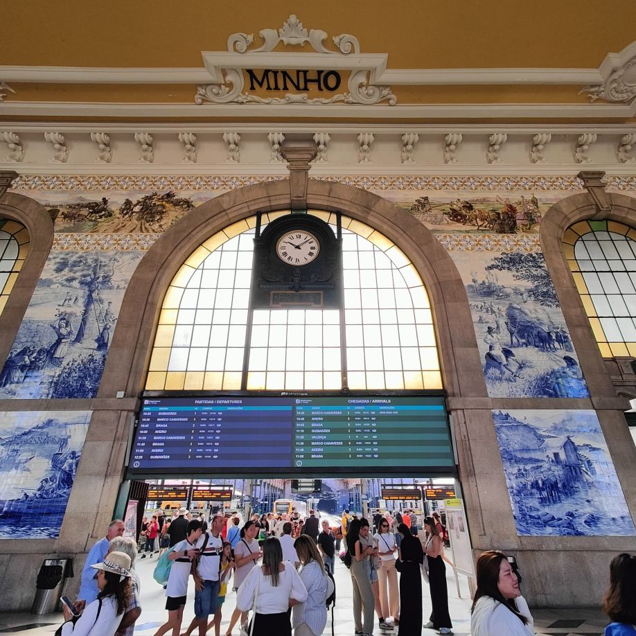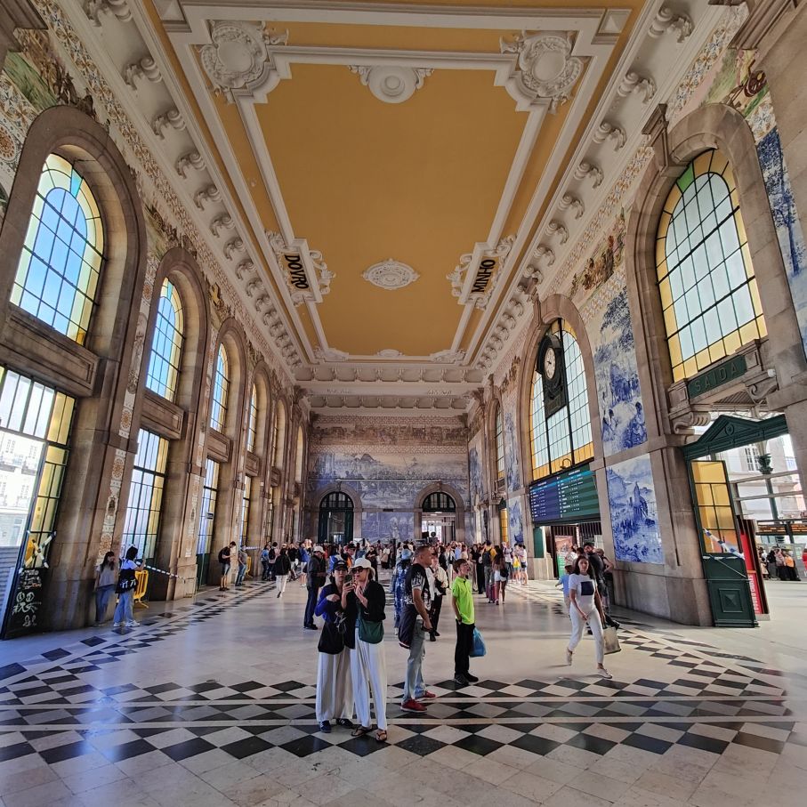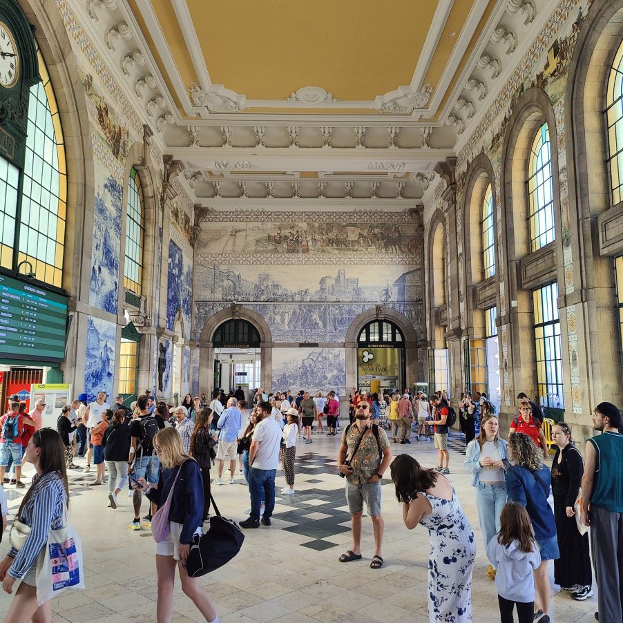 Nach dem Frühstück packen wir unsere Badesachen und spazieren zum Estação de São Bento, der weit mehr als ein Bahnhof ist. Das Gebäude ging vor etwas mehr als 100 Jahre in Betrieb und wurde vom Architekten José Marques da Silva entworfen. Die Vorhalle ist mit zahlreichen Azulejos geschmückt, die der Maler Jorge Colaço entworfen hat.