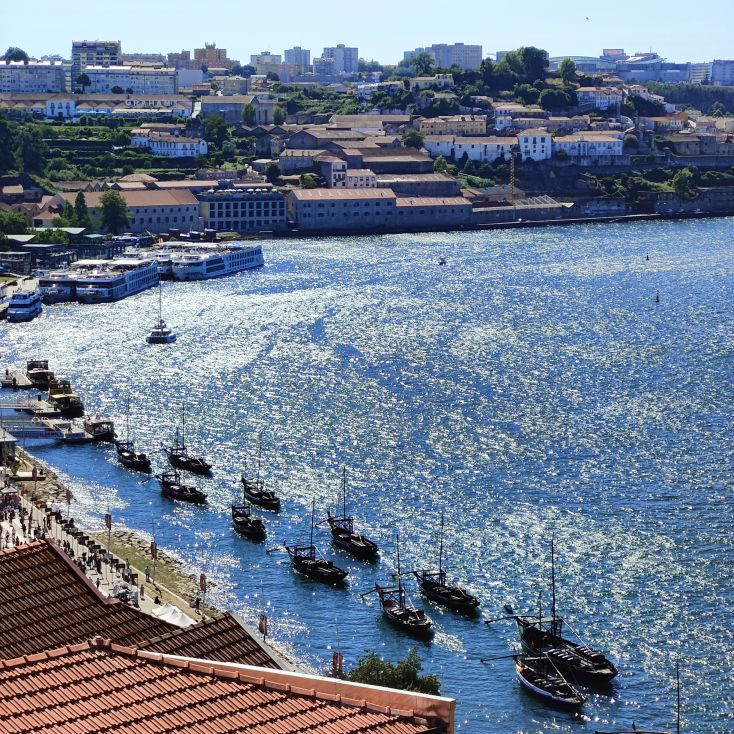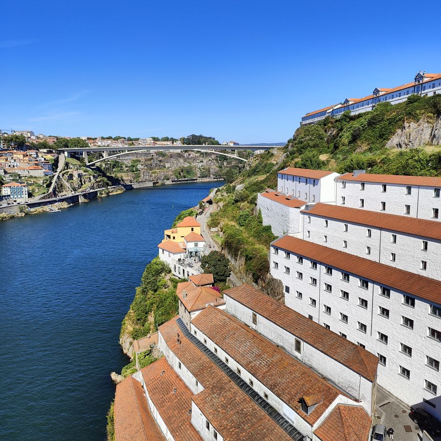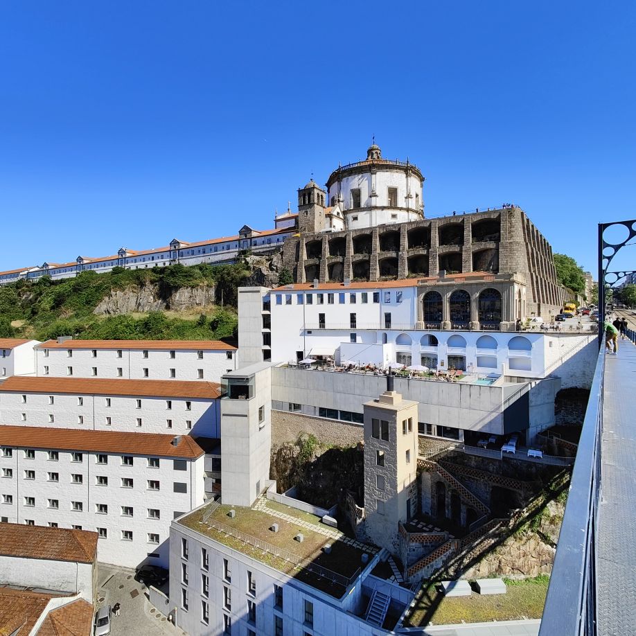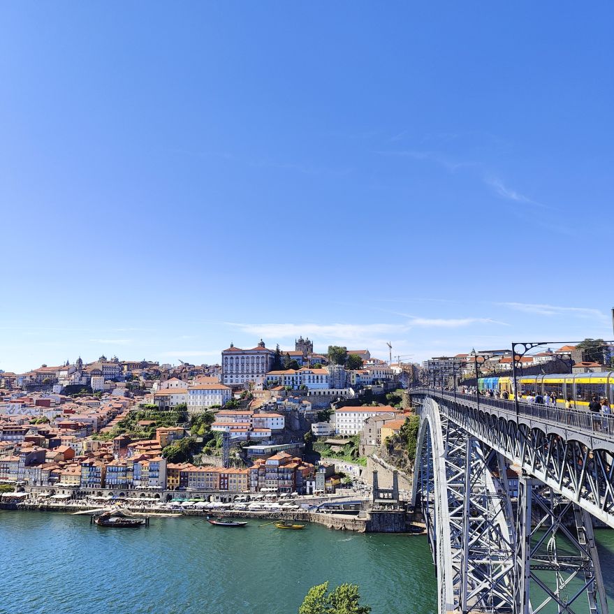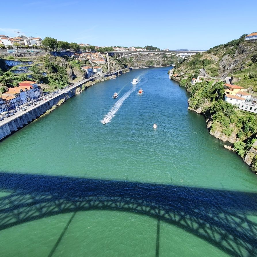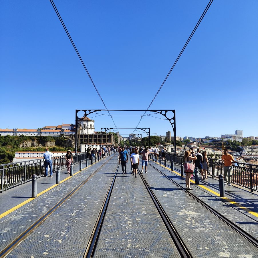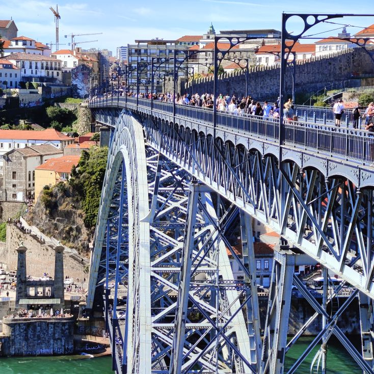 Am Nachmittag fahren wir wieder zurück uns steigen bereits in Vila Nova de Gaia aus, denn wir wollen die berühmte Ponte Luís I. zu Fuß passieren. Die im Jahr 1886 erbaute Brücke ist eine von sechs Douro-Querungen und bietet einen atemberaubenden Blick auf die Stadt Porto und den Douro, der voll mit bunten Booten ist. Die Ponte Luís I. ist insgesamt 385 Meter lang und wiegt über 3.000 Tonnen. Zu der Zeit ihrer Konstruktion war sie die größte schmiedeeiserne Bogenbrücke der Welt. Sie ist ein wichtiger Verkehrsknotenpunkt für U-Bahn, PKW und Fußgänger. Wir nehmen den oberen Fußweg, 60 Meter über dem Douro und neben den U-Bahn-Schienen. Der untere Teil, der für Autos, Busse, Motorräder und Fahrräder reserviert ist, hängt komplett an der Eisenbahnbrücke. Das Design der Brücke stammt vom deutschen Architekten Téophile Seyrig, einem Schüler von Alexandre Gustave Eiffel. Das Brückenprojekt war zu Beginn auch tatsächlich als Projekt von Eiffel geplant. Als es bei der Planung jedoch zu Differenzen kam – es gab Unstimmigkeiten beim Design der Brücke – stieg Eiffel aus dem Projekt aus. Namensgeber für die Brücke war der portugiesische König Ludwig I.
