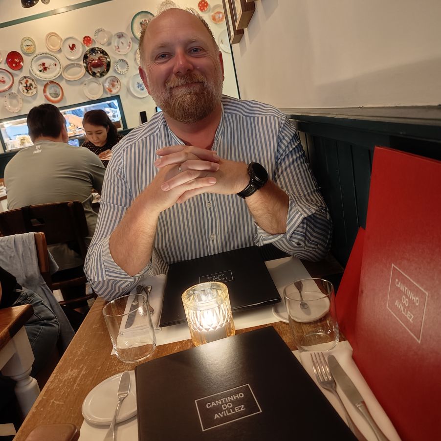 Den Sonntagabend beenden wir genauso entspannt, wie wir ihn begonnen haben. Wir essen in der Cantinho do Avillez, einem Restaurant mitten in Portos Altstadt. Der Betreiber ist José Avillez, der Chef von insgesamt 15 Restaurants ist, eines davon in Dubai und ein anderes in Macao, China. Seine „Cantinho“ ist ein entspannter, sympathischer Ort mit gutem Essen. Wir speisen Shrimps, Oktopus und ein großartiges Haselnuss-Dessert. Dazu trinken wir eine Flasche Weißwein aus dem Alentejo und zum Dessert einen Madeira.