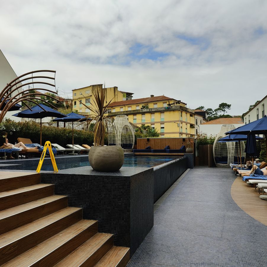 Am Pool ist wenig los, es ist trotz des wolkenverhangenen Himmels warm und gerade richtig für ein Nickerchen, einen Porto Tonic und ein paar Längen im Infinitybecken. So lassen wir den Nachmittag ausklingen.