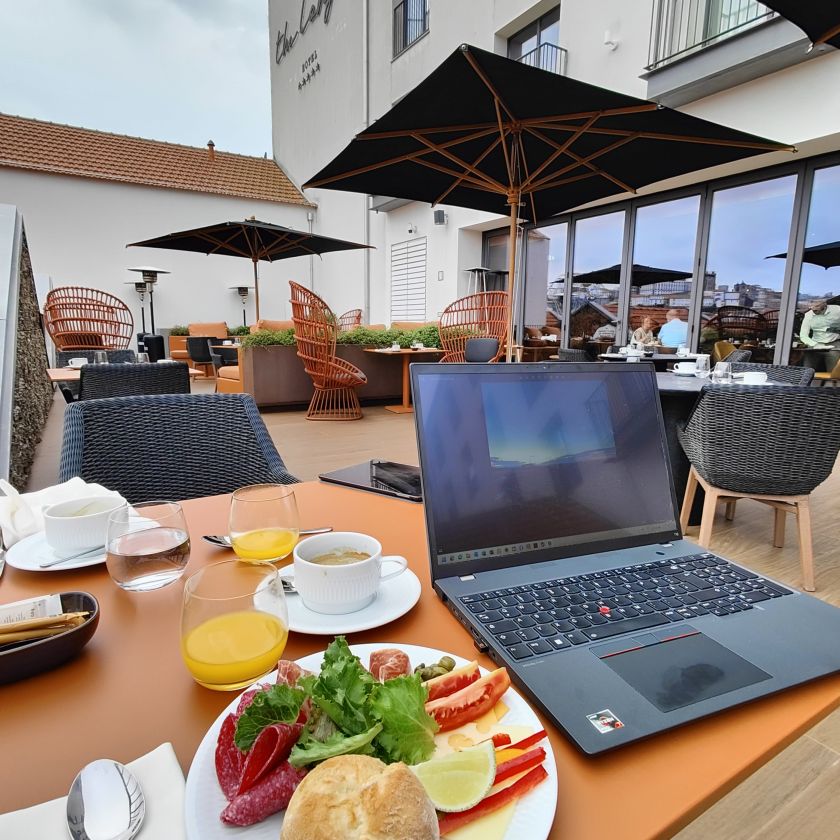 Heute ist Sonntag und unser letzter Tag in Portugal. Wir frühstücken ausgedehnt auf der Hotelterrasse – wir hätten uns nicht gedacht, dass es noch einmal eine Steigerung beim Frühstück geben könnte – aber das heutige ist das beste!