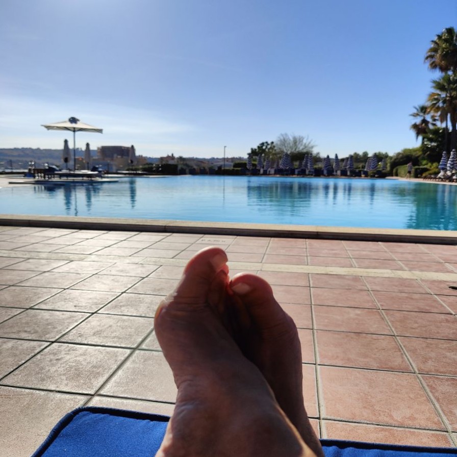 Wir genießen ein spätes Frühstück auf der Sonnenterrasse und verbringen den restlichen Vormittag am Pool.