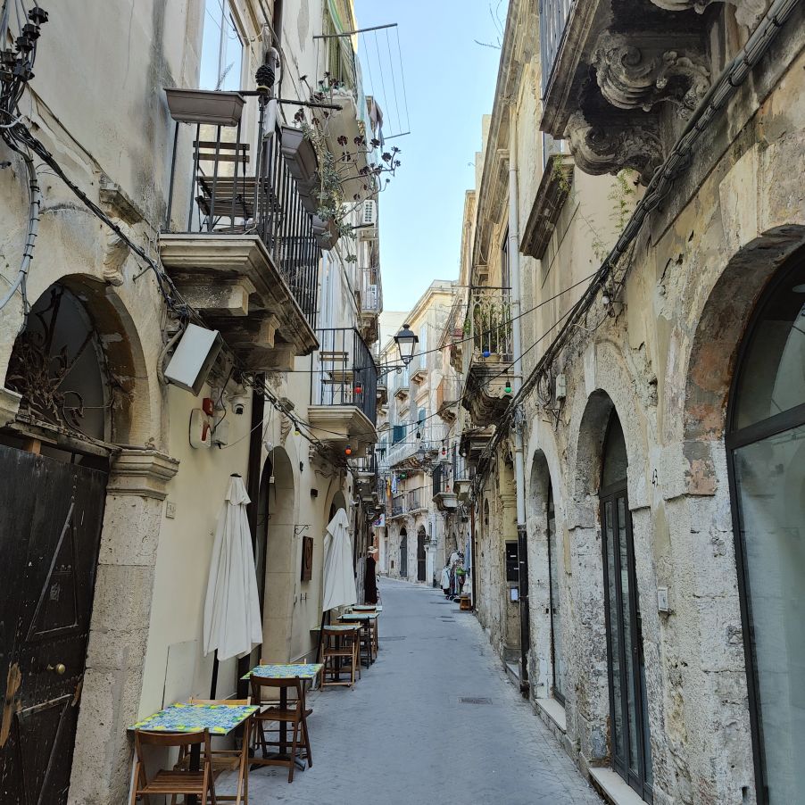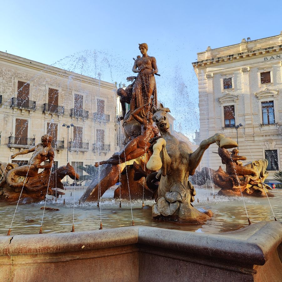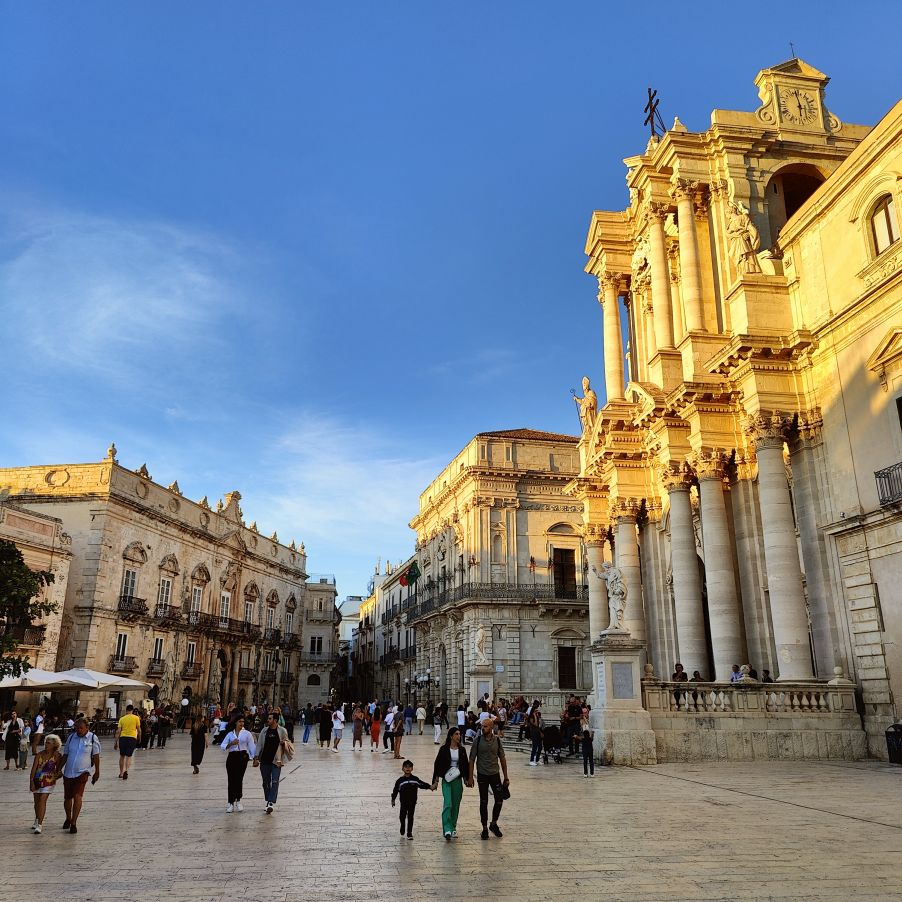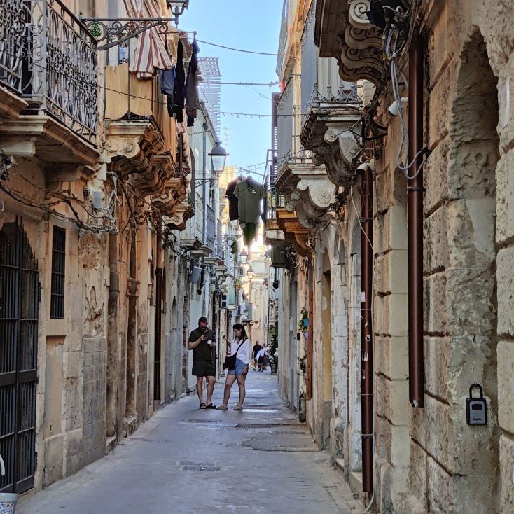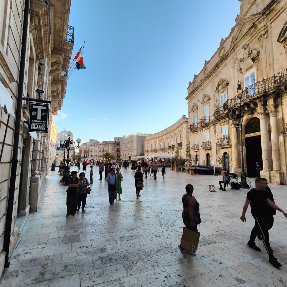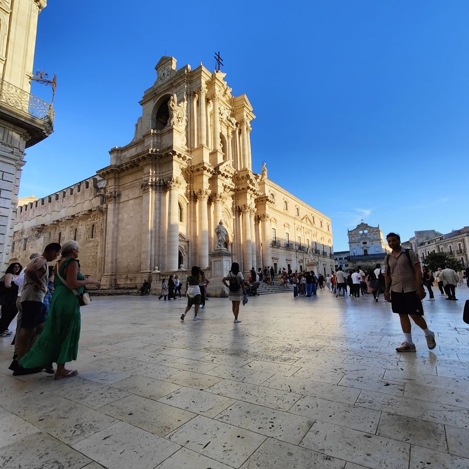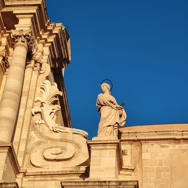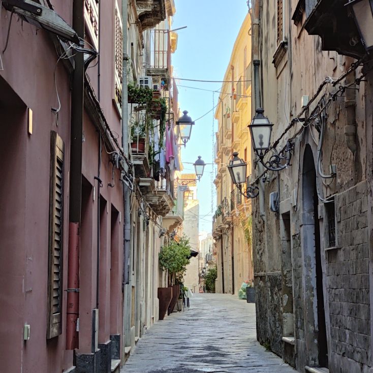 Am Nachmittag fahren wir nach Syrakus. Dort treffen wir unseren Guide für den Nachmittag, eine geschichtskundige ältere Dame. Wir starten bei der Archimedes-Statue und spazieren fast drei Stunden lang durch Ortigia, das historische Zentrum von Syrakus.