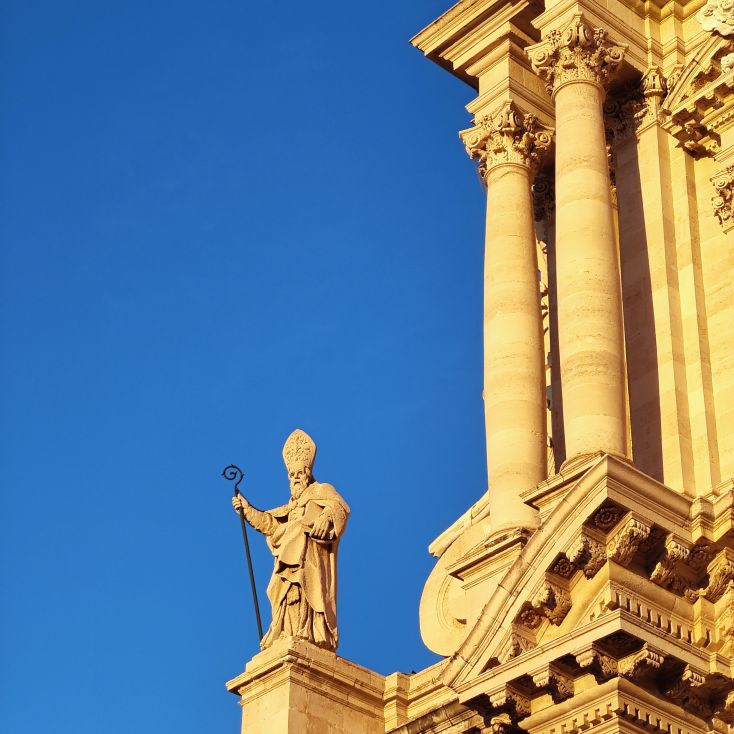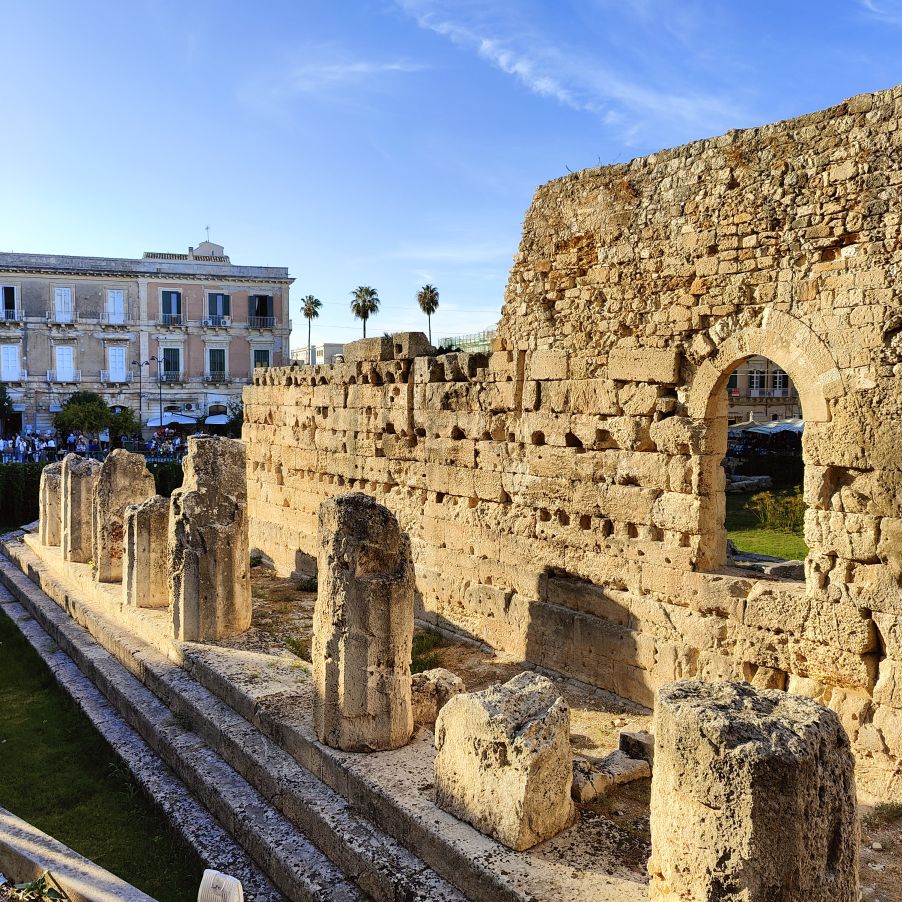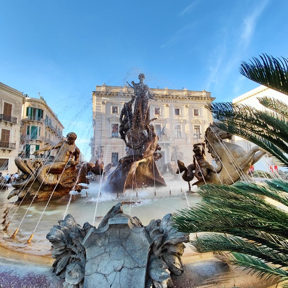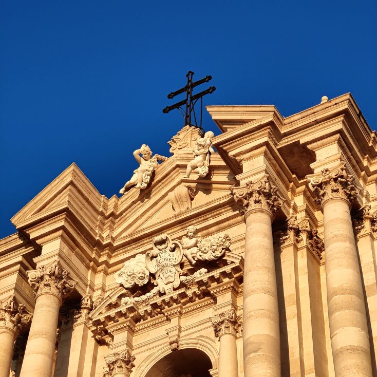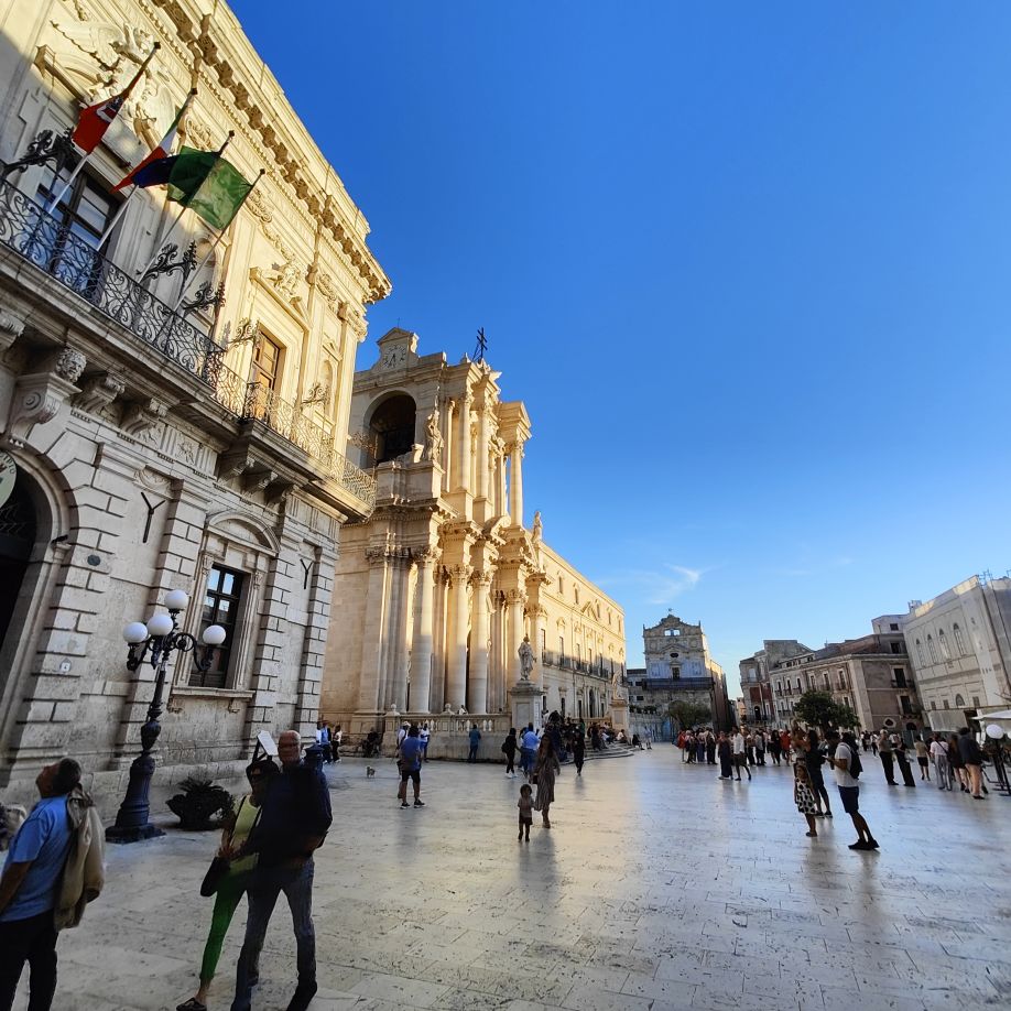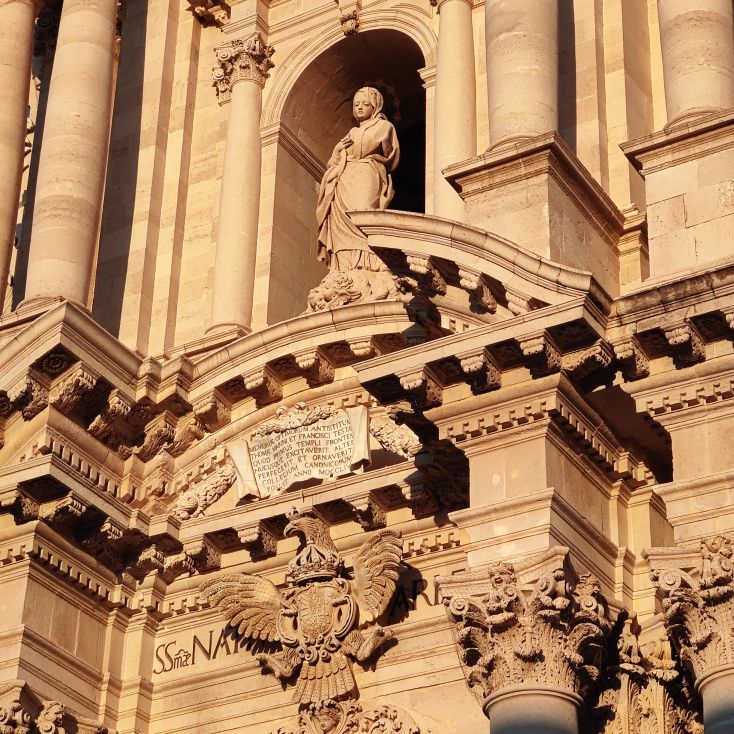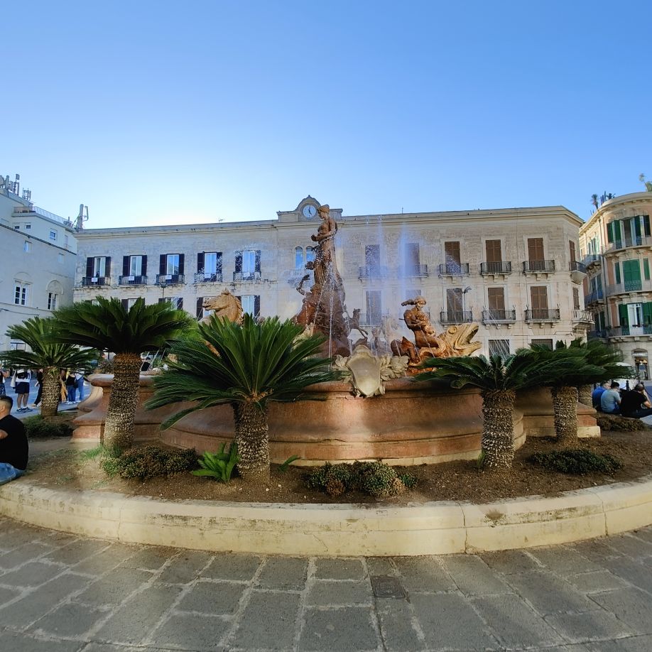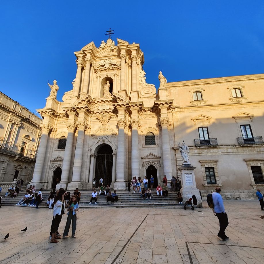 Am Nachmittag fahren wir nach Syrakus. Dort treffen wir unseren Guide für den Nachmittag, eine geschichtskundige ältere Dame. Wir starten bei der Archimedes-Statue und spazieren fast drei Stunden lang durch Ortigia, das historische Zentrum von Syrakus.