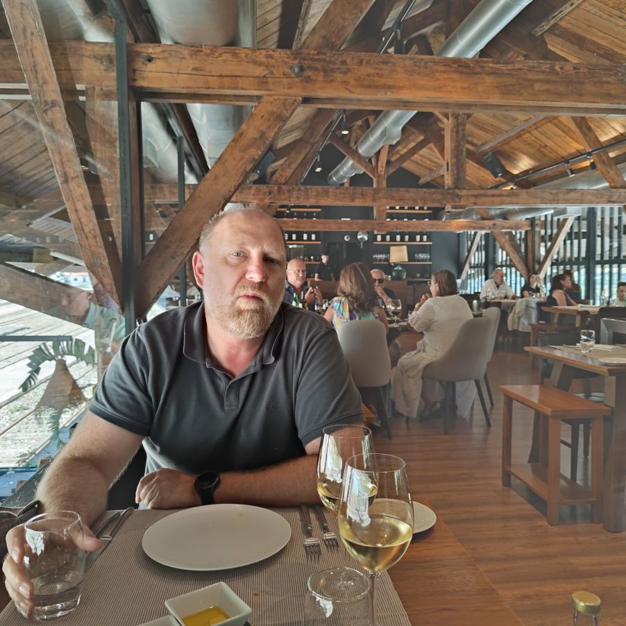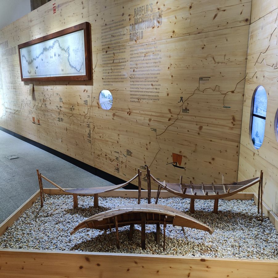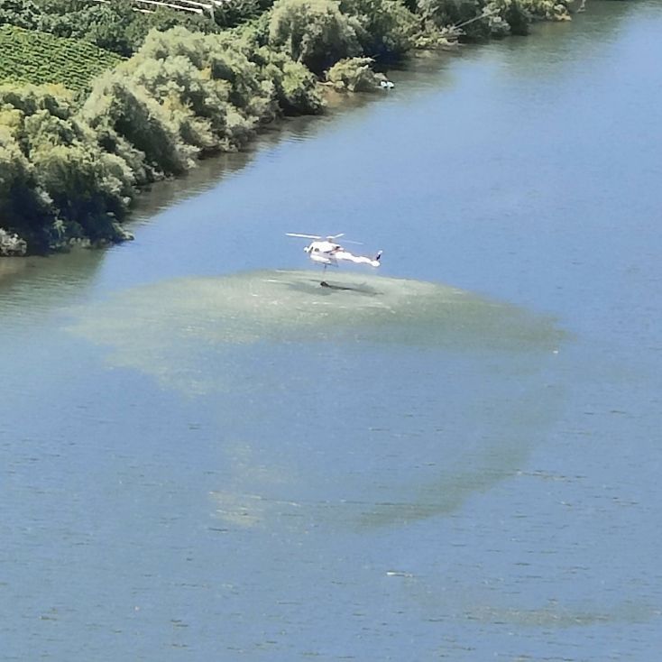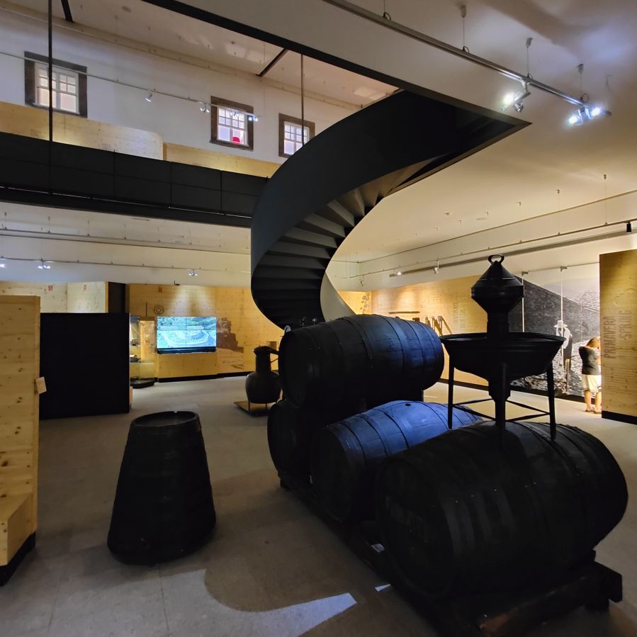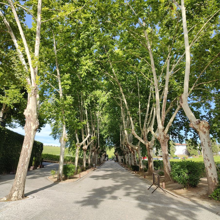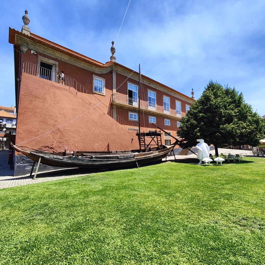 Dann fahren wir 100 Kilometer Richtung Osten nach Péso da Régua. Einen ersten Zwischenstopp machen wir in Mesão Frio, wo wir erstmals einen Blick auf den Douro erhaschen. Auf einem Hügel in der Nähe brennt es und wir beobachten den Lösch-Hubschrauber, der das Wasser zur Brandbekämpfung aus dem Fluss schöpft. Dann geht es weiter zum höher gelegenen Miradouro de Santo António, wo wir ebenfalls einen fantastischen Ausblick Richtung Osten auf die Weinberge und den Douro haben. Dann fahren wir die letzten Kilometer nach Péso da Régua, das als das Tor ins Douro-Tal gilt. Die Straßen sind abenteuerlich – eng, steil und holprig. Christoph lenkt den Dacia gekonnt 400 Höhenmeter auf drei Kilometer Straße nach unten. In Péso da Régua angekommen, besuchen wir das Museo do Douro und essen anschließend eine Kleinigkeit im „Castas e Pratos“.