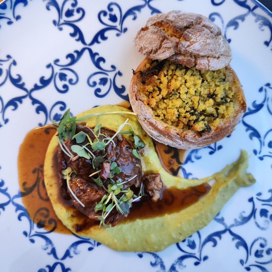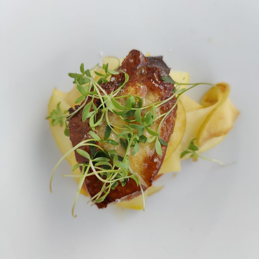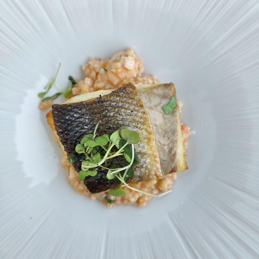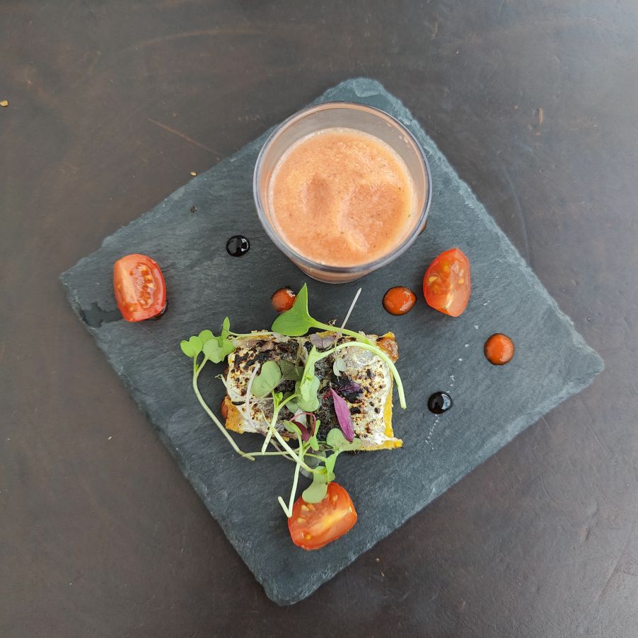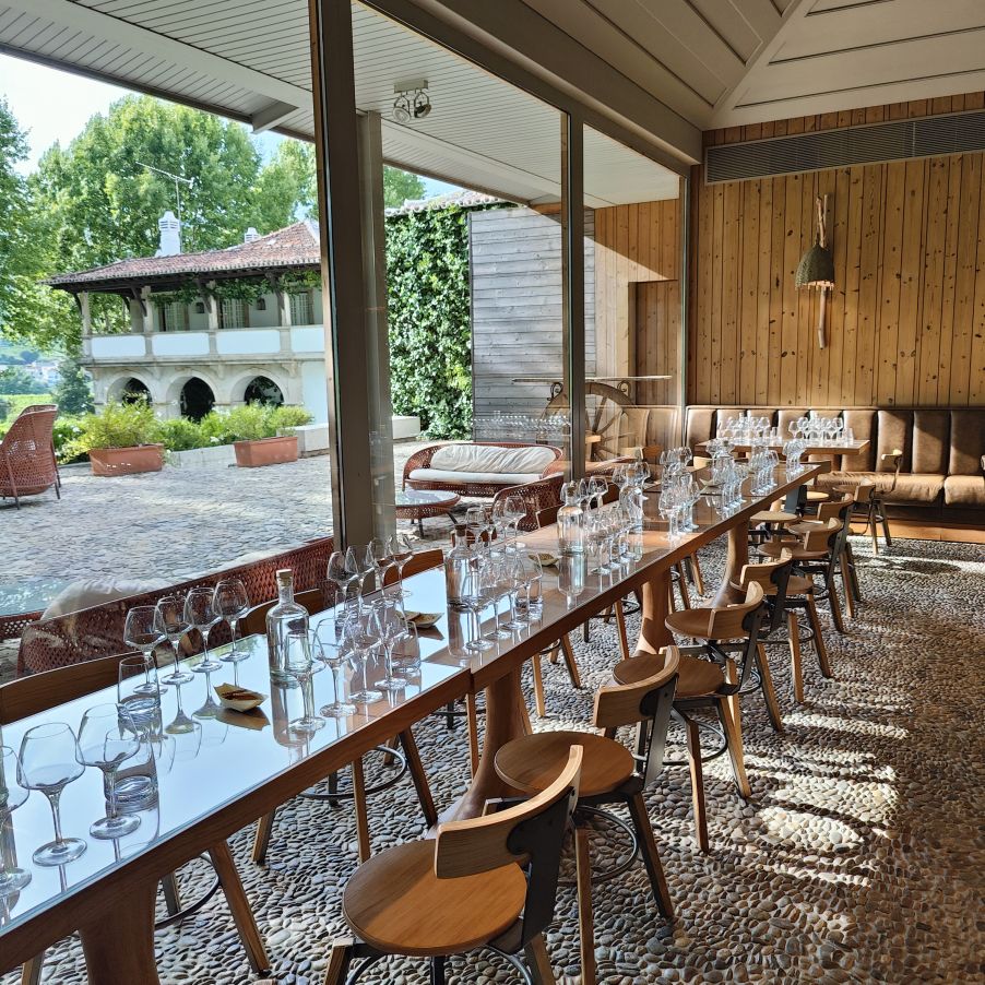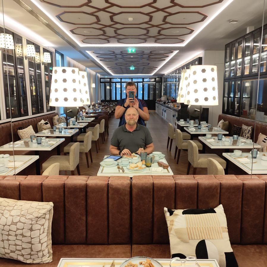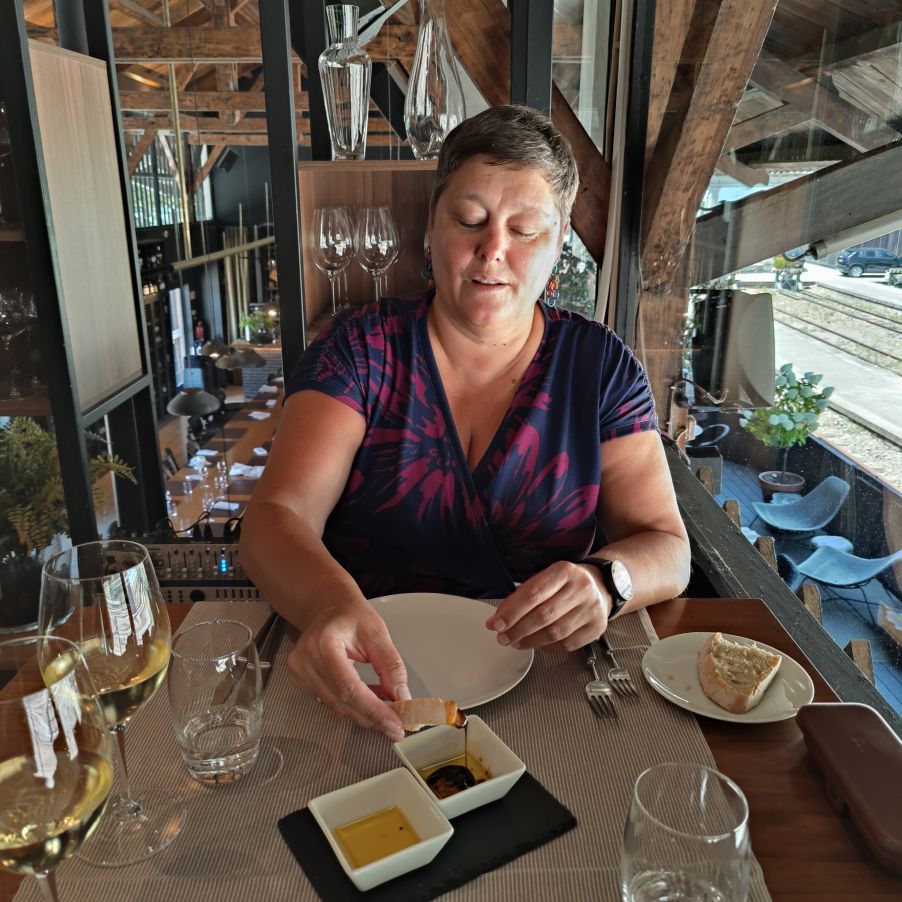 Dann duschen wir und essen im hoteleigenen Restaurant zu Abend. Wir bekommen ein großartiges Menü, begleitet von hauseigenen Weinen. Wir sind froh, auf der Terrasse zu sitzen, hier haben wir Ausblick auf die Weinberge, begleitet von einem angenehm kühlen Wind.