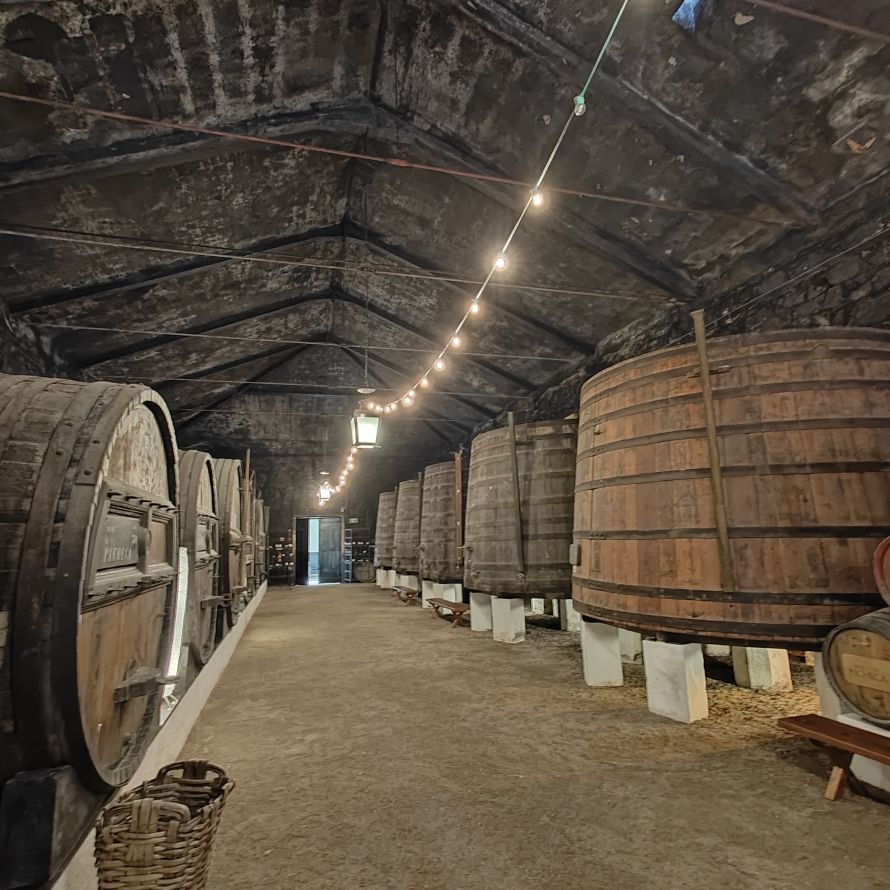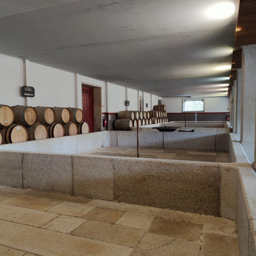 Am Abend nehmen wir zuerst an einem Wine-Tasting in der Quinta teil. Wir erfahren, dass die Quinta da Pacheca eines der ältesten Weingüter am Douro ist und sehen die Lagares, große Gefäße aus Granit, in denen die Trauben mit den Füßen eingemaischt werden, bevor sie mit 20 Prozent Alkohol versetzt werden, um die Gärung zu stoppen und so den typischen Portweingeschmack herzustellen. Dann werfen wir noch einen Blick in den Fasskeller, bevor wir den hauseigenen Wein verkosten– einen Weißwein, einen Rosewein sowie einen weißen und einen Ruby Portwein.