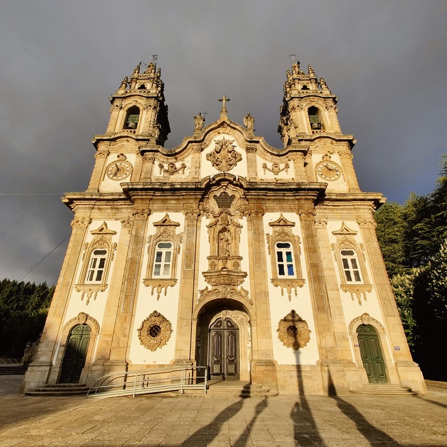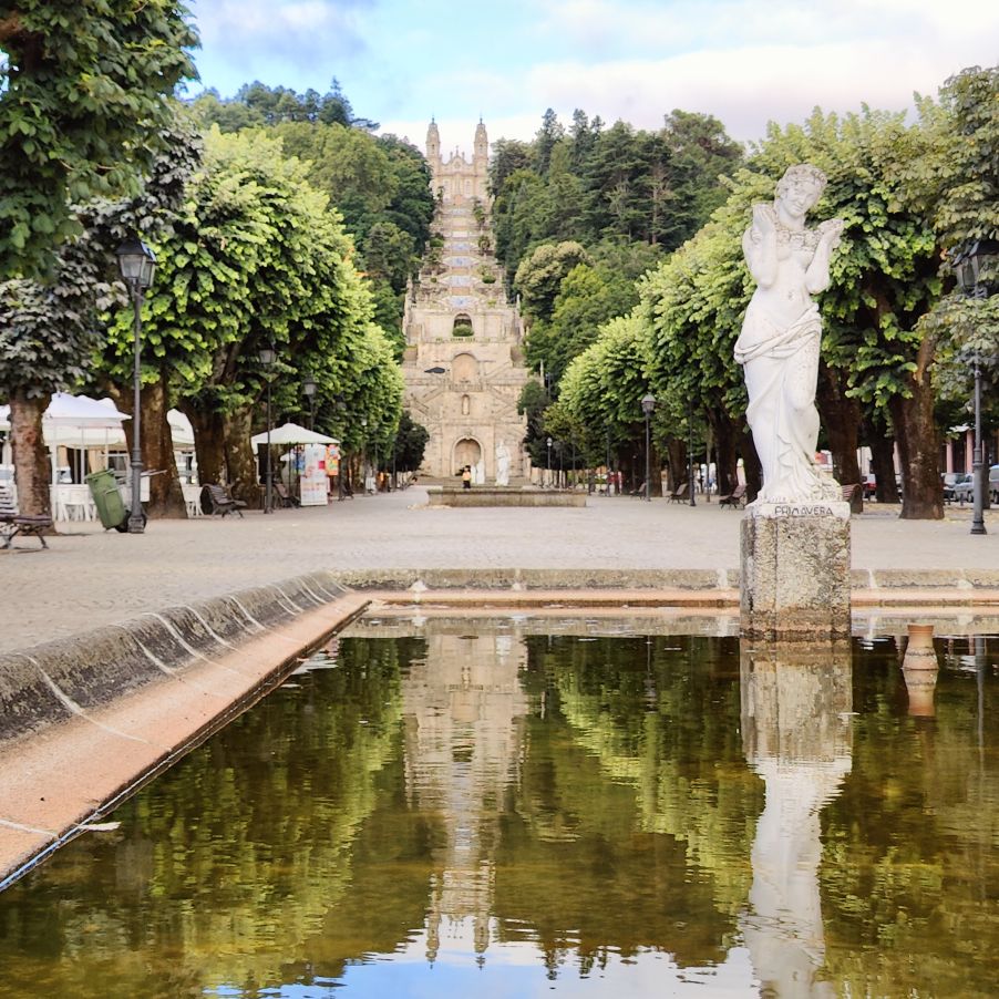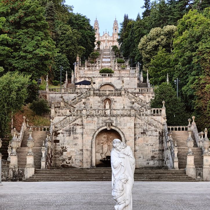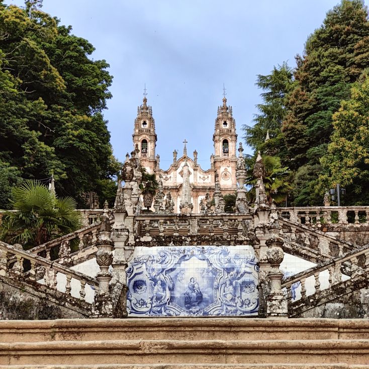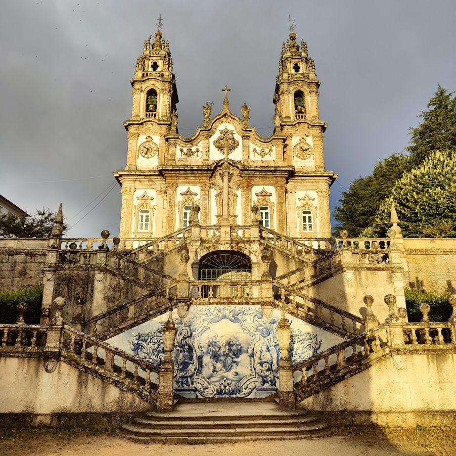 Von der Hauptstraße in Lamego führt eine eindrucksvolle barocke Freitreppe mit 686 Stufen auf einen Hügel, auf dem sich die Rocaille-Wallfahrtskirche befindet, die der Nossa Senhora dos Remédios gewidmet ist. Der Bau wurde im achtzehnten Jahrhundert begonnen, konnte aber erst 1905 fertiggestellt werden. Das abschüssige Gelände betont die Grandezza der Anlage, die vom dicht bewaldeten Park Santo Estevão mit Wegen und Gartenanlagen umgeben ist. Nicolau Nasoni, der die Gewölbe der Kathedrale ausmalte, entwarf auch einige barocke Werke in der Außenanlage wie den Granitbrunnen neben der Kirche. Auf den Treppenabsätzen finden sich interessante Skulpturen: auf dem ersten Absatz etwa der Pelikanbrunnen mit seinen verschieden großen Schalen. Die kleine achteckige Kapelle zu Ehren der Jungfrau Maria auf dem zweiten Treppenabsatz wurde im sechzehnten Jahrhundert auf Geheiß des Bischofs D. Manuel de Noronha errichtet und ersetzte die Ruine einer kleinen, dem Heiligen Stephanus gewidmeten Kapelle. Auf dem nächsten Treppenabsatz stehen 18 Statuen, die biblische Könige und Patriarchen darstellen. Aus der Mitte einer großen Wasserschale erhebt sich ein 22 Meter hoher Obelisk, verziert und gestützt von mythischen Atlanten.
