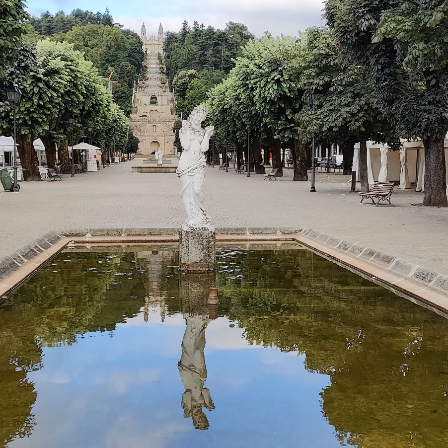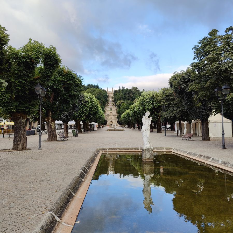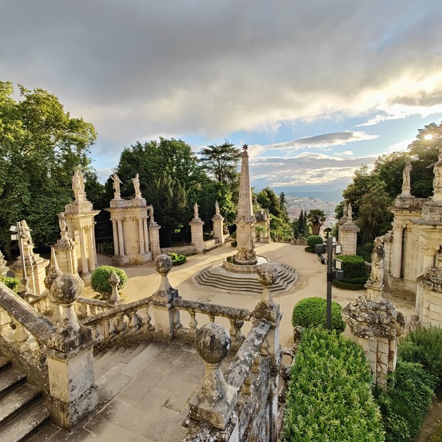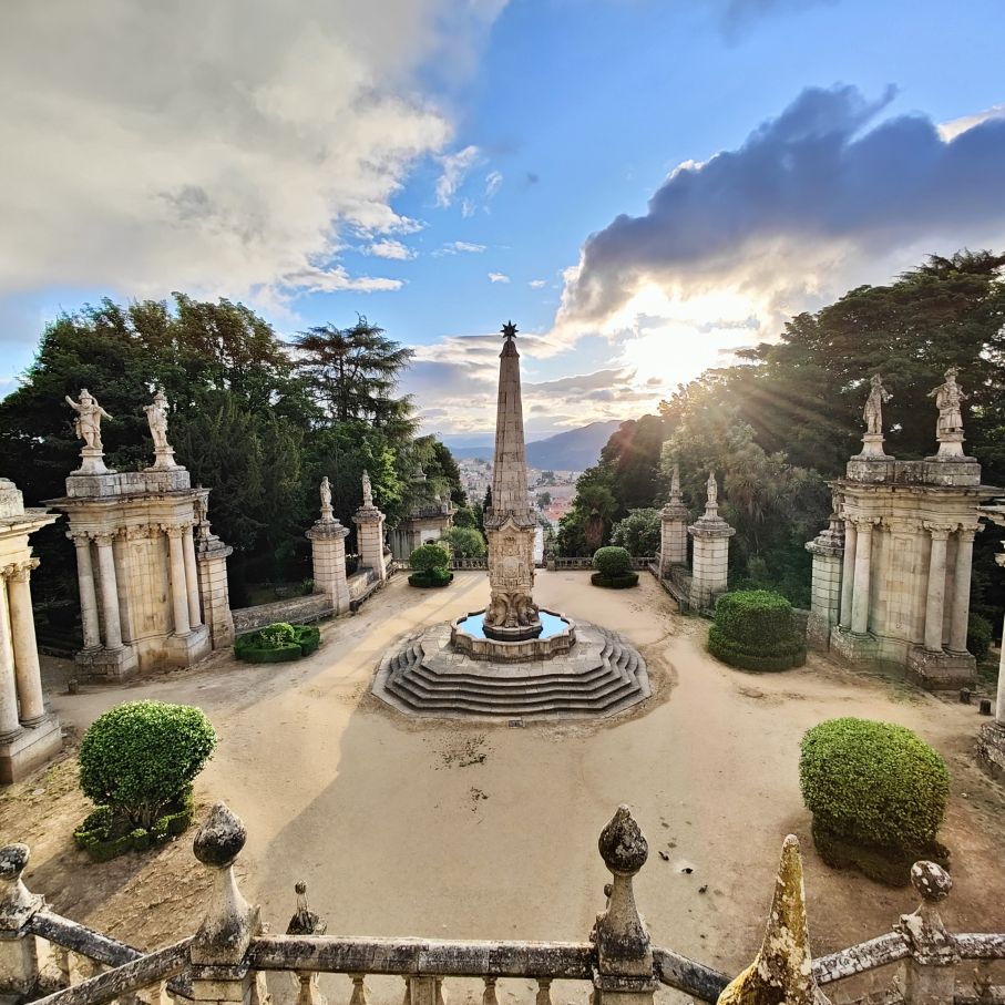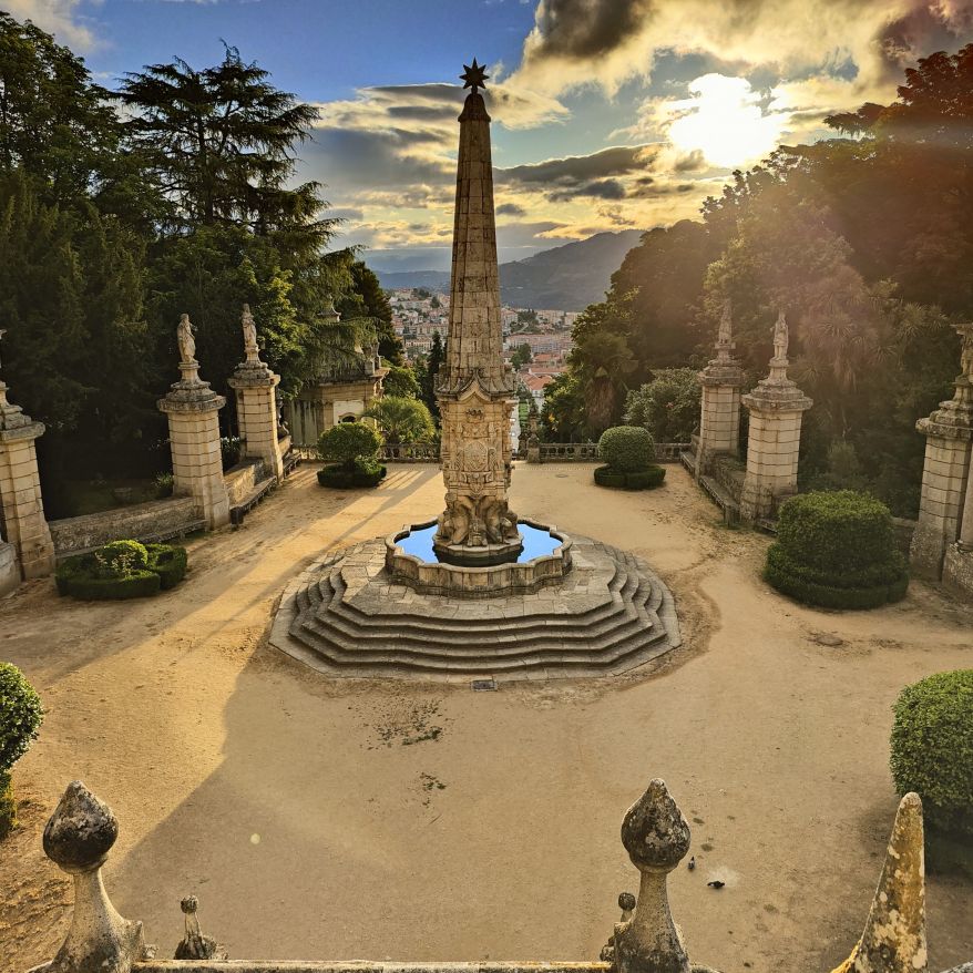 Von der Hauptstraße in Lamego führt eine eindrucksvolle barocke Freitreppe mit 686 Stufen auf einen Hügel, auf dem sich die Rocaille-Wallfahrtskirche befindet, die der Nossa Senhora dos Remédios gewidmet ist. Der Bau wurde im achtzehnten Jahrhundert begonnen, konnte aber erst 1905 fertiggestellt werden. Das abschüssige Gelände betont die Grandezza der Anlage, die vom dicht bewaldeten Park Santo Estevão mit Wegen und Gartenanlagen umgeben ist. Nicolau Nasoni, der die Gewölbe der Kathedrale ausmalte, entwarf auch einige barocke Werke in der Außenanlage wie den Granitbrunnen neben der Kirche. Auf den Treppenabsätzen finden sich interessante Skulpturen: auf dem ersten Absatz etwa der Pelikanbrunnen mit seinen verschieden großen Schalen. Die kleine achteckige Kapelle zu Ehren der Jungfrau Maria auf dem zweiten Treppenabsatz wurde im sechzehnten Jahrhundert auf Geheiß des Bischofs D. Manuel de Noronha errichtet und ersetzte die Ruine einer kleinen, dem Heiligen Stephanus gewidmeten Kapelle. Auf dem nächsten Treppenabsatz stehen 18 Statuen, die biblische Könige und Patriarchen darstellen. Aus der Mitte einer großen Wasserschale erhebt sich ein 22 Meter hoher Obelisk, verziert und gestützt von mythischen Atlanten.