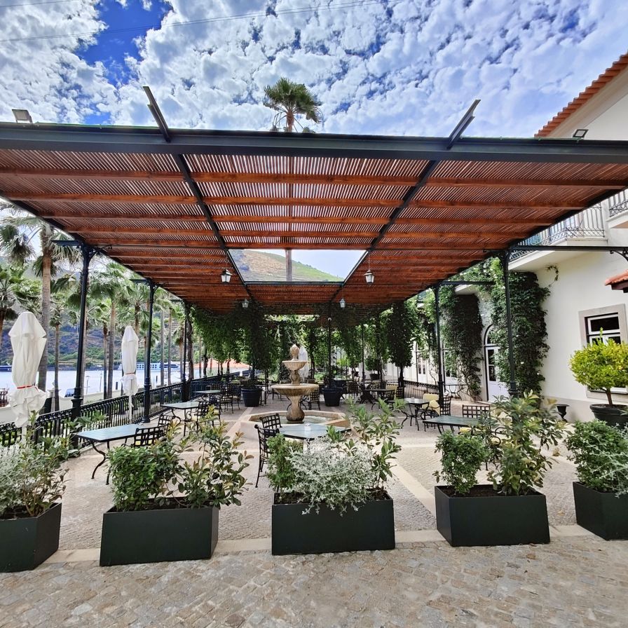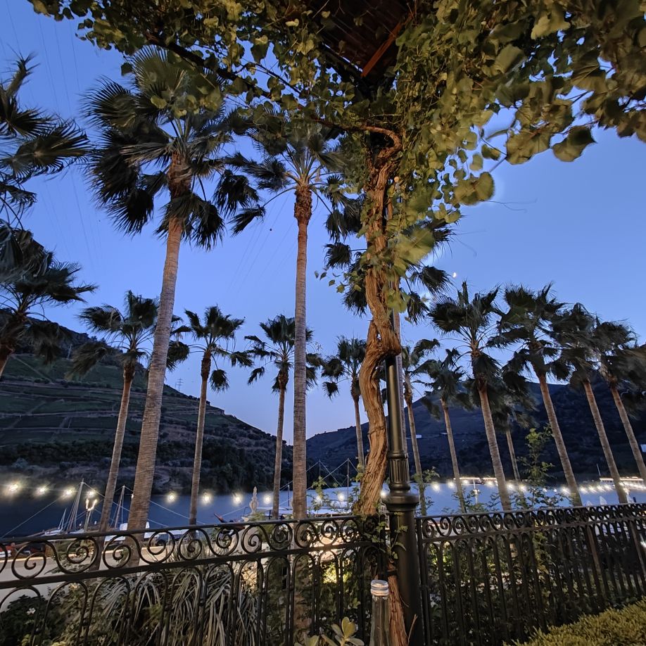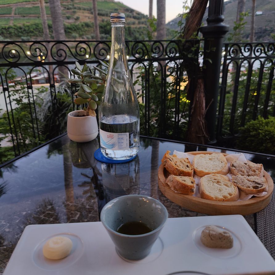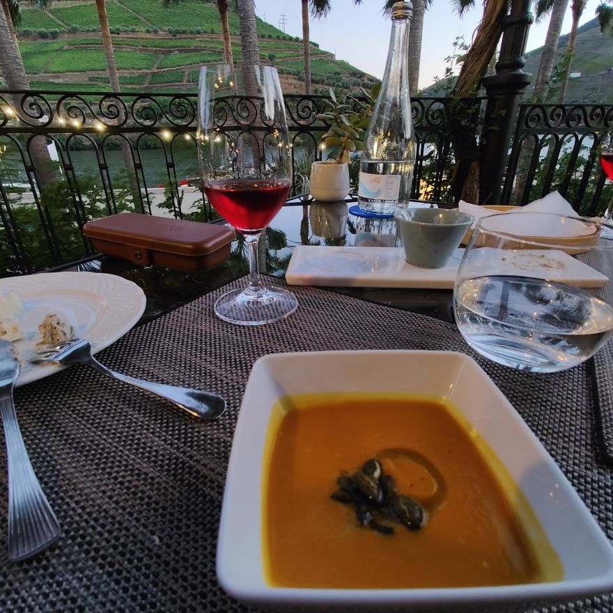 Für uns ist ein Tisch im hoteleigenen „Rabelo Restaurant“ reserviert und wir haben gebeten, auf der Terrasse sitzen zu dürfen. Wir haben einen atemberaubenden Blick auf den Douro bei untergehender Sonne. Wir bestellen als Vorspeise Fisch und als Hauptgericht Fisch und Kalb, dazu trinken wir einen hervorragenden Weißwein von der Quinta do Crasto. Wir schließen den Abend mit einem Käseteller und einem Glas Tawny Port.