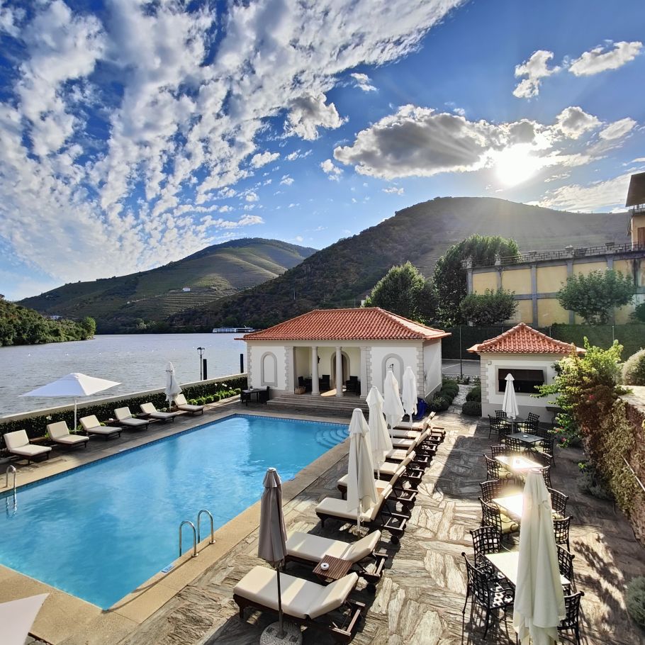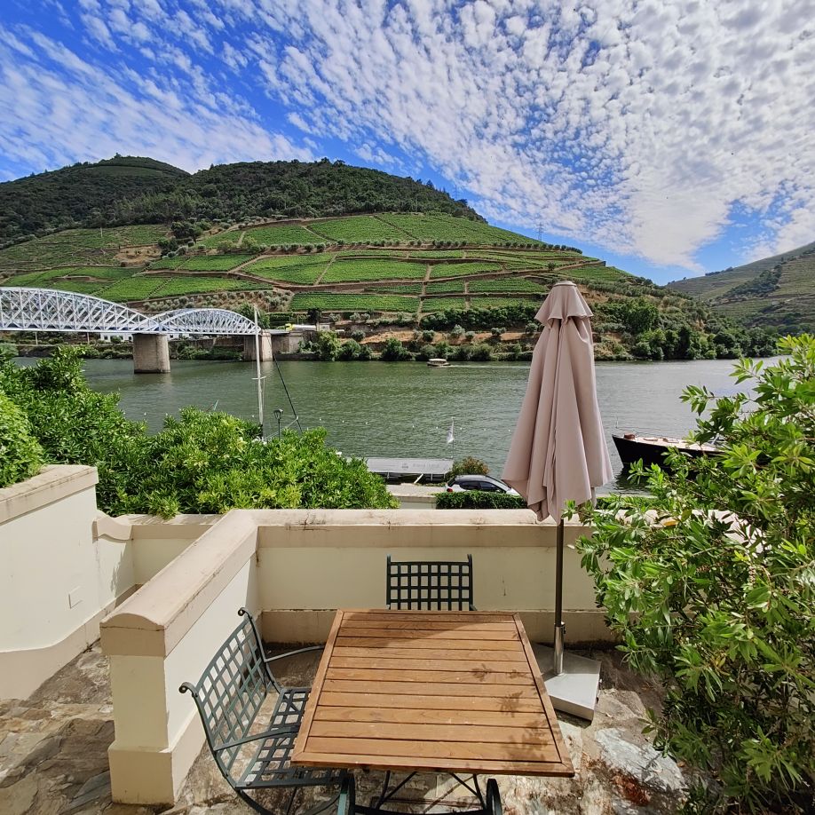 Nach einer halben Stunde Fahrt sind wir in Pinhão angekommen und checken im Vintage House ein, einem der traditionsreichsten und exklusivsten Hotels im gesamten Douro-Tal. Der Luxus hat zwar seinen Preis, zahlt sich bei der atemberaubenden Lage aber aus. Das Zimmer ist noch nicht fertig und wir dürfen in der Zwischenzeit den Pool nutzen. Um Punkt 16 Uhr beziehen wir unser Zimmer mit Blick auf den Douro.