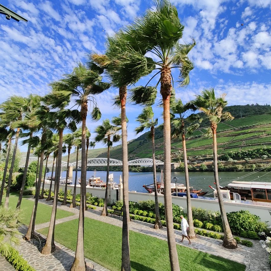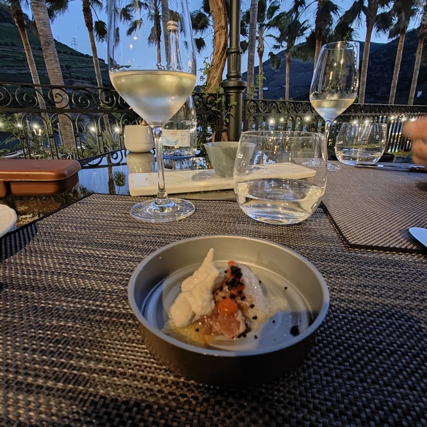 Wir haben noch eine besondere Wein-Tour gebucht: eine geführte private Weinbergwanderung mit anschließender Verkostung aller Premium-Weine des Weingutes Quinta de la Rosa. Die Fahrt ist kurz, nach fünf Minuten sind wir da und erkunden zu Fuß das „Vale do Inferno“, das Höllental. Seinen Namen hat es, weil es hier im Sommer bis zu 47 Grad heiß werden kann. Dann werden wir in die Wein- und Portkeller geführt. Zum Schluss verkosten wir Tim Grande Reserva White, Vale do Inferno Red, Passagem Grande Reserva Red, 20 years old Tawny Port, Vintage Port 2007 und Vintage Port 2017. Zwei Stunden später fahren wir wieder retour ins Vintage House und trinken unseren Willkommendrink in der Bar und genießen die Aussicht. Dann gehen wir duschen und machen uns fertig fürs Abendessen.