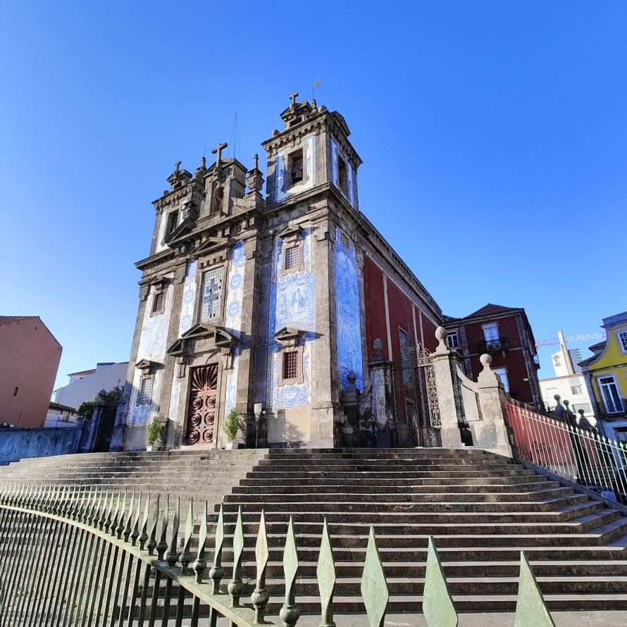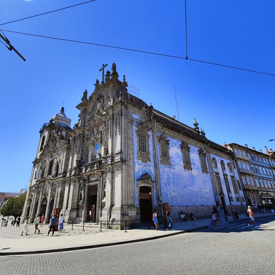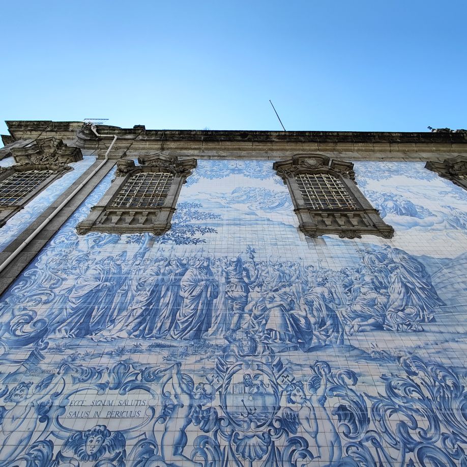 Unser letztes Ziel ist die Igreja do Carmo, die sich in unmittelbarer Nähe befindet. Die Kirche des dritten Ordens der Heiligen von Carmo wurde im 18. Jahrhundert im Rokokostil errichtet und ist für ihre einzigartige Seitenfassade bekannt. Diese ist vollständig mit den landestypischen Azulejos bedeckt. Die hellblauen Kacheln sind ein beliebtes Fotomotiv und erzählen die Geschichte um den Kult von Nossa Senhora. Leider sind die Azulejos von einem dünnen Netz verhüllt, was die Leuchtkraft der Fliesen erheblich einschränkt.