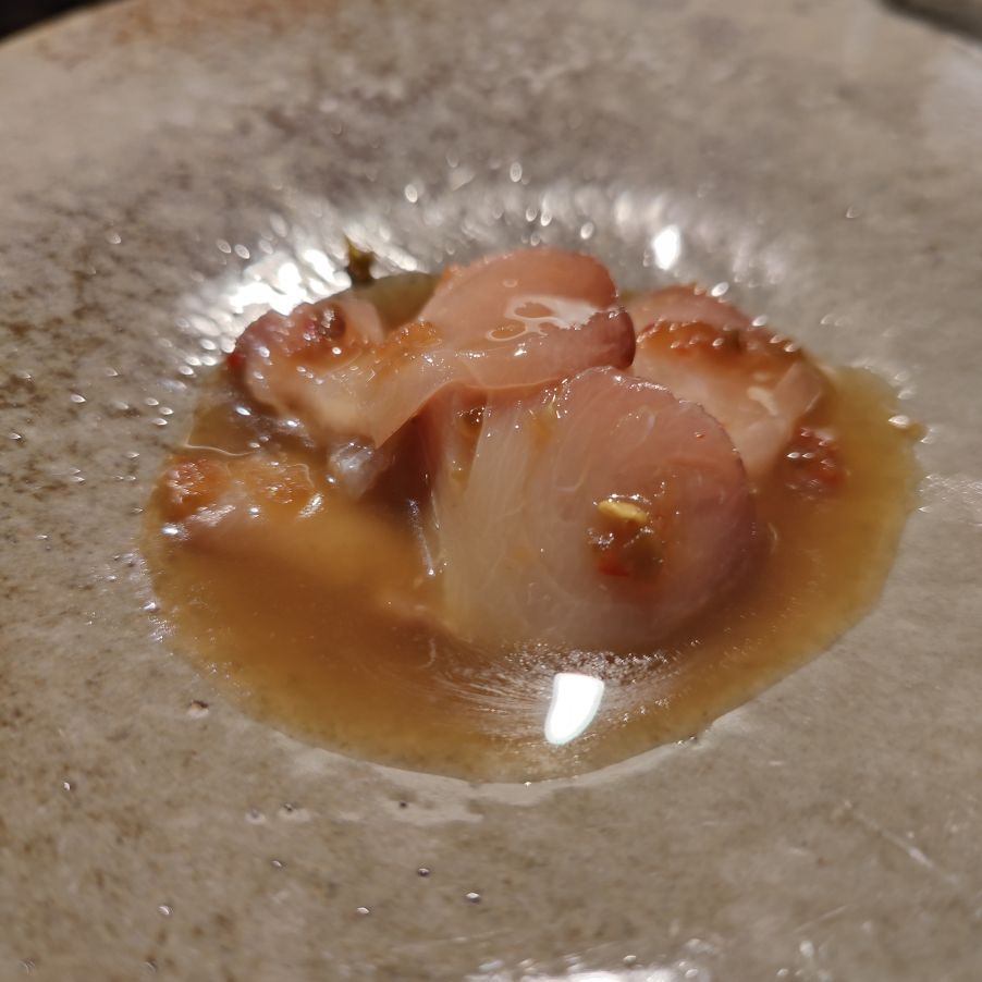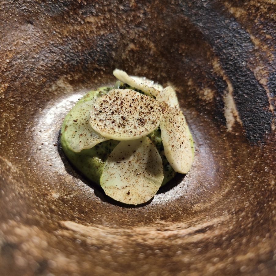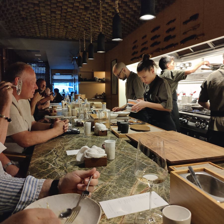 Wir essen viel Fisch und Gemüse, die einzelnen Gänge sind fantastisch, ebenso die Weinbegleitung. Durch den Platz an der Theke ist der Abend kommunikativ, wir sprechen sowohl mit den Köchen, dem Sommelier als auch mit den anderen Gästen, die aufgefädelt neben uns sitzen. Wir verbringen ganze vier Stunden im Restaurant und verlassen es kurz nach Mitternacht satt und zufrieden.
