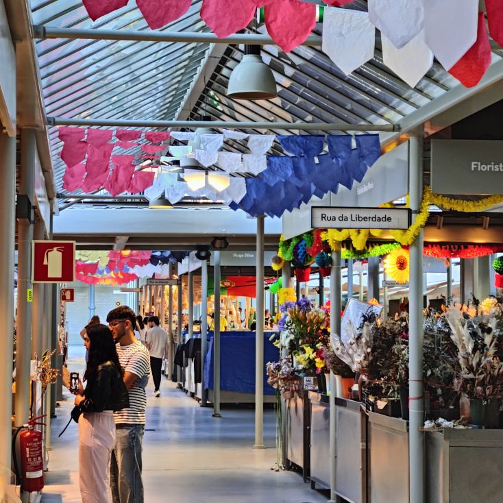 Nachdem wir in keiner Stadt den Markt auslassen, gehen wir zum nahe gelegenen Mercado do Bolhão. Das Gebäude im Beaux-Arts-Stil hat einen offenen Innenhof, der seit über 100 Jahren als Marktfläche für regionale Waren dient. In den schmalen Gängen riecht es abwechselnd nach Fisch, Fleisch oder frischen Blumen. Der Markt wurde kürzlich vom Architekten Nuno Valentim im Auftrag der Stadt Porto renoviert.