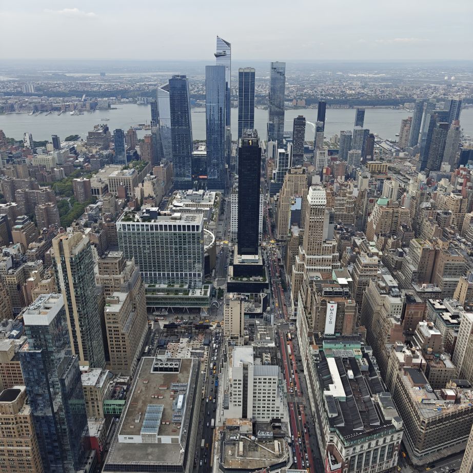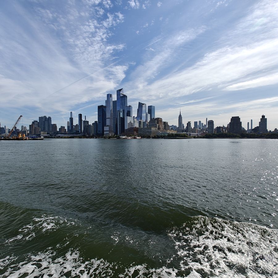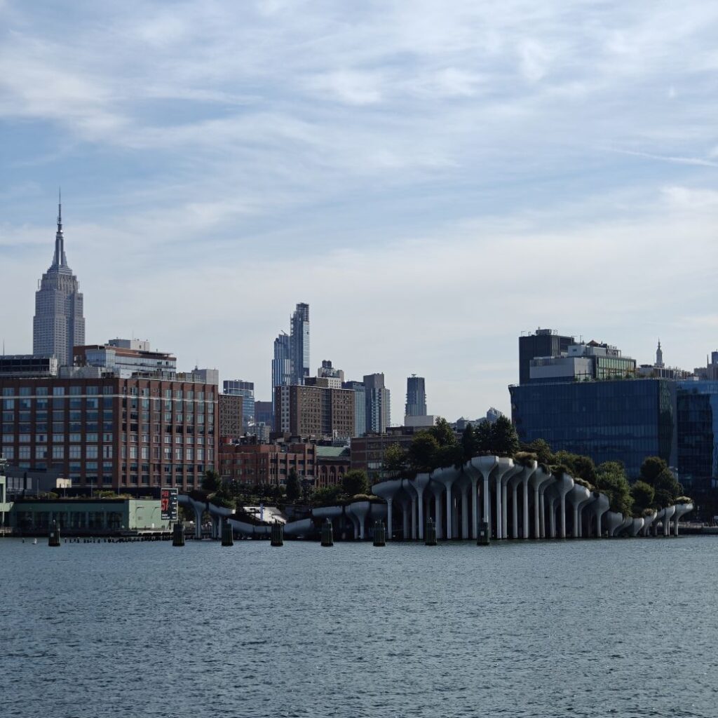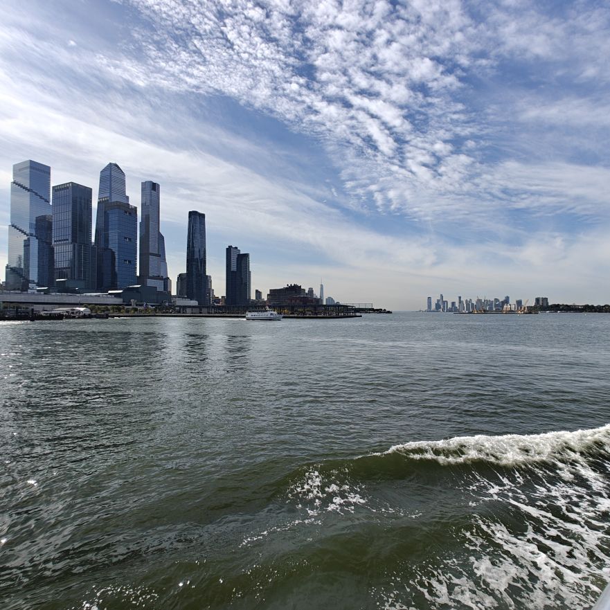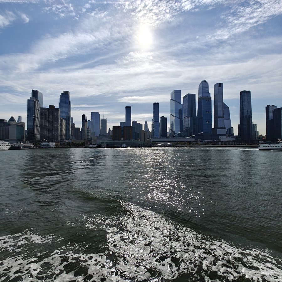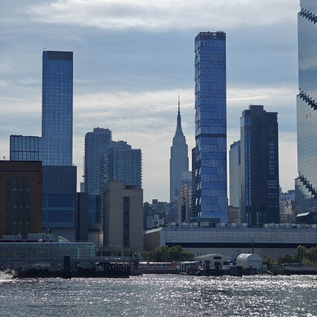 Wir gehen zu Fuß zum Pier 83 und können mit unserem New York Pass bei Circle Line ein Ticket für „Best of NYC Cruise“ für die nächste Fahrt um 10 Uhr eintauschen. Die Kreuzfahrt über den Hudson River und den East River dauert zweieinhalb Stunden und führt uns in alle fünf boroughs: Bronx, Brooklyn, Manhattan, Queens und Staten Island. Wir sehen das Empire State Building, die High Line, Ellis Island, die Statue of Liberty, an die wir ganz nahe heranfahren, den South Street Seaport, die Brooklyn Bridge, die Manhattan Bridge, die United Nations Headquarters, das Chrysler Building, Gracie Mansion, das Yankee Stadium und die George Washington Bridge. Ein langhaariger Guide an Bord erzählt uns launig jede Menge Wissenswertes. In New York fand am 22. September die United Nations General Assembly zum 80jährigen Bestehen der Vereinten Nationen statt, die ganze Woche verbringen die hochrangigsten Politikerinnen und Politiker der Welt in der UNO. Aus diesem Grund bekommen wir auf Höhe des UNO Gebäudes Begleitschutz der Küstenwache. Zu Mittag sind wir wieder zurück. Wissenswertes zur Tour gibt es hier: Best of NYC | Full Manhattan Boat Tour | Circle Line Cruises. Zu Fuß gehen wir über die Hudson Yards bis zum Empire State Building.