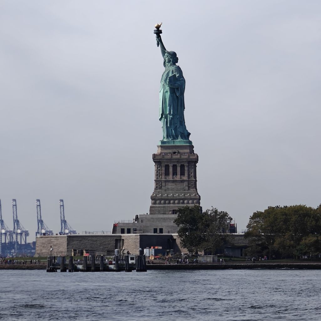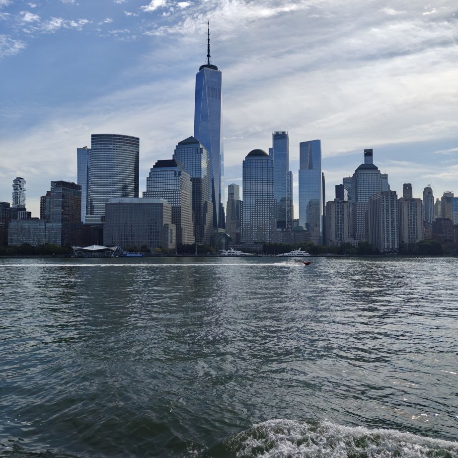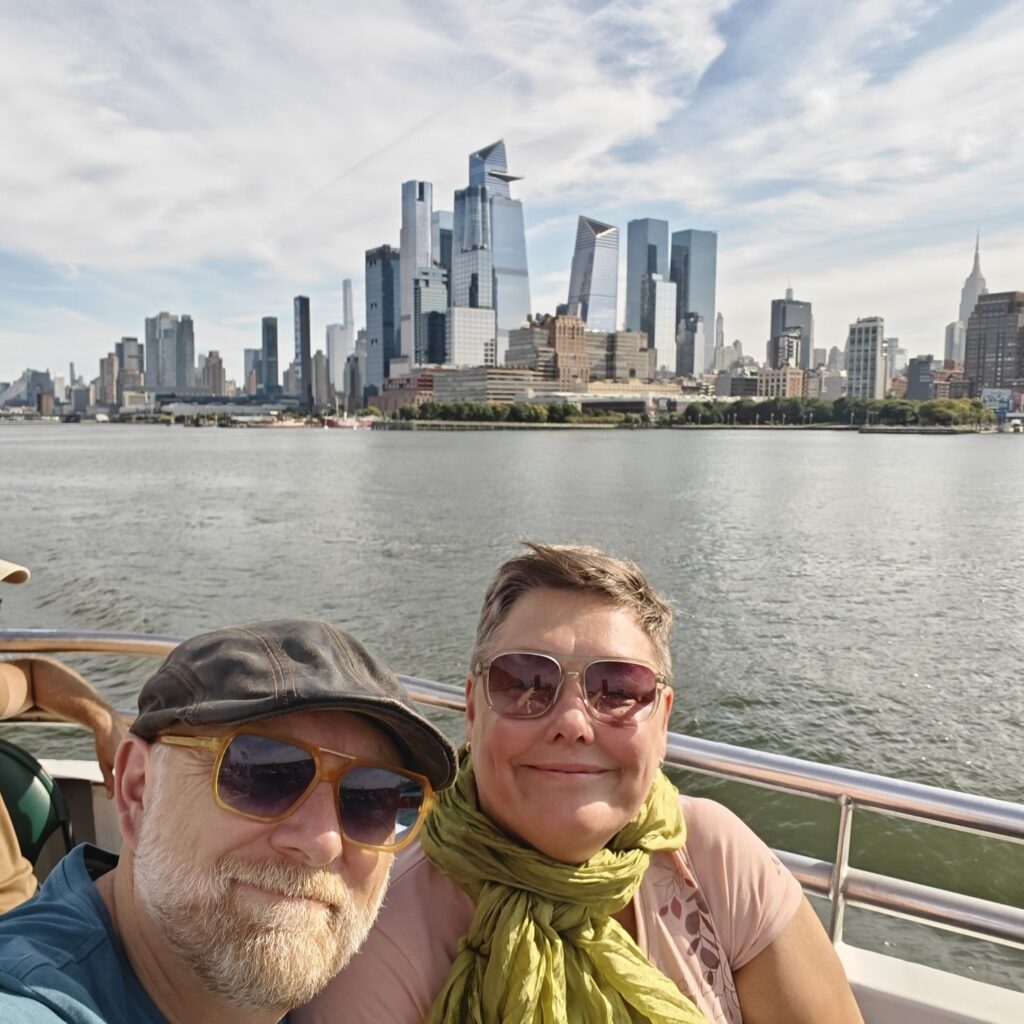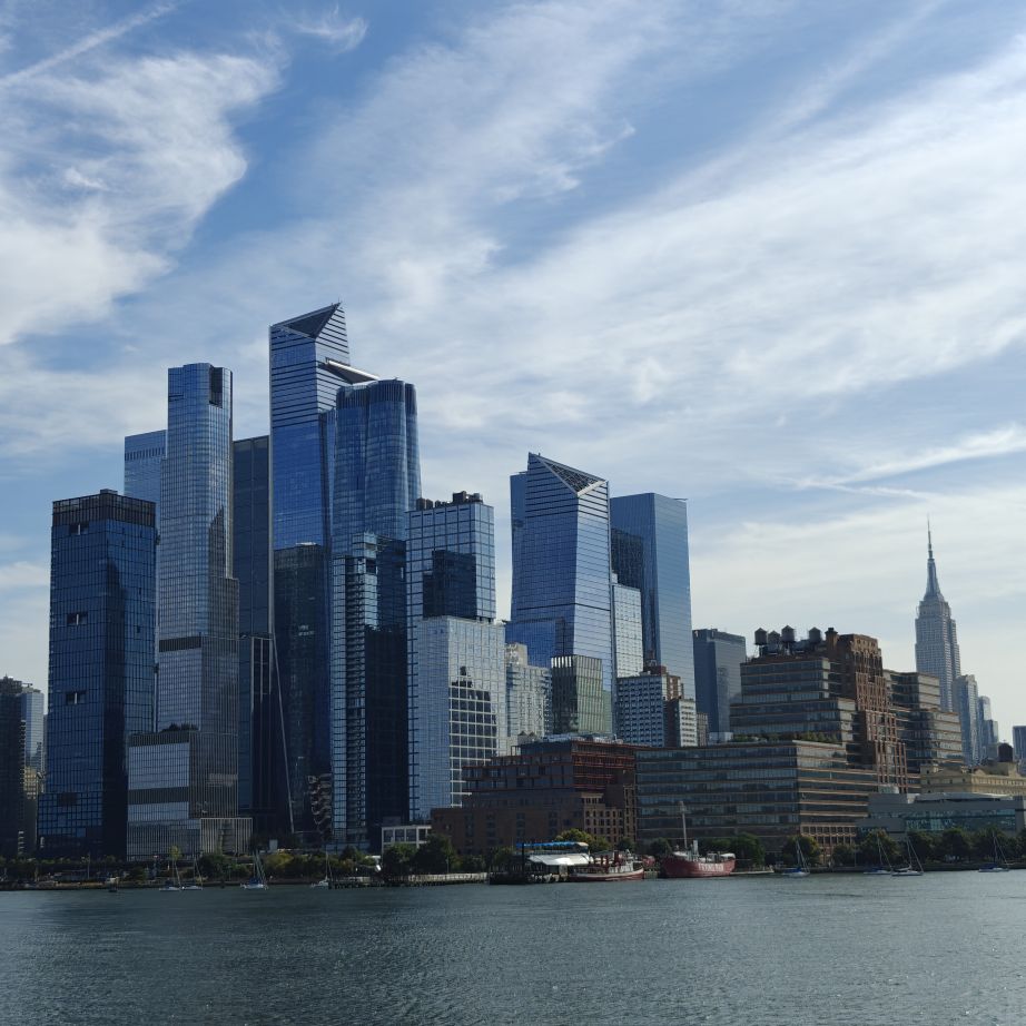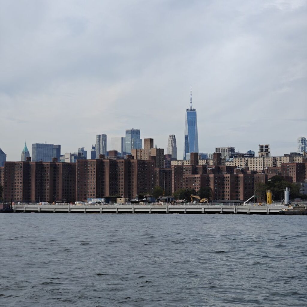 Wir gehen zu Fuß zum Pier 83 und können mit unserem New York Pass bei Circle Line ein Ticket für „Best of NYC Cruise“ für die nächste Fahrt um 10 Uhr eintauschen. Die Kreuzfahrt über den Hudson River und den East River dauert zweieinhalb Stunden und führt uns in alle fünf boroughs: Bronx, Brooklyn, Manhattan, Queens und Staten Island. Wir sehen das Empire State Building, die High Line, Ellis Island, die Statue of Liberty, an die wir ganz nahe heranfahren, den South Street Seaport, die Brooklyn Bridge, die Manhattan Bridge, die United Nations Headquarters, das Chrysler Building, Gracie Mansion, das Yankee Stadium und die George Washington Bridge. Ein langhaariger Guide an Bord erzählt uns launig jede Menge Wissenswertes. In New York fand am 22. September die United Nations General Assembly zum 80jährigen Bestehen der Vereinten Nationen statt, die ganze Woche verbringen die hochrangigsten Politikerinnen und Politiker der Welt in der UNO. Aus diesem Grund bekommen wir auf Höhe des UNO Gebäudes Begleitschutz der Küstenwache. Zu Mittag sind wir wieder zurück. Wissenswertes zur Tour gibt es hier: Best of NYC | Full Manhattan Boat Tour | Circle Line Cruises. Zu Fuß gehen wir über die Hudson Yards bis zum Empire State Building.