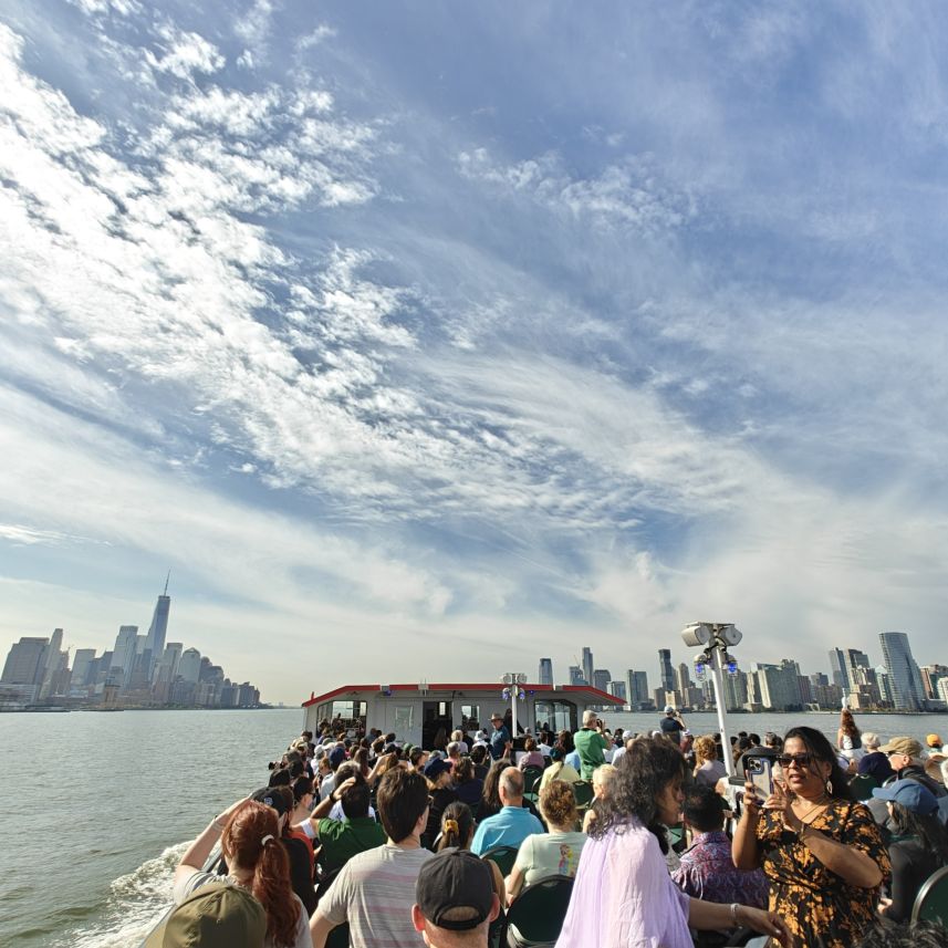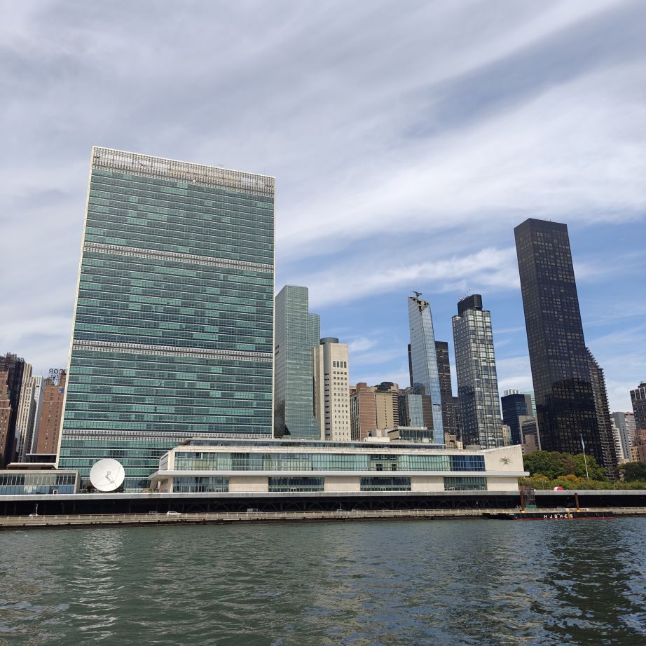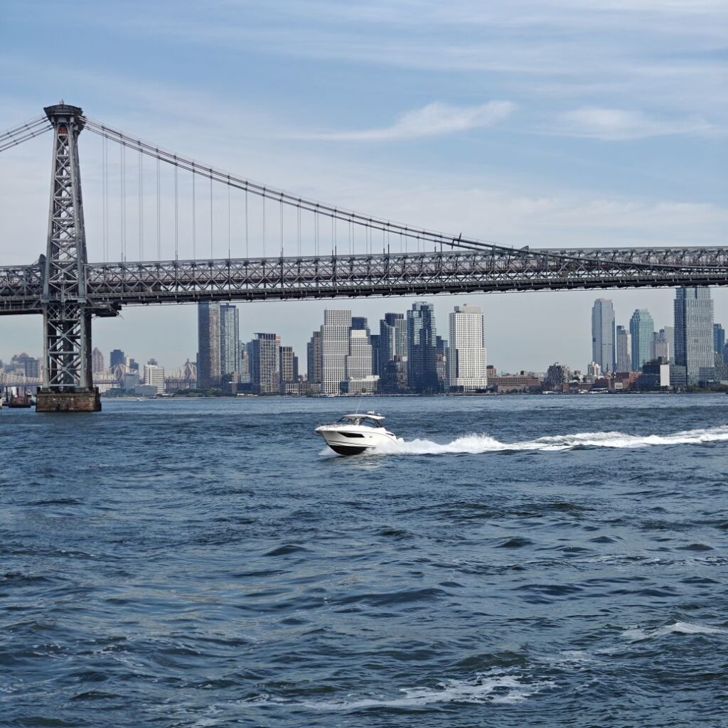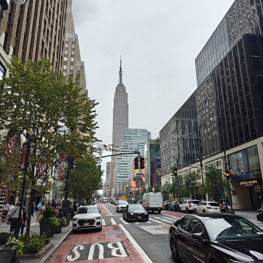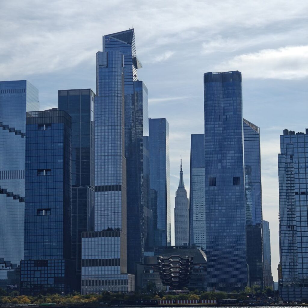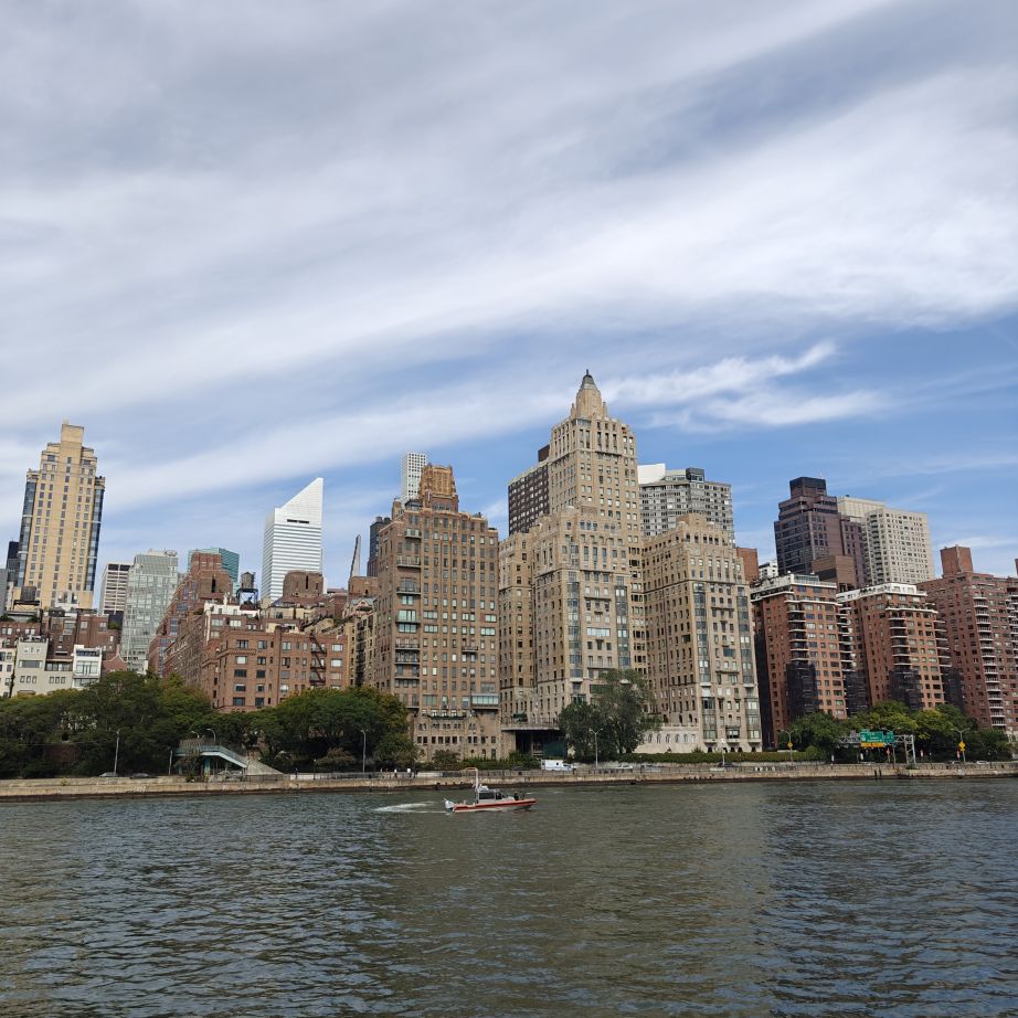 Wir gehen zu Fuß zum Pier 83 und können mit unserem New York Pass bei Circle Line ein Ticket für „Best of NYC Cruise“ für die nächste Fahrt um 10 Uhr eintauschen. Die Kreuzfahrt über den Hudson River und den East River dauert zweieinhalb Stunden und führt uns in alle fünf boroughs: Bronx, Brooklyn, Manhattan, Queens und Staten Island. Wir sehen das Empire State Building, die High Line, Ellis Island, die Statue of Liberty, an die wir ganz nahe heranfahren, den South Street Seaport, die Brooklyn Bridge, die Manhattan Bridge, die United Nations Headquarters, das Chrysler Building, Gracie Mansion, das Yankee Stadium und die George Washington Bridge. Ein langhaariger Guide an Bord erzählt uns launig jede Menge Wissenswertes. In New York fand am 22. September die United Nations General Assembly zum 80jährigen Bestehen der Vereinten Nationen statt, die ganze Woche verbringen die hochrangigsten Politikerinnen und Politiker der Welt in der UNO. Aus diesem Grund bekommen wir auf Höhe des UNO Gebäudes Begleitschutz der Küstenwache. Zu Mittag sind wir wieder zurück. Wissenswertes zur Tour gibt es hier: Best of NYC | Full Manhattan Boat Tour | Circle Line Cruises. Zu Fuß gehen wir über die Hudson Yards bis zum Empire State Building.