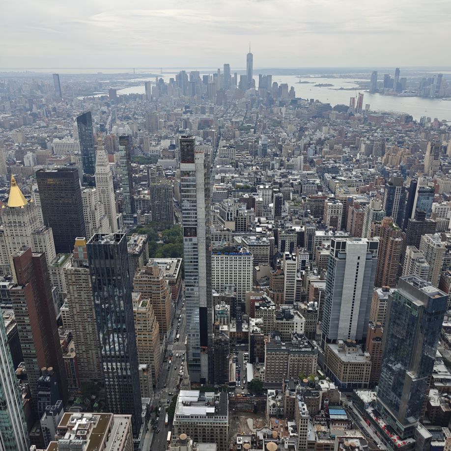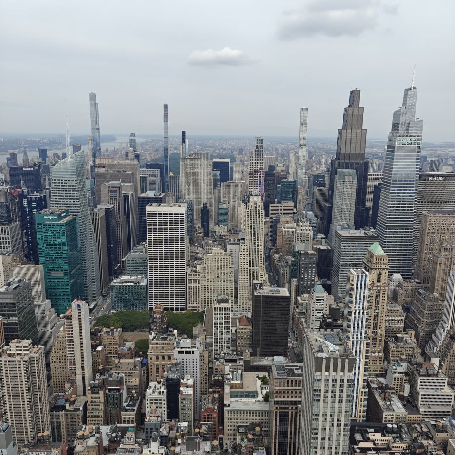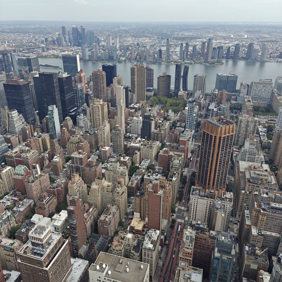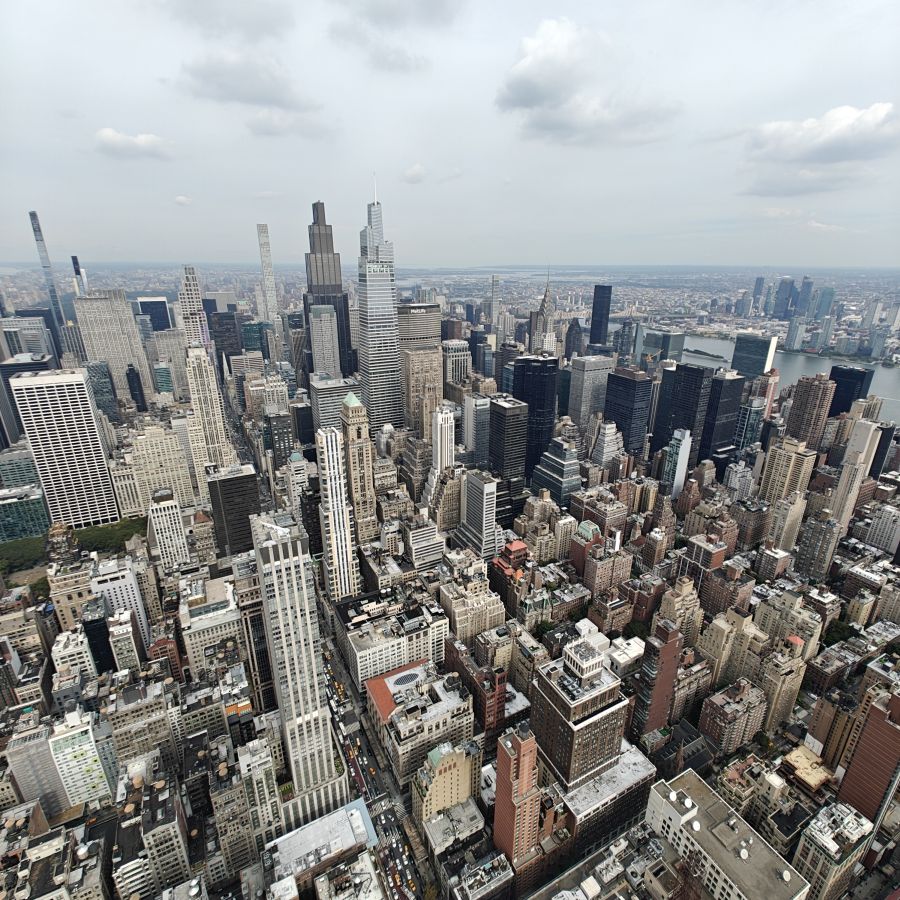 Wir besuchen das Museum im 2. Stock und fahren danach zunächst in die 80. Etage. Dort haben wir einen ersten Rundblick auf die Stadt, allerdings hinter Glas. Wir fahren weiter in den 86. Stock auf das Main Deck. Das Freiluft-Observatorium bietet eine beeindruckende Rundum-Sicht auf New York. Fun Fact am Rande: Seit 2011 wird das ESB vollständig mit erneuerbarem Windstrom betrieben.