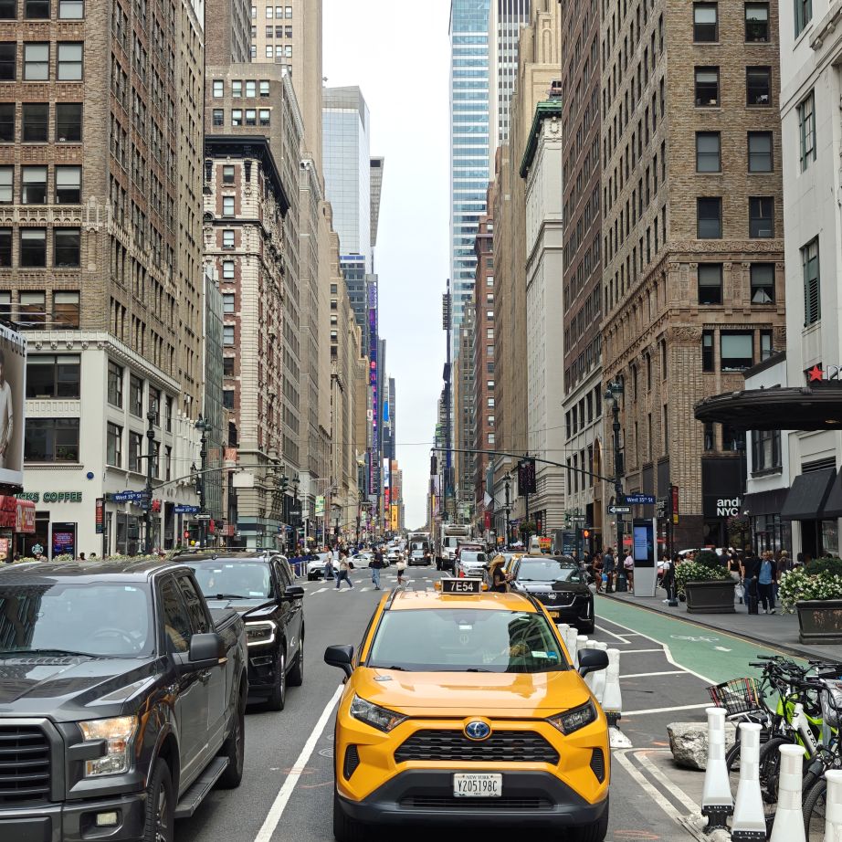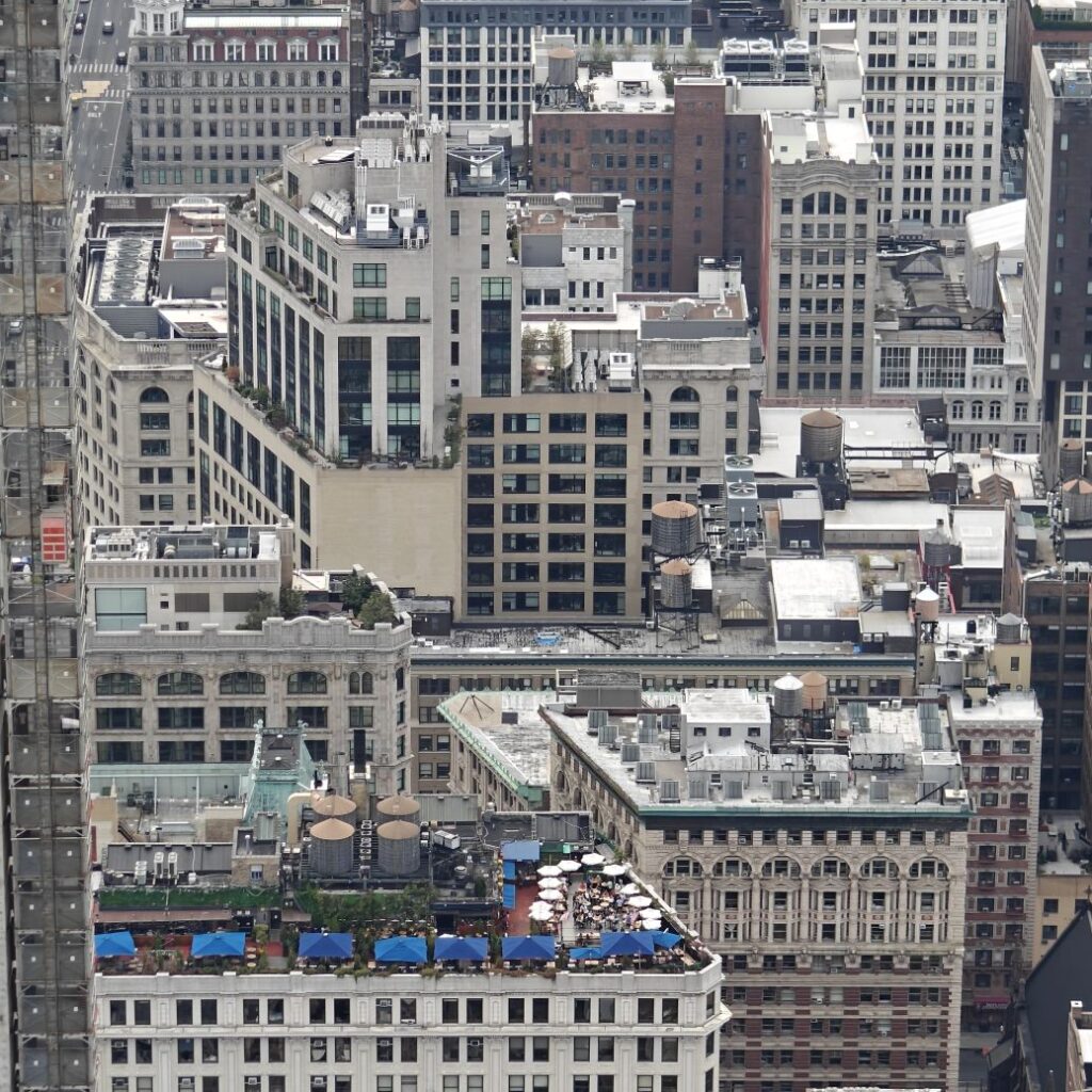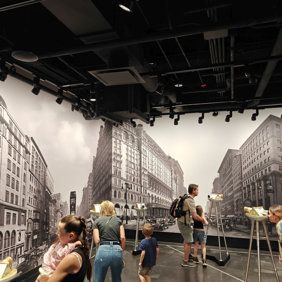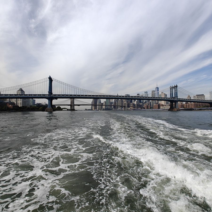Wir besuchen das Museum im 2. Stock und fahren danach zunächst in die 80. Etage. Dort haben wir einen ersten Rundblick auf die Stadt, allerdings hinter Glas. Wir fahren weiter in den 86. Stock auf das Main Deck. Das Freiluft-Observatorium bietet eine beeindruckende Rundum-Sicht auf New York. Fun Fact am Rande: Seit 2011 wird das ESB vollständig mit erneuerbarem Windstrom betrieben.