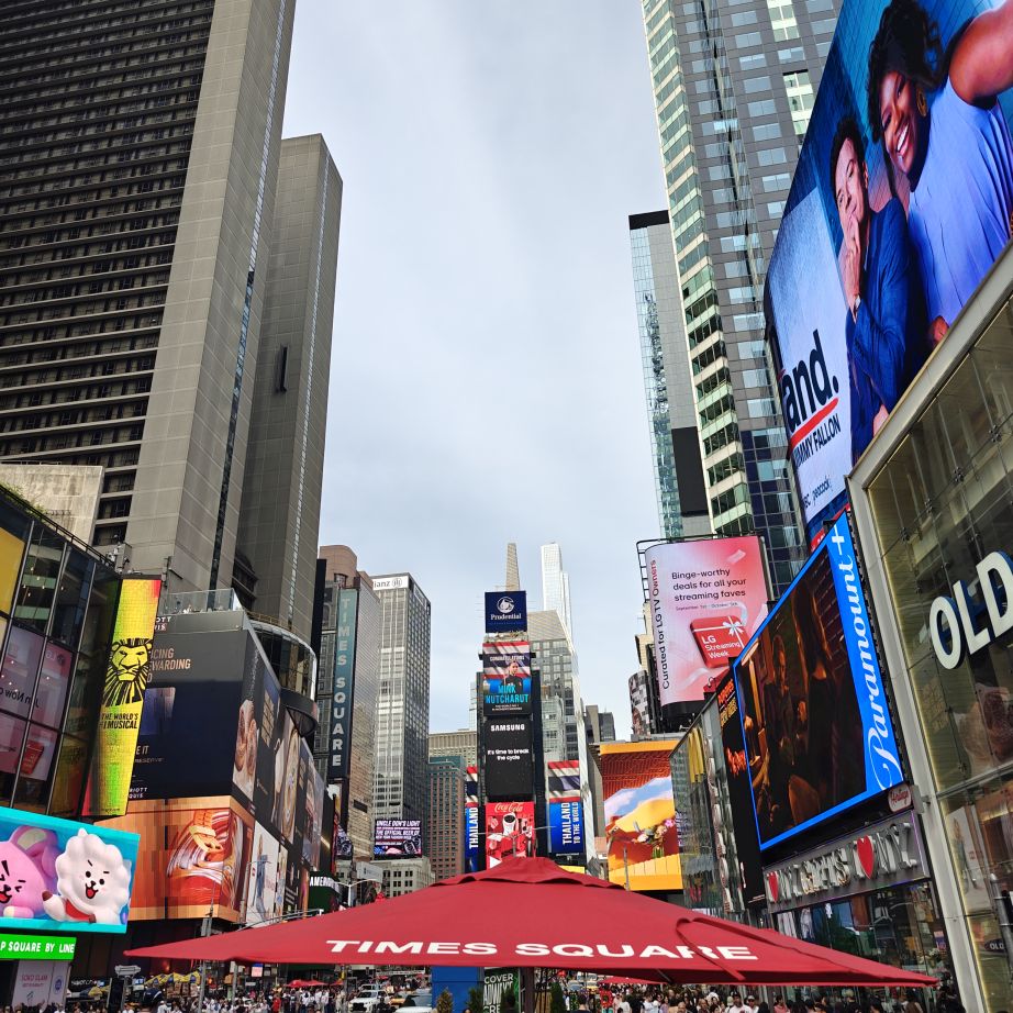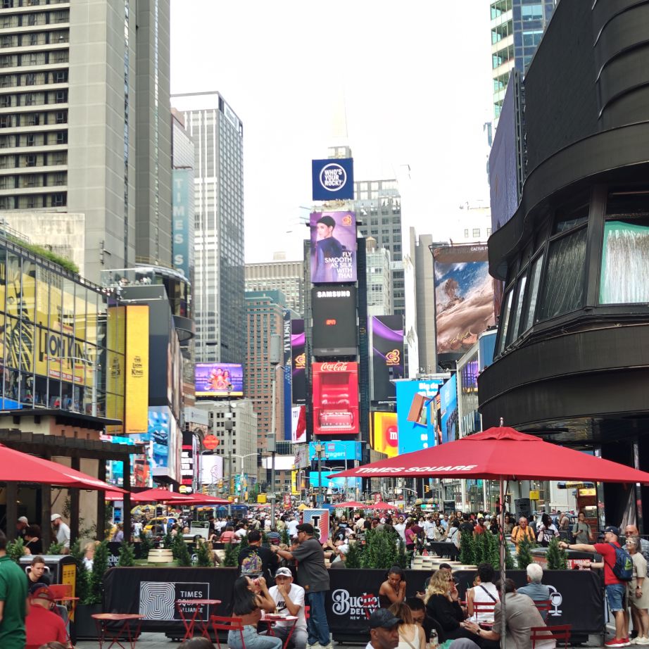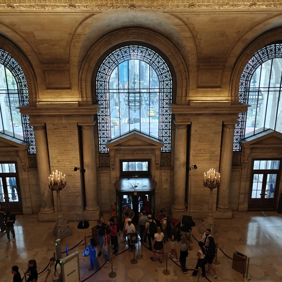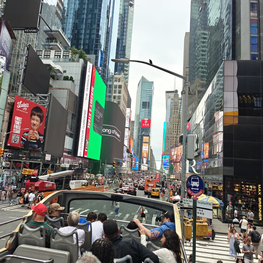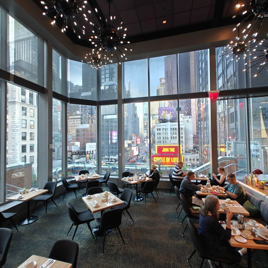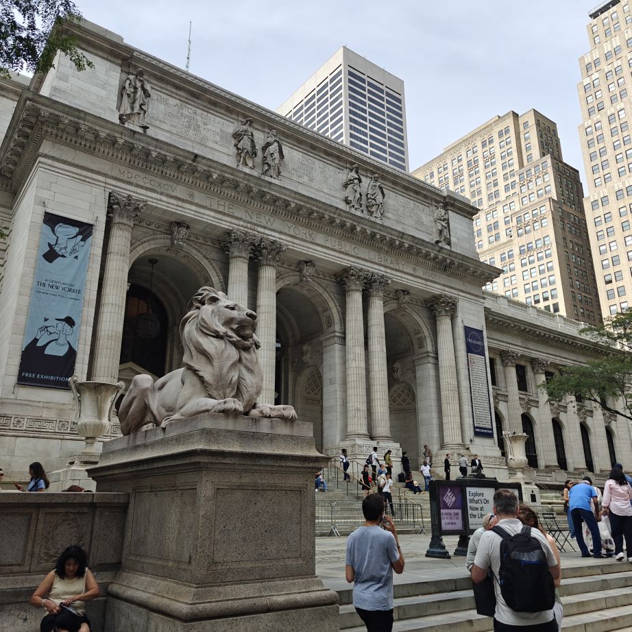 Wir gehen über die New York Public Library und den Bryant Park NYC zurück ins Hotel und machen uns frisch für den Abend. Der 39.000 Quadratmeter große Bryant Park ist von Hochhäusern eingerahmt. Im Winter gibt es dort einen Weihnachtsmarkt und man kann eislaufen, im Sommer laden Kinonächte zum Verweilen. Überall stehen Tische zur freien Nutzung, was sehr gut angenommen wird. Wir trinken ein IPA im Bar-Café im Park, dann gehen wir über den Times Square zurück ins Hotel.