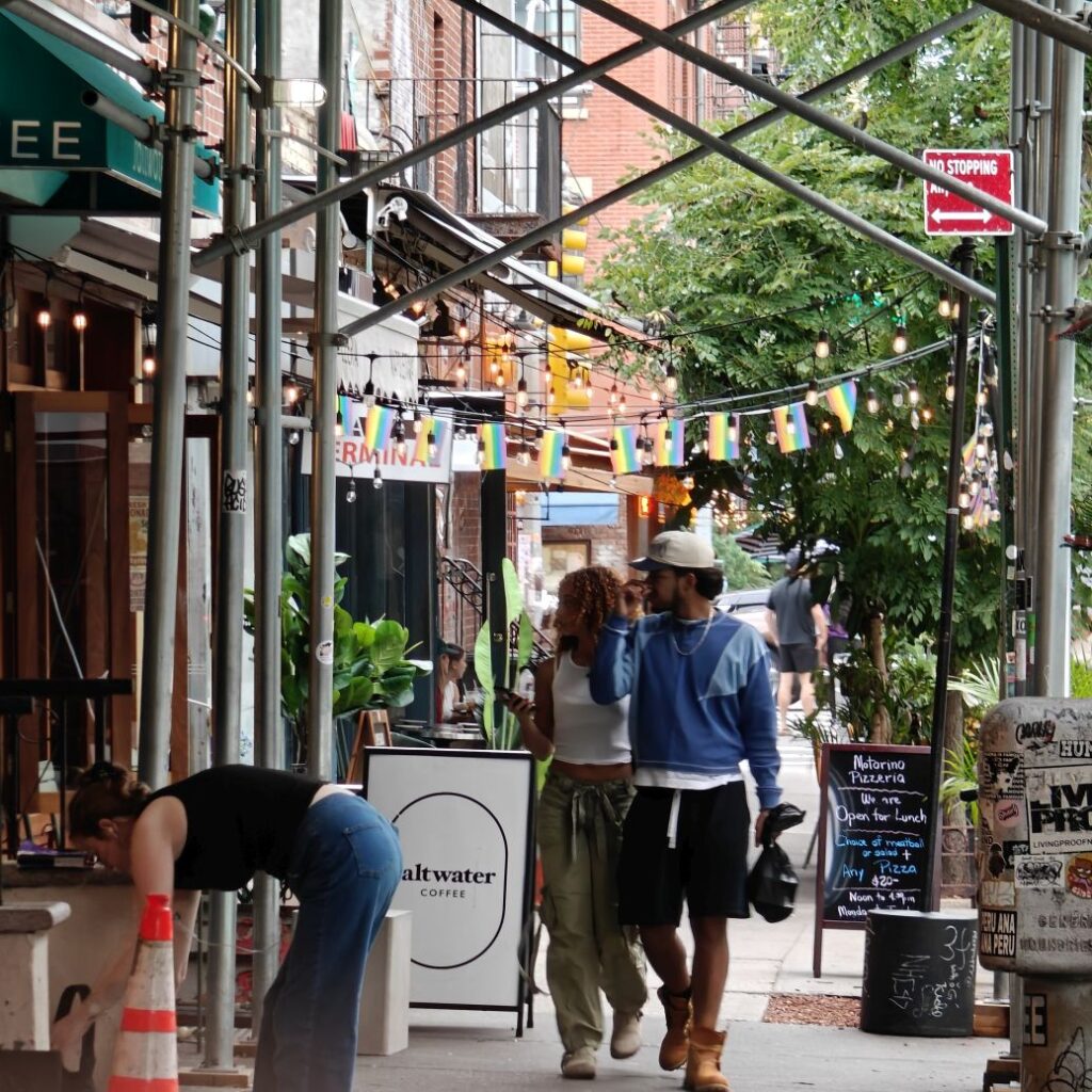 Eigentlich hätten wir für heute Abend mit unserem New York Pass eine Greenwich Village @Night Walking Tour gebucht. Sie wurde kurzfristig wegen zu weniger Anmeldungen abgesagt, darum schlagen wir uns eigenmächtig durch Greenwich Village, wo sich einige von New Yorks angesagtesten Bars, Clubs und Theater befinden. Viele Berühmtheiten einst hier ein und ausgegangen: Bob Dylan, Jimi Hendrix und Ray Charles sind nur einige davon. Unser Streifzug endet beim Stonewall Inn, Schauplatz des Aufstands von 1969, der als Beginn der Schwulenbewegung gilt in der legendären Christopher Street. In der Bar nebenan trinken wir einen Cucumber Martini, heute ist Gay Night mit Livemusik. Es herrscht gute Stimmung und wir genießen den lauen Abend zwischen jeder Menge schrägen Vögeln.