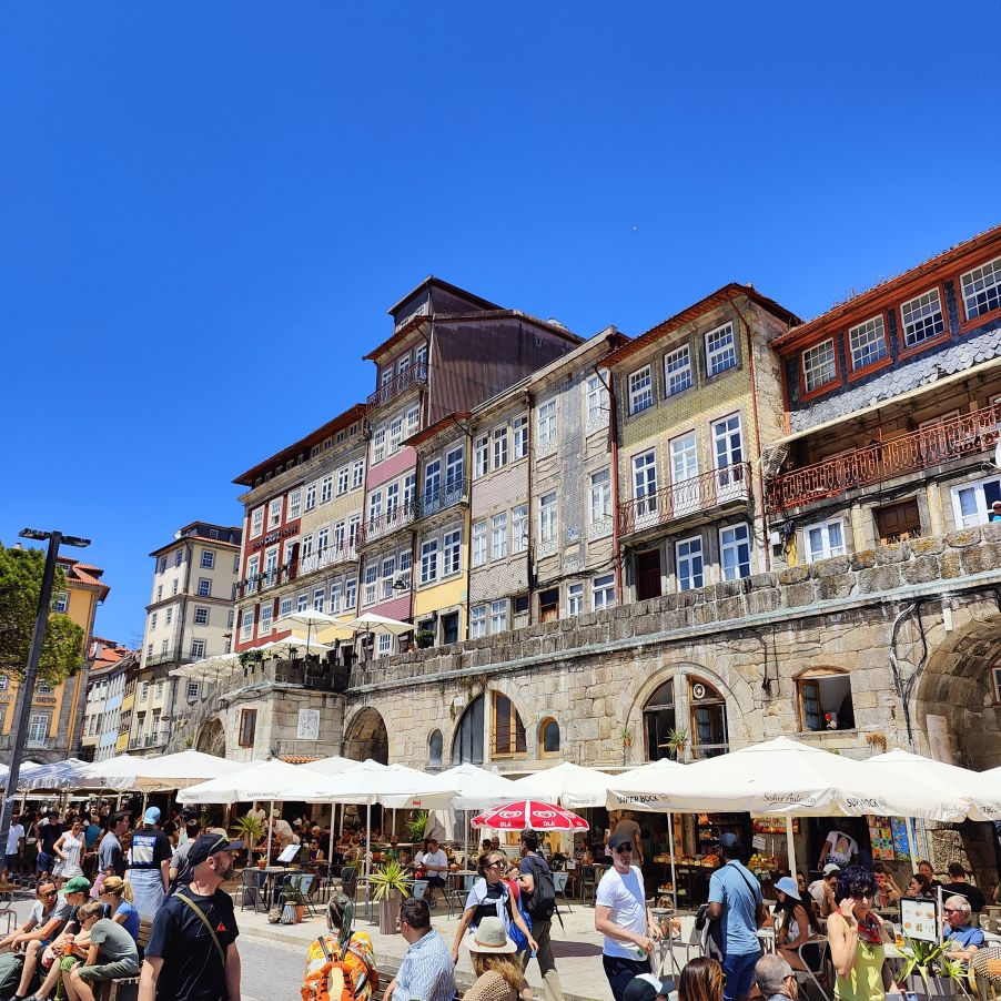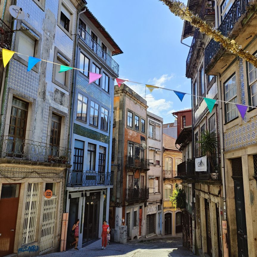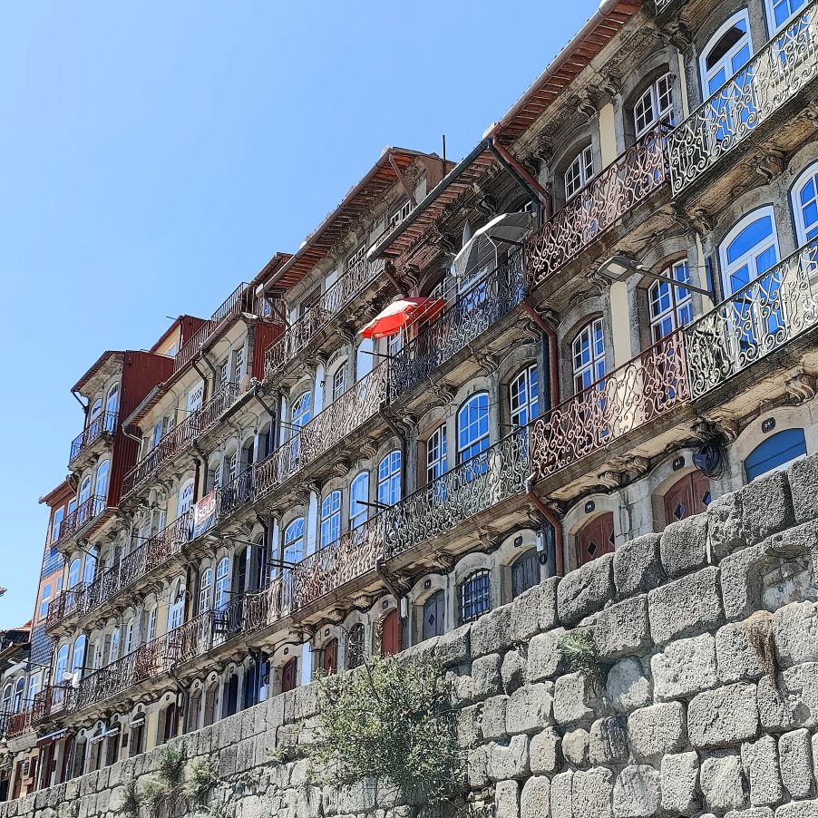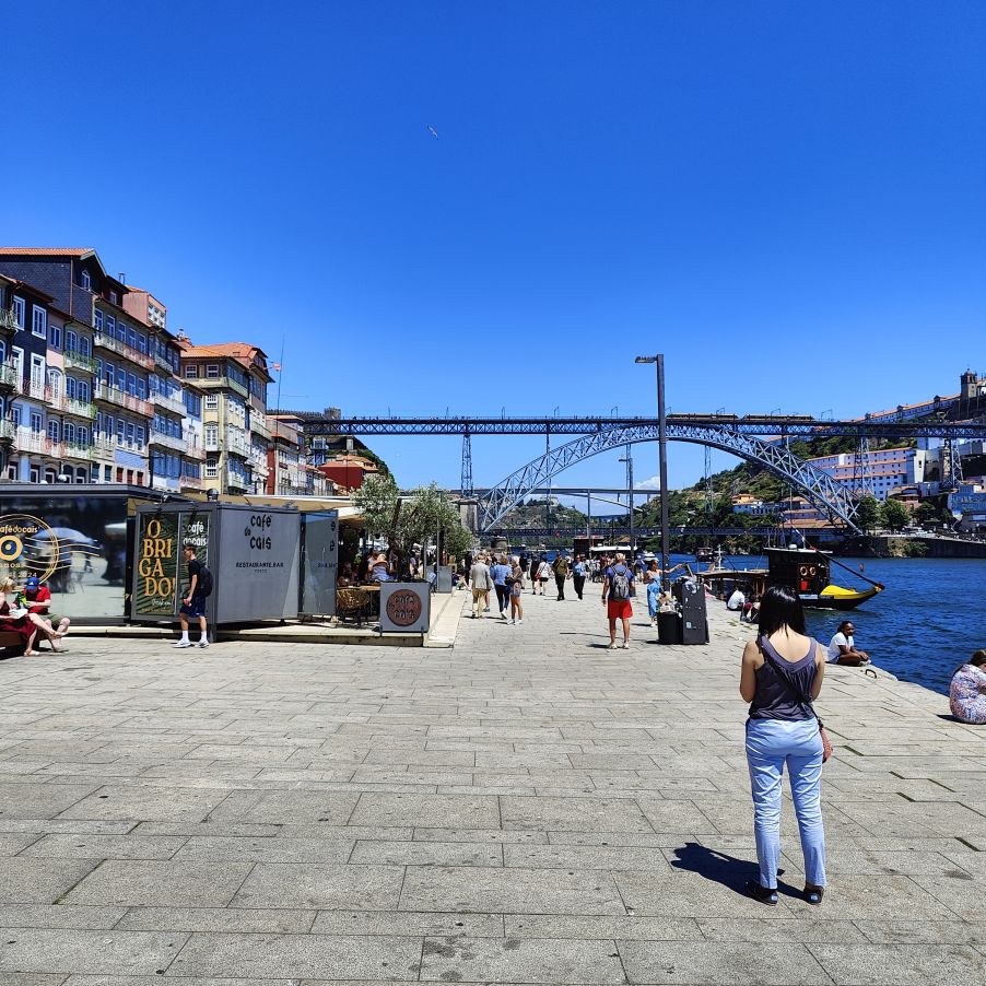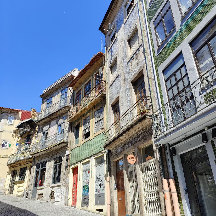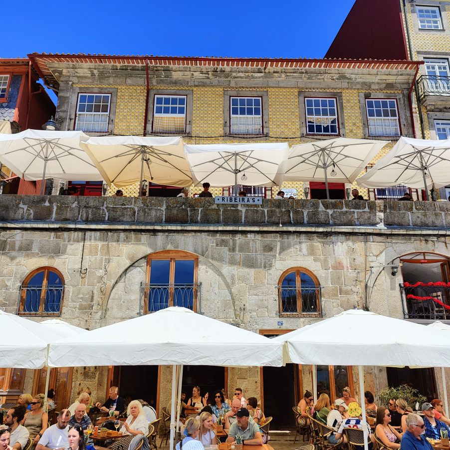 Wir steigen die Escadas do Barredo hinab in die Ribeira, das alltagssprachliche Wort für den unteren Teil der historischen Altstadt von Porto. Das Viertel befindet sich an der Uferpromenade des Douro, wo sich die Barcos Rabelos, die traditionellen portugiesischen Boote, aneinanderreihen. Der Stadtteil selbst ist bunt, die engen, steilen Gassen und Cafés sind voll mit Touristen. Wir lassen uns treiben und erkunden die Gegend rund um den Praça da Ribeira. Das ganze historische Zentrum Portos wurde 1996 zum UNESCO-Weltkulturerbe ernannt. In einer Bar trinken wir Portwein mit Tonic und Sangria und essen eine Kleinigkeit.