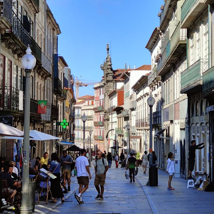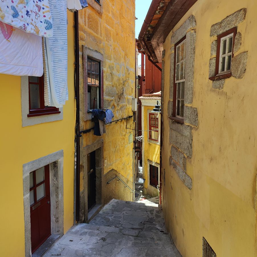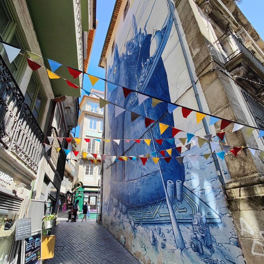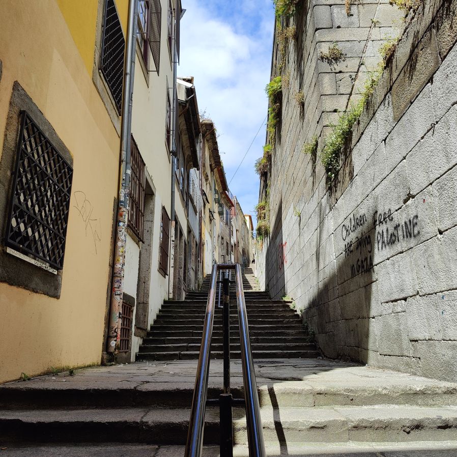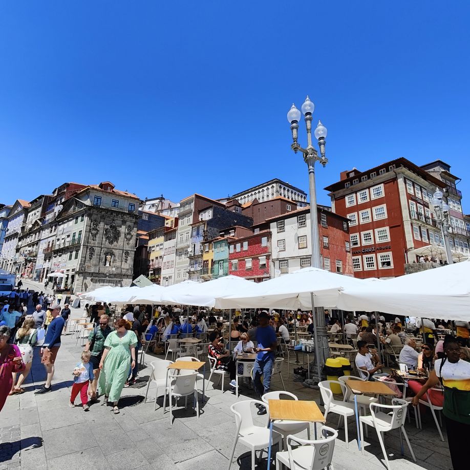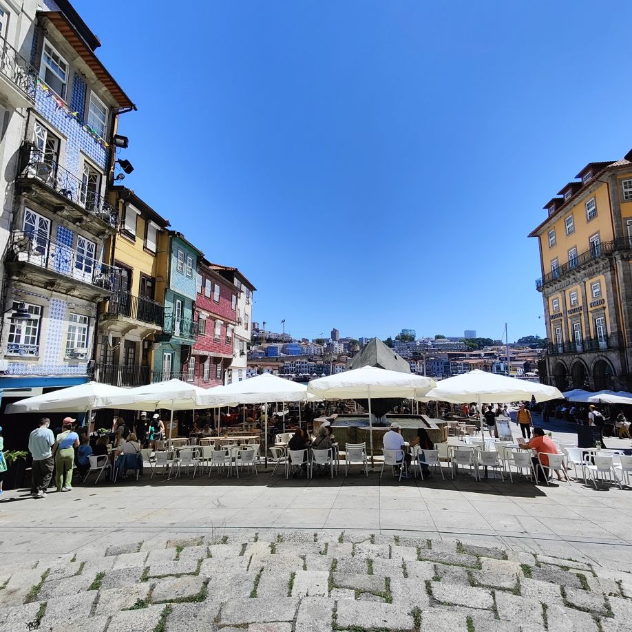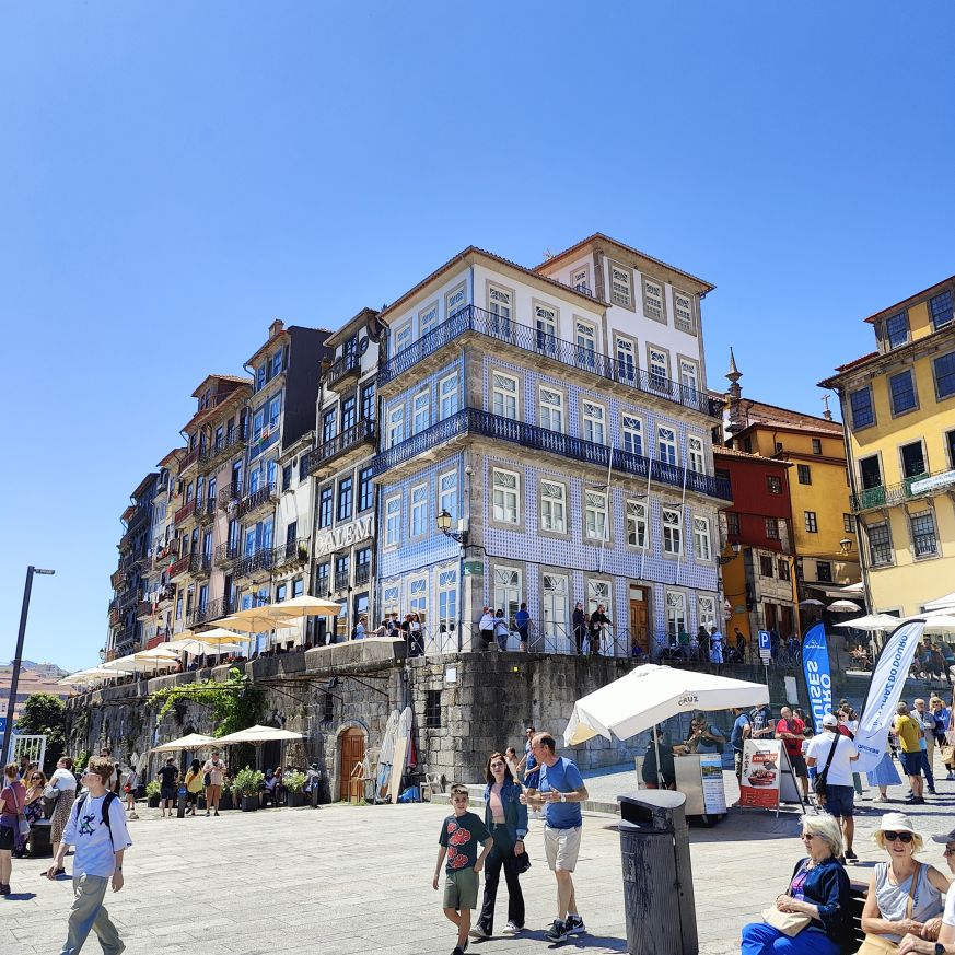 Wir steigen die Escadas do Barredo hinab in die Ribeira, das alltagssprachliche Wort für den unteren Teil der historischen Altstadt von Porto. Das Viertel befindet sich an der Uferpromenade des Douro, wo sich die Barcos Rabelos, die traditionellen portugiesischen Boote, aneinanderreihen. Der Stadtteil selbst ist bunt, die engen, steilen Gassen und Cafés sind voll mit Touristen. Wir lassen uns treiben und erkunden die Gegend rund um den Praça da Ribeira. Das ganze historische Zentrum Portos wurde 1996 zum UNESCO-Weltkulturerbe ernannt. In einer Bar trinken wir Portwein mit Tonic und Sangria und essen eine Kleinigkeit.