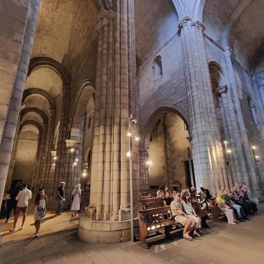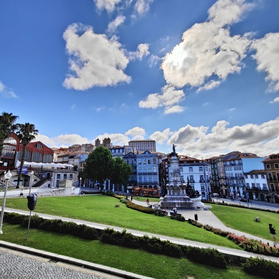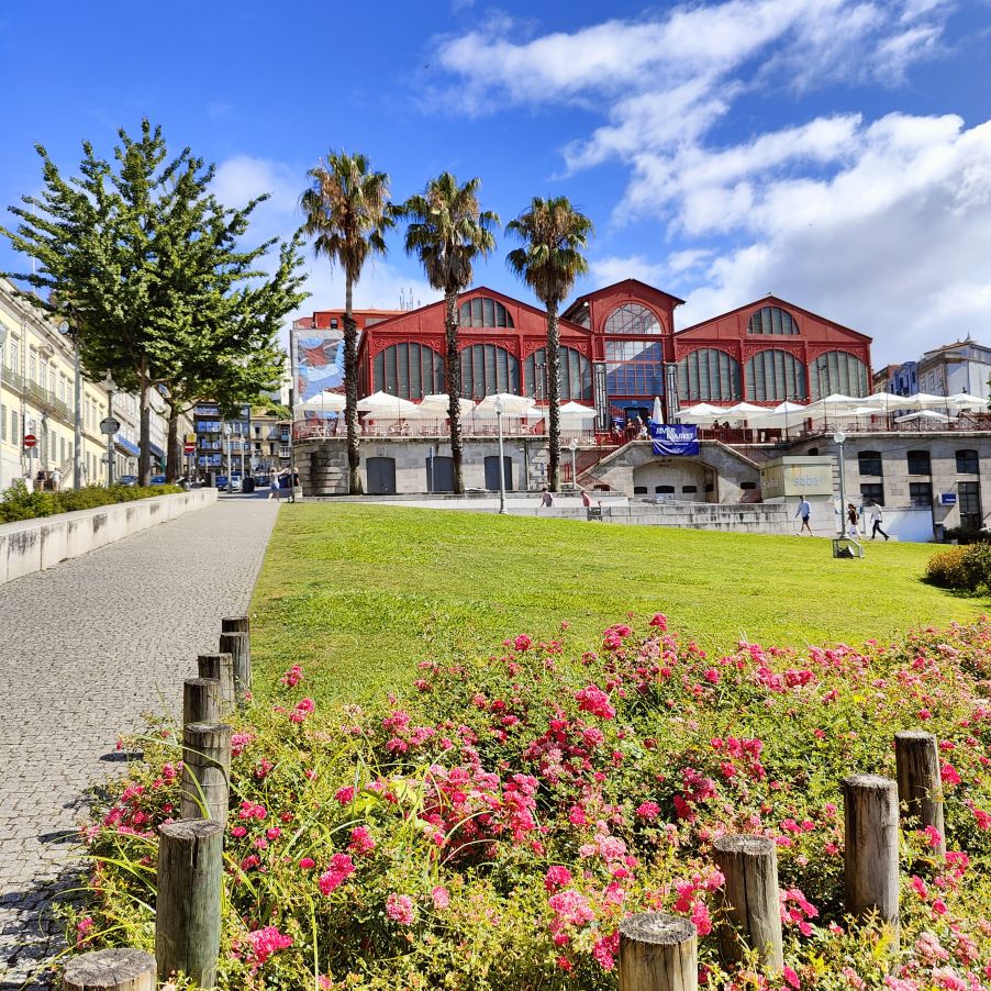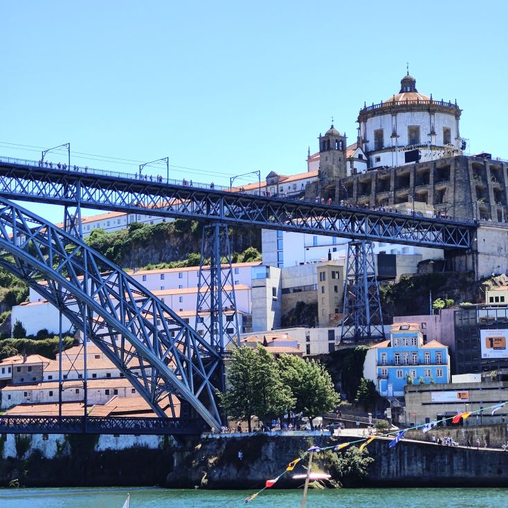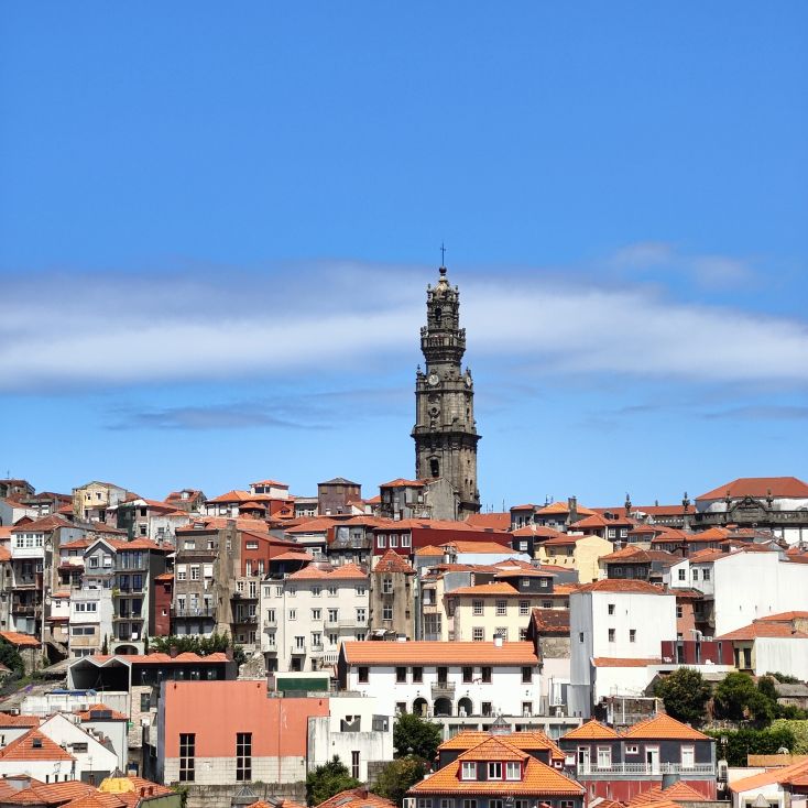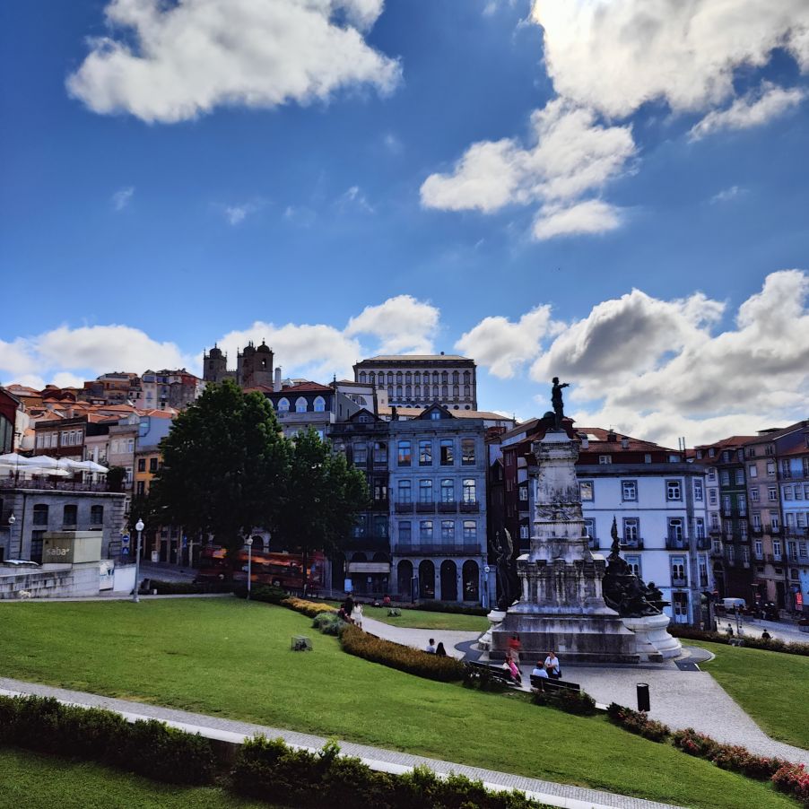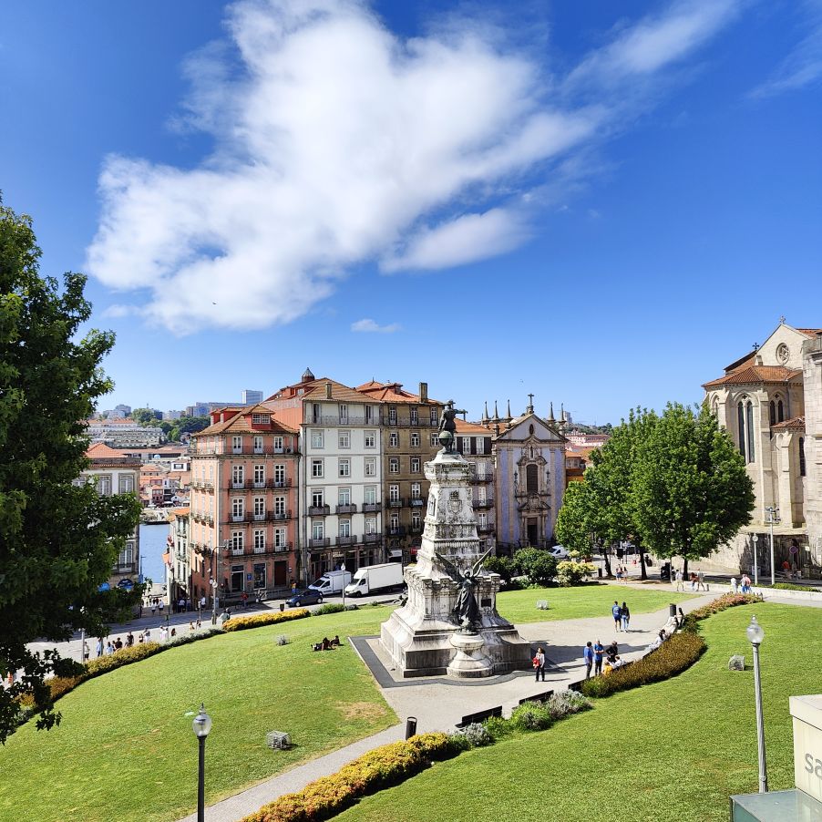 Wir machen uns auf zum nächsten Monumentalgebäude Portos – vorher steigen wir aber die Stufen zum Miradouro da Vitória hinauf und werden mit einer tollen Aussicht belohnt. Unser nächstes Ziel ist die Kathedrale Sé do Porto, die Hauptkirche der Stadt und die Bischofskirche des Bistums Porto. Sie liegt auf einem Hügel in der Altstadt, die seit 1996 als Weltkulturerbe der UNESCO eingetragen ist. Der Bau wurde Anfang des 12. Jahrhunderts im romanischen Stil begonnen. Der gotische Kreuzgang wurde im 14. Jahrhundert errichtet. Das Äußere der Kathedrale wurde zur Zeit des Barocks und des Rokoko tiefgreifend umgestaltet. In dieser Zeit wurde auch der Kreuzgang mit Azulejos dekoriert. Mit unseren Tickets können wir die Warteschlange überholen und ebendiesen besichtigen sowie den Turm besteigen.