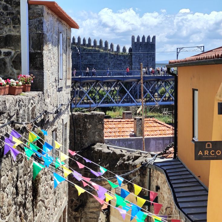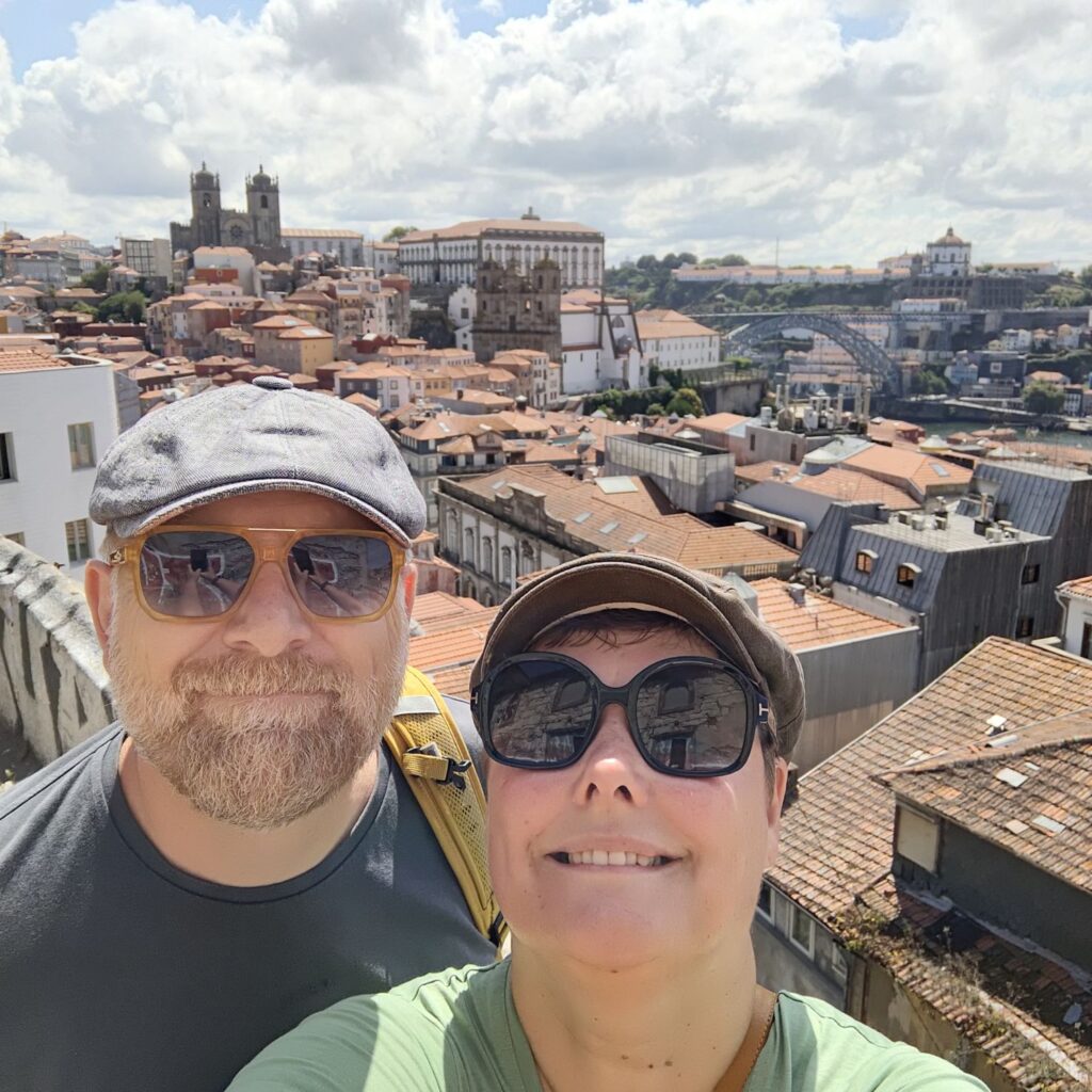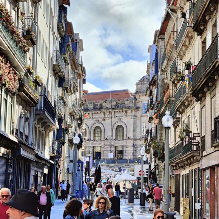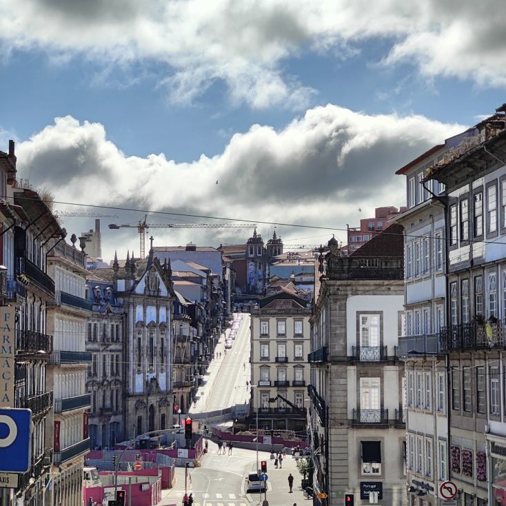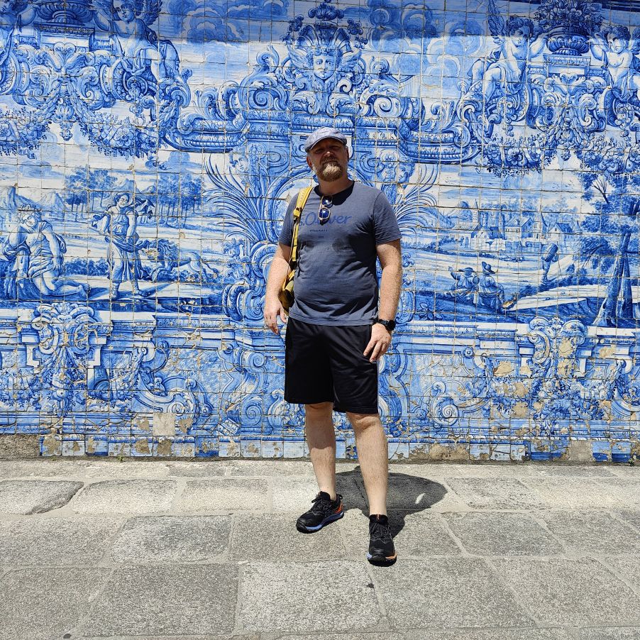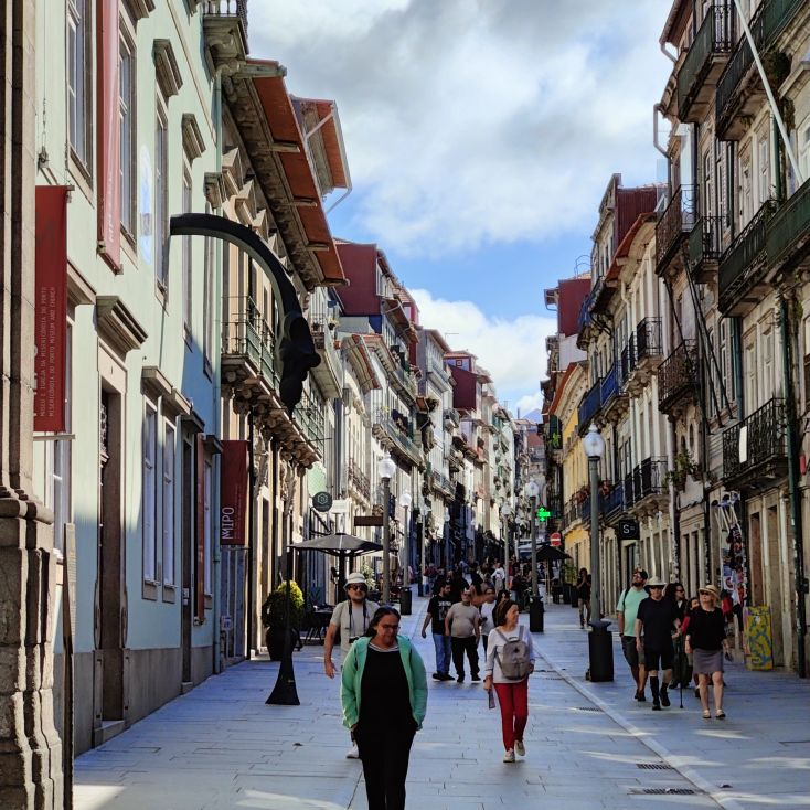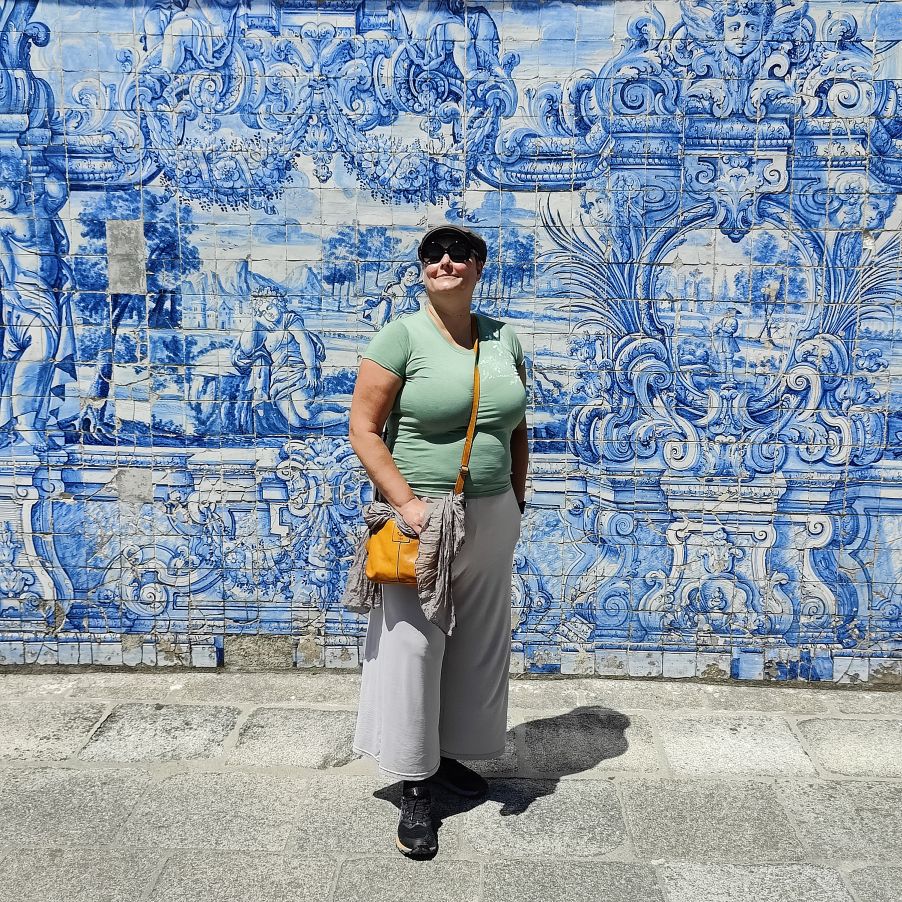 Wir machen uns auf zum nächsten Monumentalgebäude Portos – vorher steigen wir aber die Stufen zum Miradouro da Vitória hinauf und werden mit einer tollen Aussicht belohnt. Unser nächstes Ziel ist die Kathedrale Sé do Porto, die Hauptkirche der Stadt und die Bischofskirche des Bistums Porto. Sie liegt auf einem Hügel in der Altstadt, die seit 1996 als Weltkulturerbe der UNESCO eingetragen ist. Der Bau wurde Anfang des 12. Jahrhunderts im romanischen Stil begonnen. Der gotische Kreuzgang wurde im 14. Jahrhundert errichtet. Das Äußere der Kathedrale wurde zur Zeit des Barocks und des Rokoko tiefgreifend umgestaltet. In dieser Zeit wurde auch der Kreuzgang mit Azulejos dekoriert. Mit unseren Tickets können wir die Warteschlange überholen und ebendiesen besichtigen sowie den Turm besteigen.