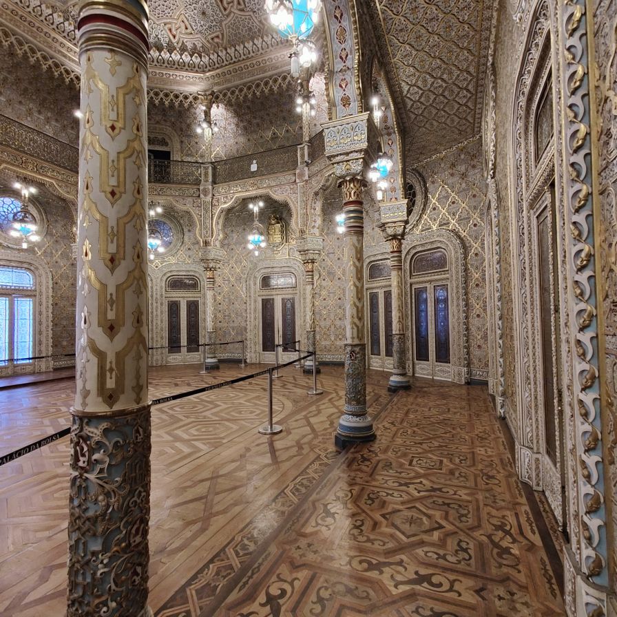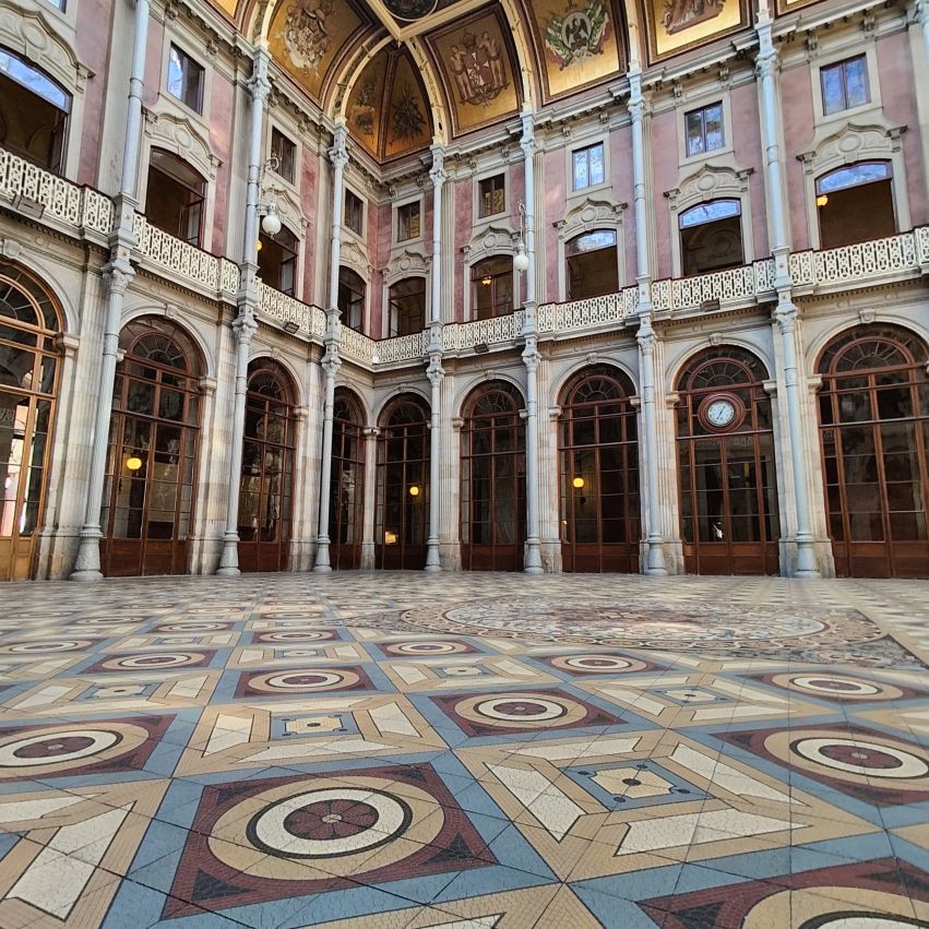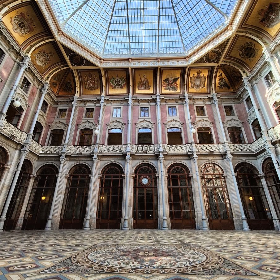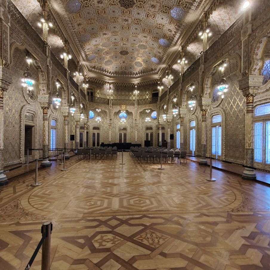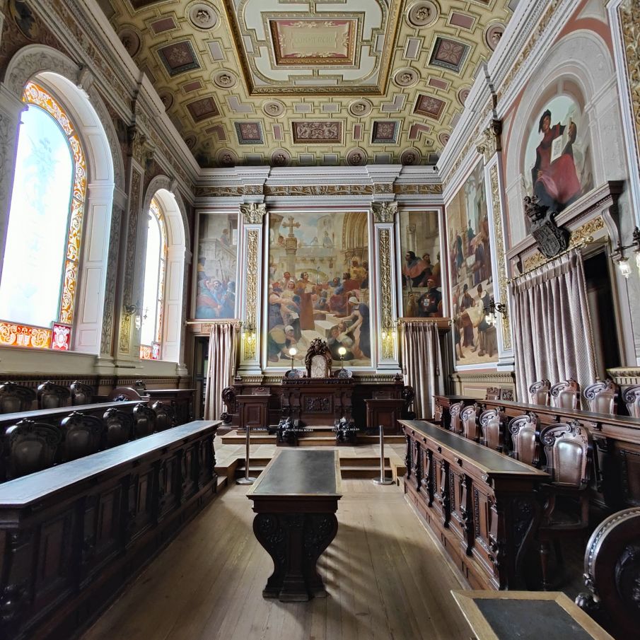 Es gibt viel Marmor, Holz, Glas und Gold. Besonders sehenswert ist der Salao Arabe, der Arabische Saal mit seinen mit Gold verzierten Wänden und Mosaiken aus Holz. Besonders beeindruckt uns die gigantische Glaskuppel, die den Empfangsraum mit seinen vergoldeten Wandgemälden perfekt ausleuchtet. Auch der ehemalige Gerichtssaal, der einst Schauplatz von großen Handelsstreitigkeiten war, ist sehenswert. Er beheimatet viele alte Gemälde aus dem frühen 19. Jahrhundert.