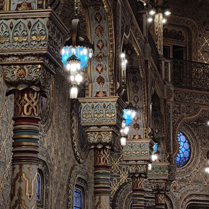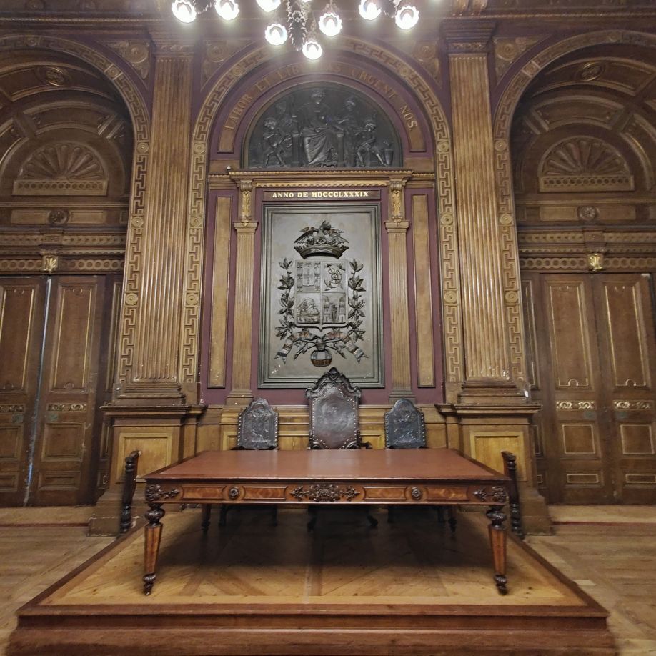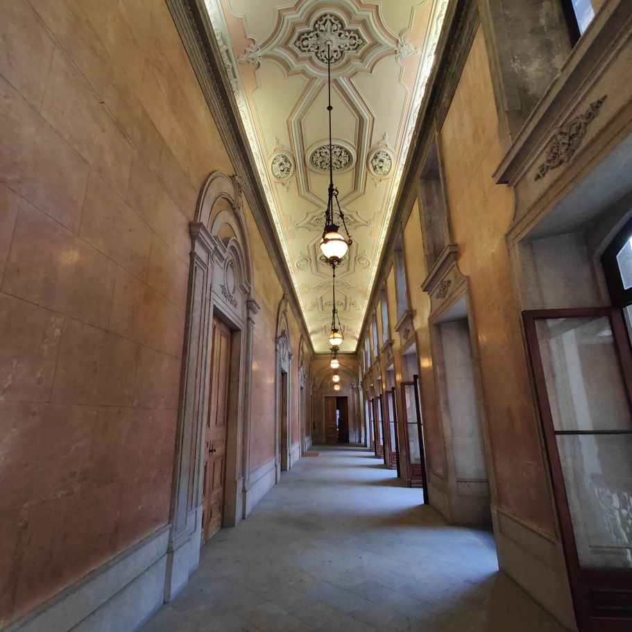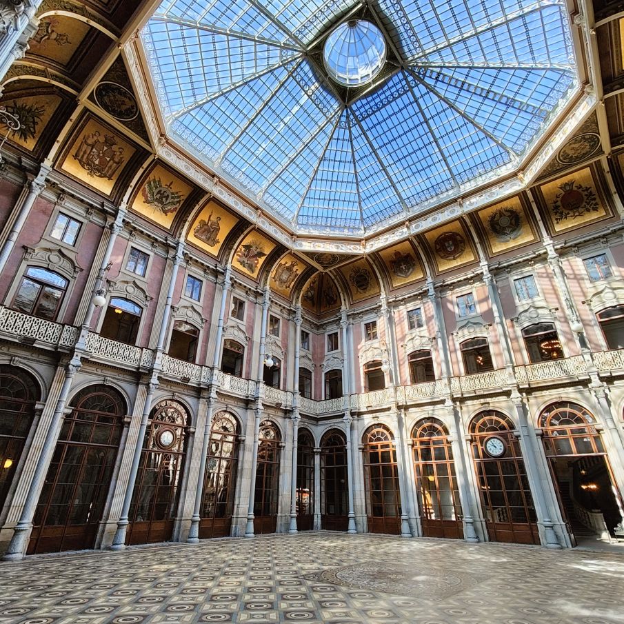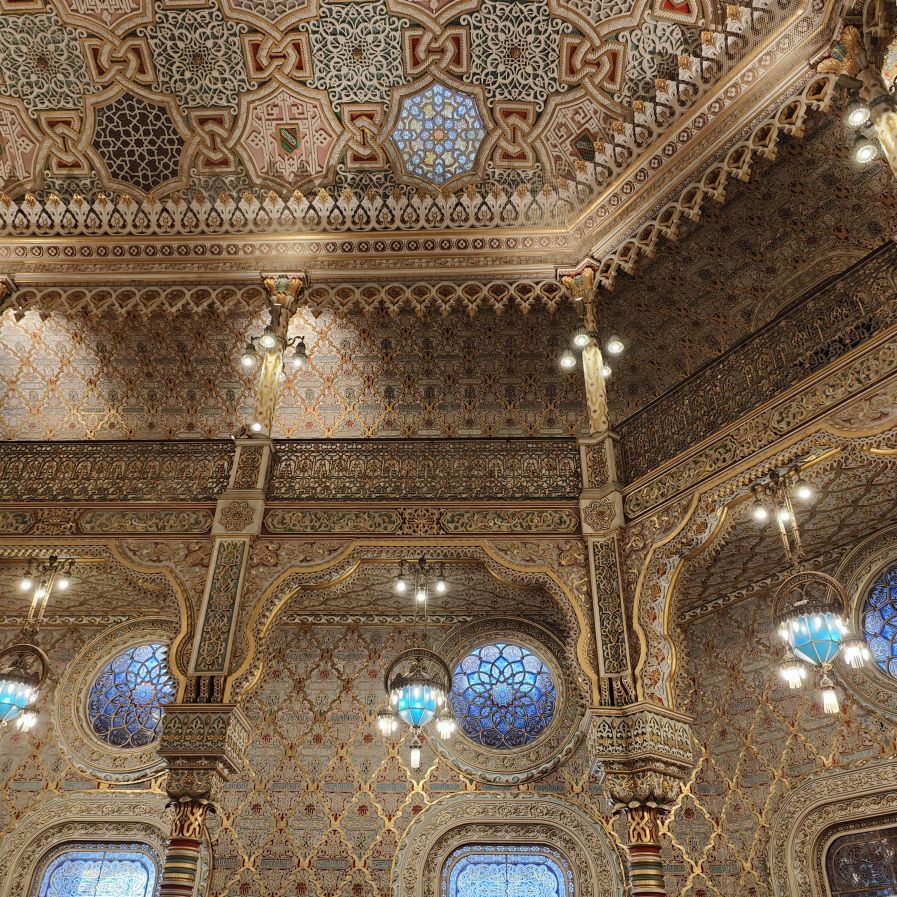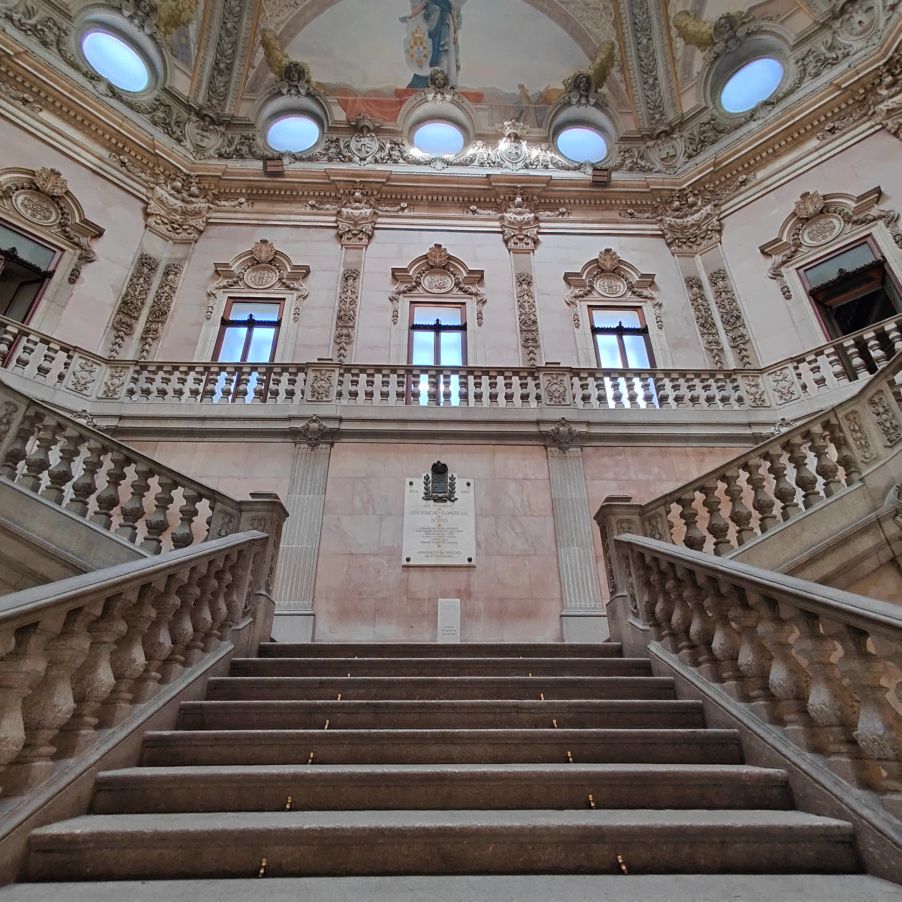 Es gibt viel Marmor, Holz, Glas und Gold. Besonders sehenswert ist der Salao Arabe, der Arabische Saal mit seinen mit Gold verzierten Wänden und Mosaiken aus Holz. Besonders beeindruckt uns die gigantische Glaskuppel, die den Empfangsraum mit seinen vergoldeten Wandgemälden perfekt ausleuchtet. Auch der ehemalige Gerichtssaal, der einst Schauplatz von großen Handelsstreitigkeiten war, ist sehenswert. Er beheimatet viele alte Gemälde aus dem frühen 19. Jahrhundert.