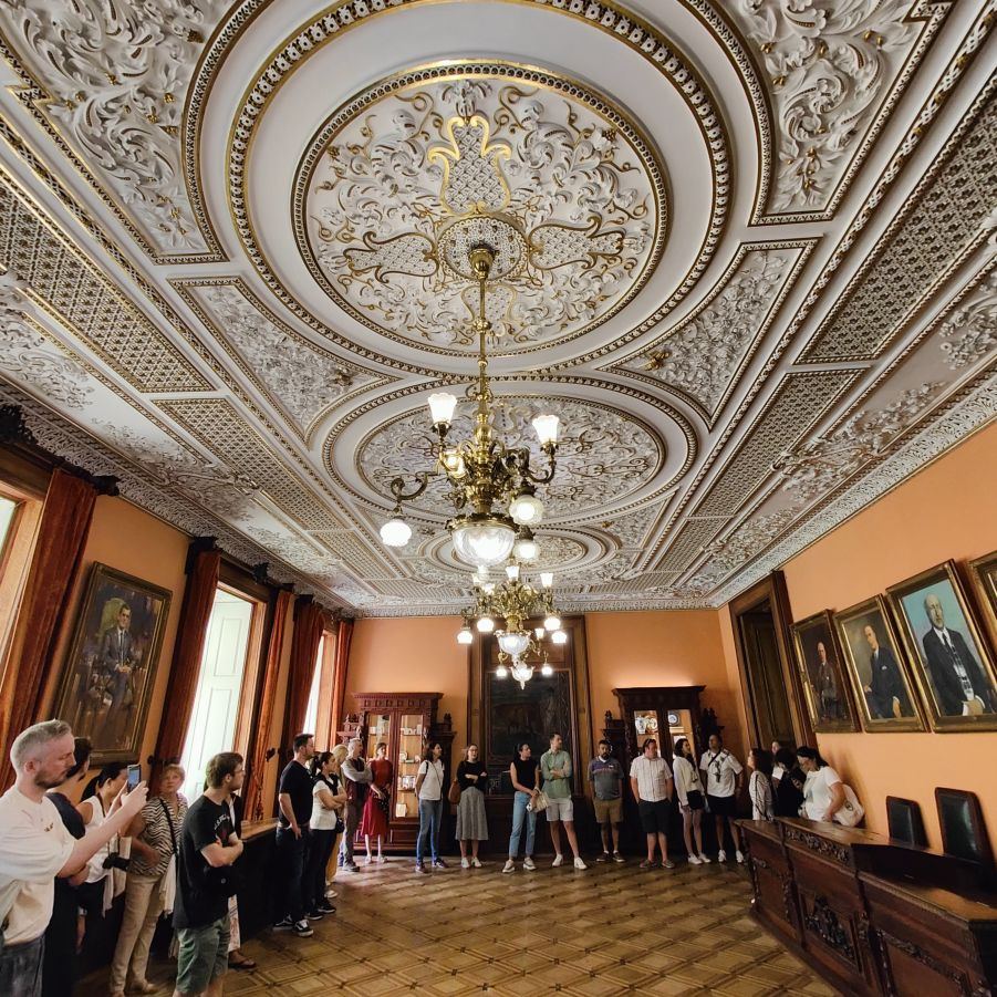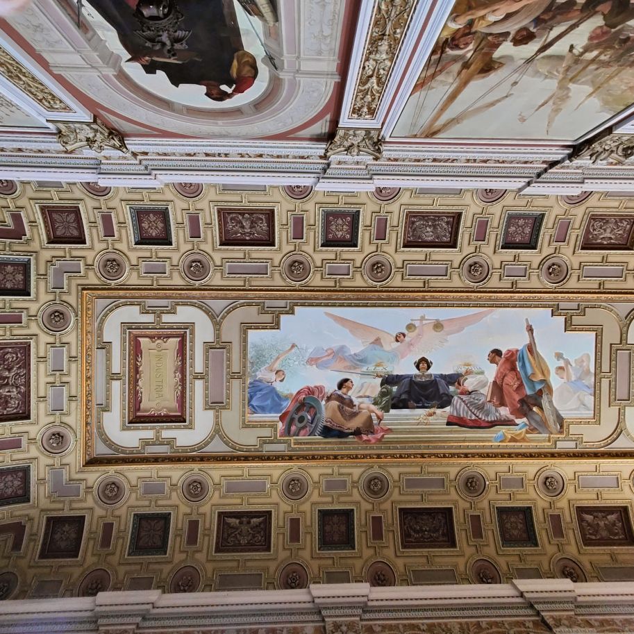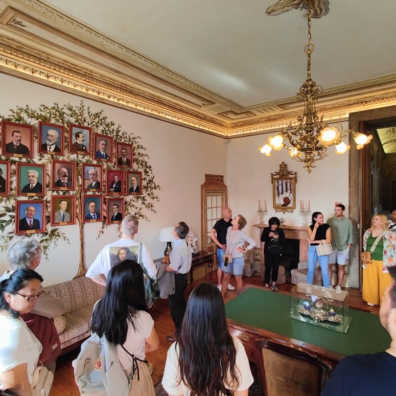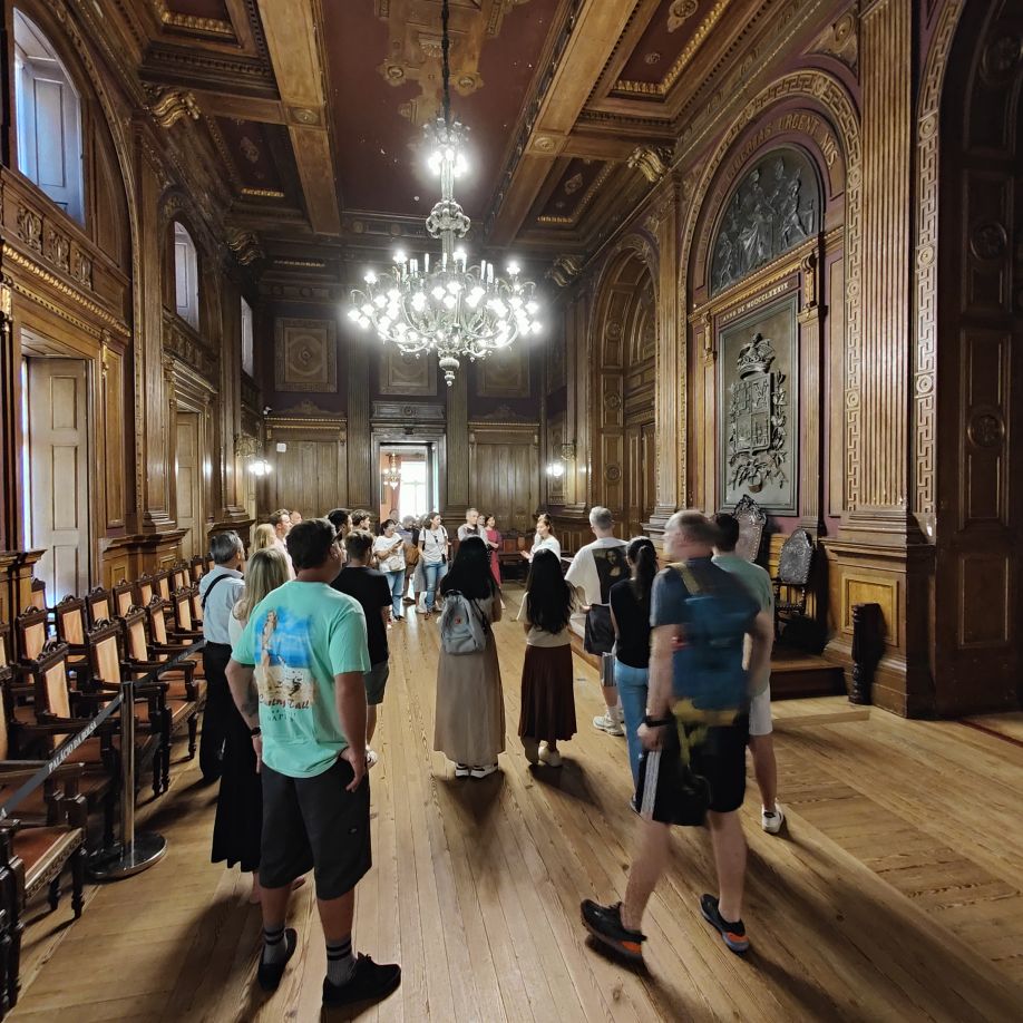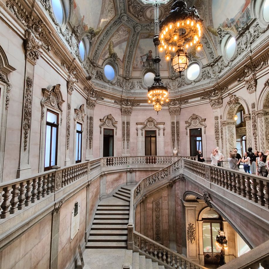 Als wir das Innere betreten, lässt sich die Schönheit der Räumlichkeiten bereits erahnen. Wir haben vorab Tickets für eine halbstündige englischsprachige Führung gekauft. Dort erfahren wir, dass Porto vor 200 Jahren ein wichtiger Handelsplatz der Seefahrernation Portugal war und dass das Grundstück 1842 das letzte Geschenk der Königin Maria II. an die Handelskammer war – sie dankte zwei Jahre später ab.
