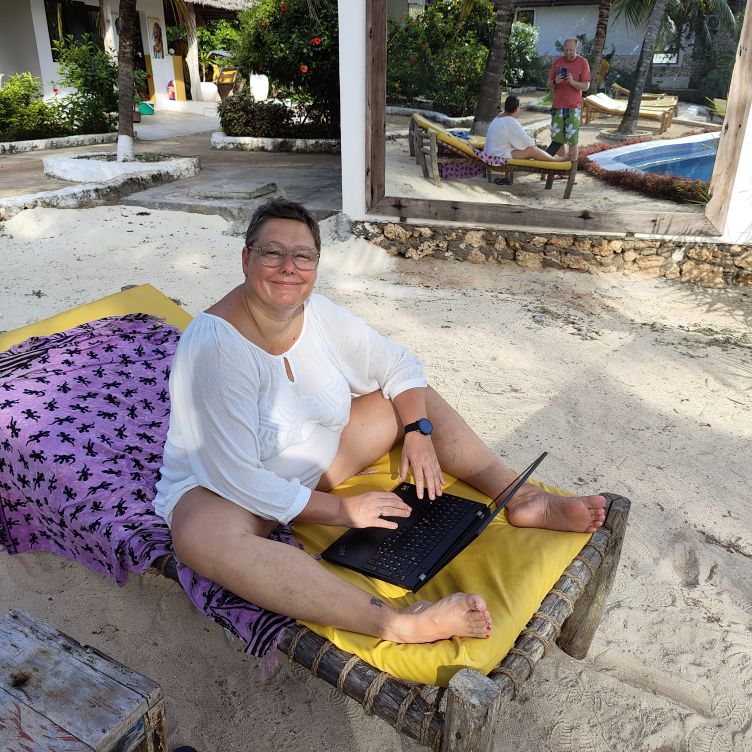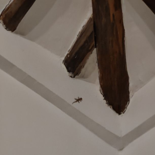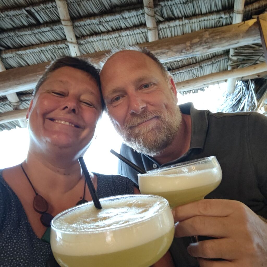 Am Nachmittag lösen wir unsere Massagegutscheine ein, die wir zur Hotelbuchung dazubekommen haben. Direkt unter dem Restaurant hat sich im Schutz der Felsen eine Masseurin niedergelassen. Auf pulverweißem Sand steht ein bequemer Massagetisch. Eine Dreiviertelstunde dauert die Wohltat, bei der Schultern, Arme, Handfläche, Beine, Fußsohlen und Hals mithilfe starker afrikanischer Hände und einer Menge Kokosöl durchgeknetet werden. Dann genießen wir die Abendsonne und gehen früh duschen. Es gibt Stromausfall und weder der Durchlauferhitzer noch die Klimaanlage funktionieren. Die Küche und das Restaurant haben dank einer Solaranlage Strom und unserem Abendessen steht nichts im Wege. Wir trinken einen Cocktail mit Ananas- und Limettensaft als Aperitif und essen Meeresfrüchte-Curry mit Reis (Christoph) und sautierte Calamari mit Rosmarin-Ofenkartoffeln (Claudia). Zum Abschluss gönnen wir uns ein Stück des großartigen selbstgemachten Schokokuchens. Es ist noch früh, unser Zimmer-Gecko, der schon die ganze Zeit bei uns wohnt, ist hyperaktiv und flitzt im gesamten Appartement herum. Jetzt wird noch der Blog von der Blauen Lagune geschrieben, dann sehen wir uns einen Netflix-Film an. Kaum zu glauben, aber die erste Halbzeit unseres Urlaubes ist um! Morgen machen wir noch so einen Fauli-Tag wie heute.