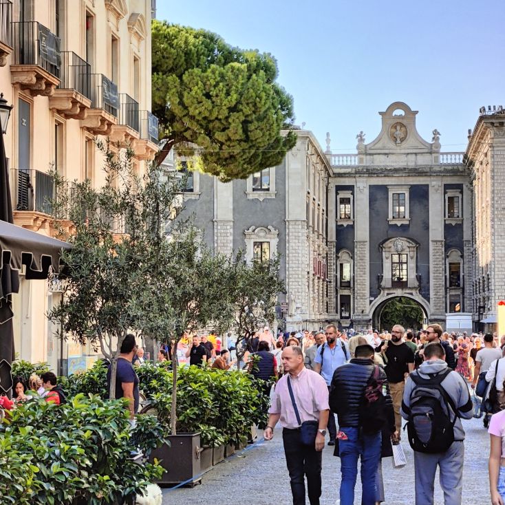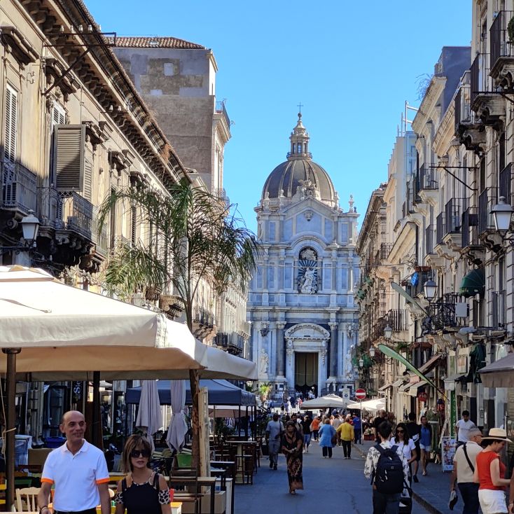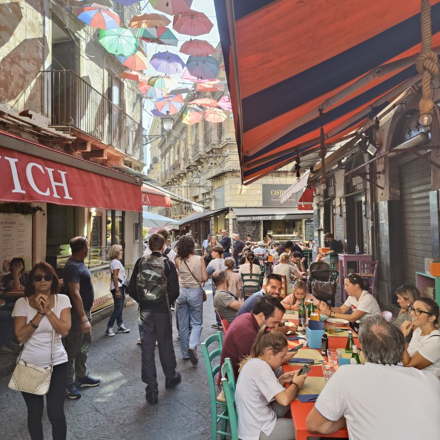 Der letzte Tag unseres Kurztrips ist angebrochen. Nach einem frühmorgendlichen Frühstück checken wir aus und fahren nach Catania. Rund 300.000 Menschen wohnen dort, nach Palermo ist es die zweitgrößte Stadt Siziliens. Am Fuße des Ätna gelegen, versprüht das UNESCO-Welterbe einen besonderen spätbarocken Reiz. Catania gehört zu den Orten mit den meisten Sonnenstunden im Jahr in Europa. Und Catania ist ein Foodie-Hotspot. Wir haben eine dreistündige Streetfood-Tour gebucht, die uns ganz nebenbei an den Sehenswürdigkeiten vorbeiführt. Besonders beeindruckend ist der große Fischmarkt. Wir essen Fisch, Pferd, Antipasti und natürlich die berühmten Arancini. Wir genießen die Zeit sehr. Nach der Tour wird es Zeit für die Heimreise. Wir fahren zum Flughafen, geben das Auto zurück und starten pünktlich um 17:40 Uhr gen Vienna Airport. Gegen Mitternacht sind wir zuhause mit einem Stück mehr Kenntnis von Europas schönsten Orten.