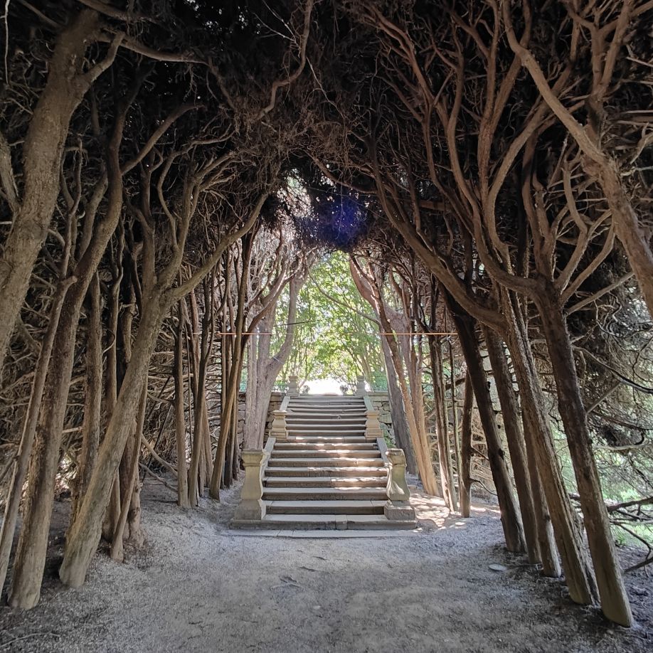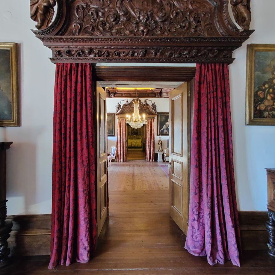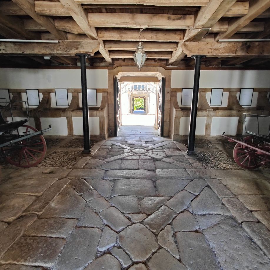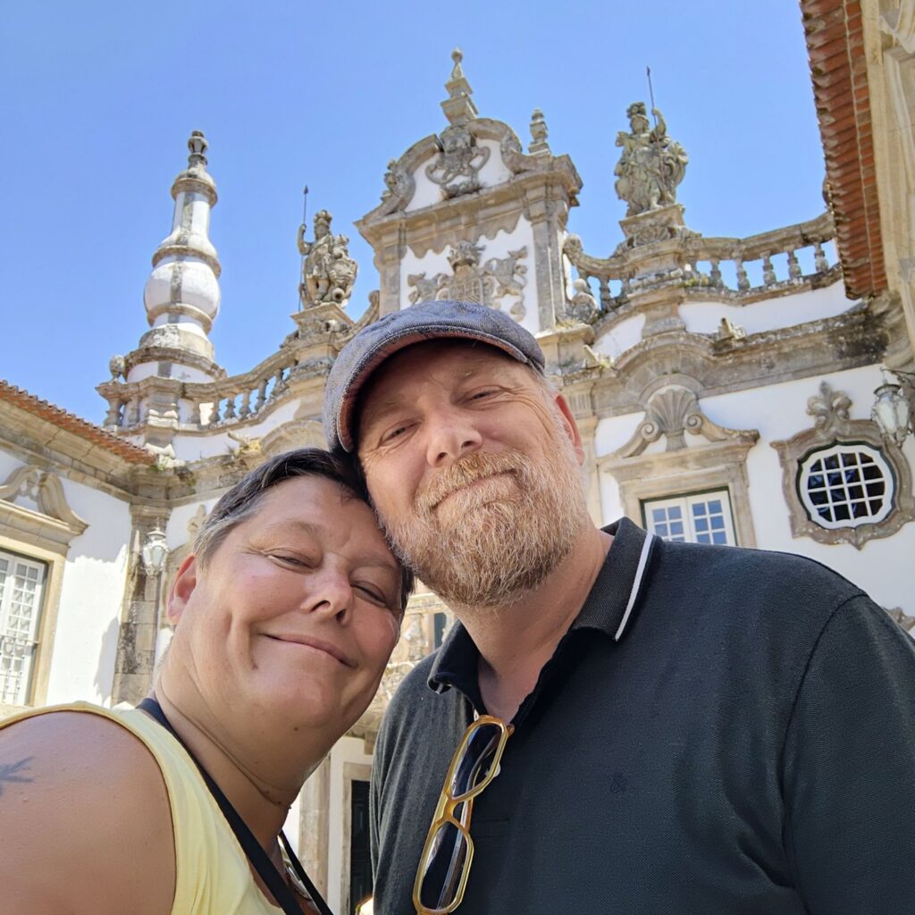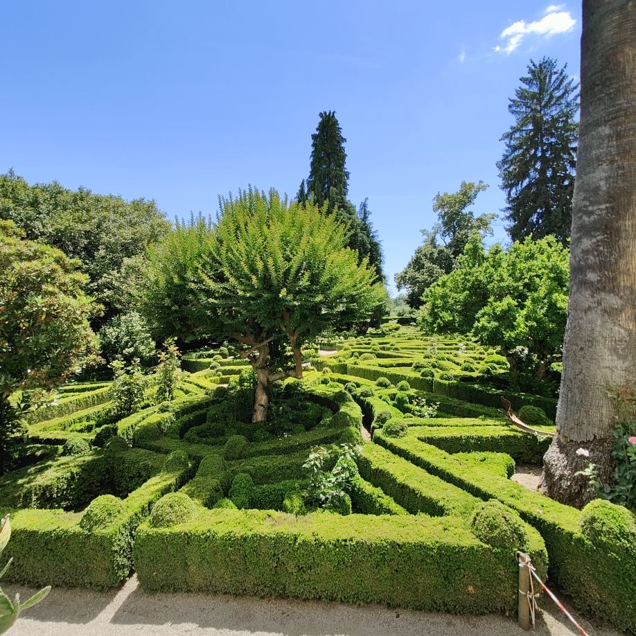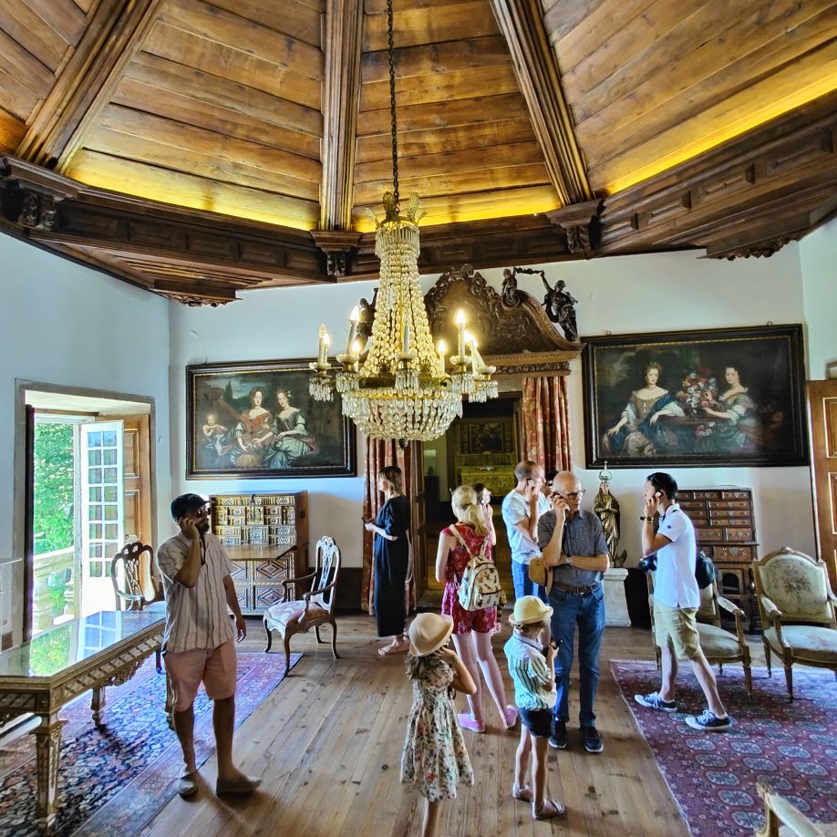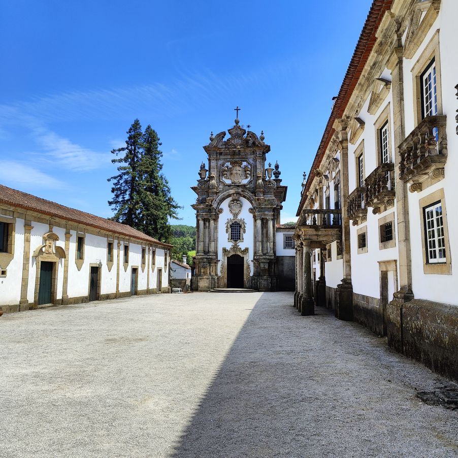Nach zehn Minuten Fahrt sind wir in Sabrosa und fahren zum gleichnamigen Aussichtspunkt, der uns mit einer Himmelsschaukel begrüßt. Weitere zehn Minuten entfernt finden wir eine zweite Schaukel auf dem Baloiço reino maravilhoso. Wir haben einen 360-Grad-Ausblick auf die Umgebung, denn der Aussichtpunkt befindet sich auf einem Hochplateau aus Granit. Weiter geht es nach Vila Real zum Casa de Mateus. Wir haben noch genügend Zeit bis zu unserer Tour und trinken ein kühles Sagres, dazu gibt es ein Sandwich, Pommes und Oliven. Dann betreten wir den beeindruckenden Park des Mateuspalasts. Auf 1488 datiert das älteste Dokument, das hier ein Landgut belegt. Der Besitzer der Ländereien ließ hier nach seiner Heirat 1541 ein erstes Herrenhaus errichten, das von den nachfolgenden Generationen mehrfach ausgebaut und verändert wurde. Der heutige Barock-Palast entstand um 1743. Der Architekt war Nicolau Nasoni, der Palastbesitzer der Adlige António José Botelho Mourão. Wir nehmen an einer geführten Tour durch die Räumlichkeiten teil und bewundern die stilvollen Räume. Dann besichtigen wir noch die Kapelle im Barockstil des 18. Jahrhunderts und drehen eine letzte Runde durch den Garten. Besonders beeindruckt uns die 150 Jahre alte Zeder.